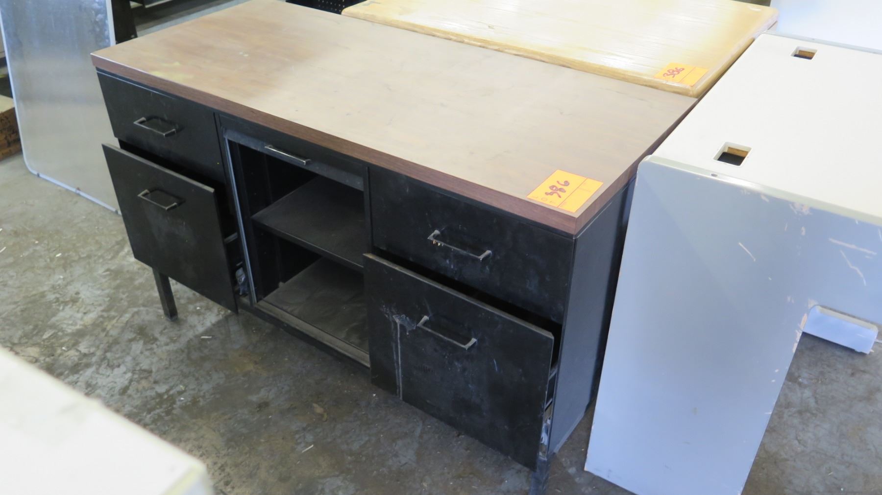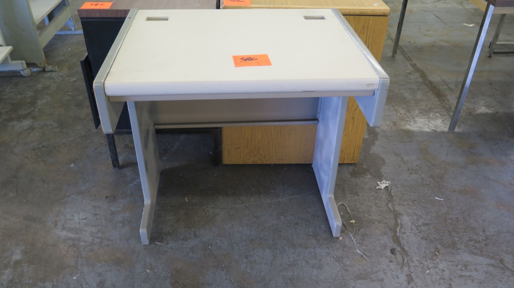Qty 3 Misc Furniture - Metal & Wood Desk, Cabinet, Plastic Table