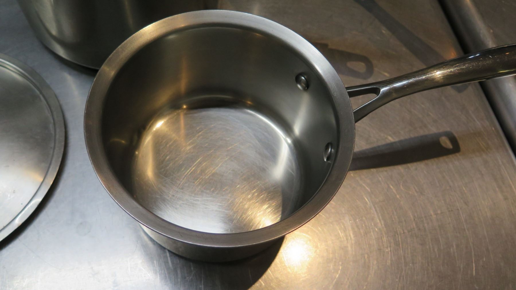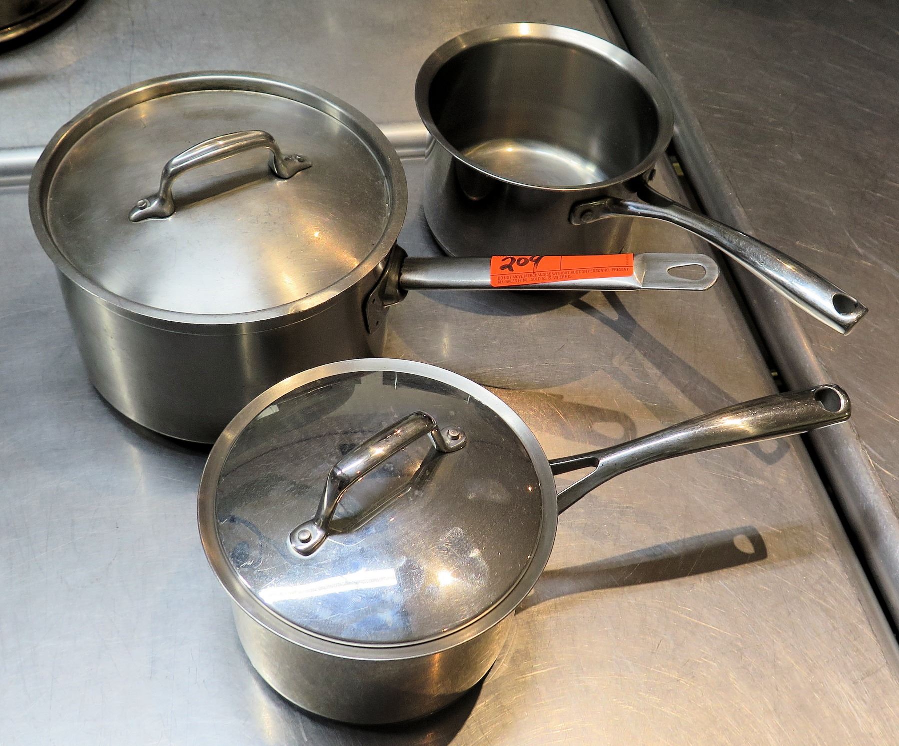 Qty 3 Misc Sizes Large Sauce Sauté Pots w/ Long Handles - 1 w/ Lid
