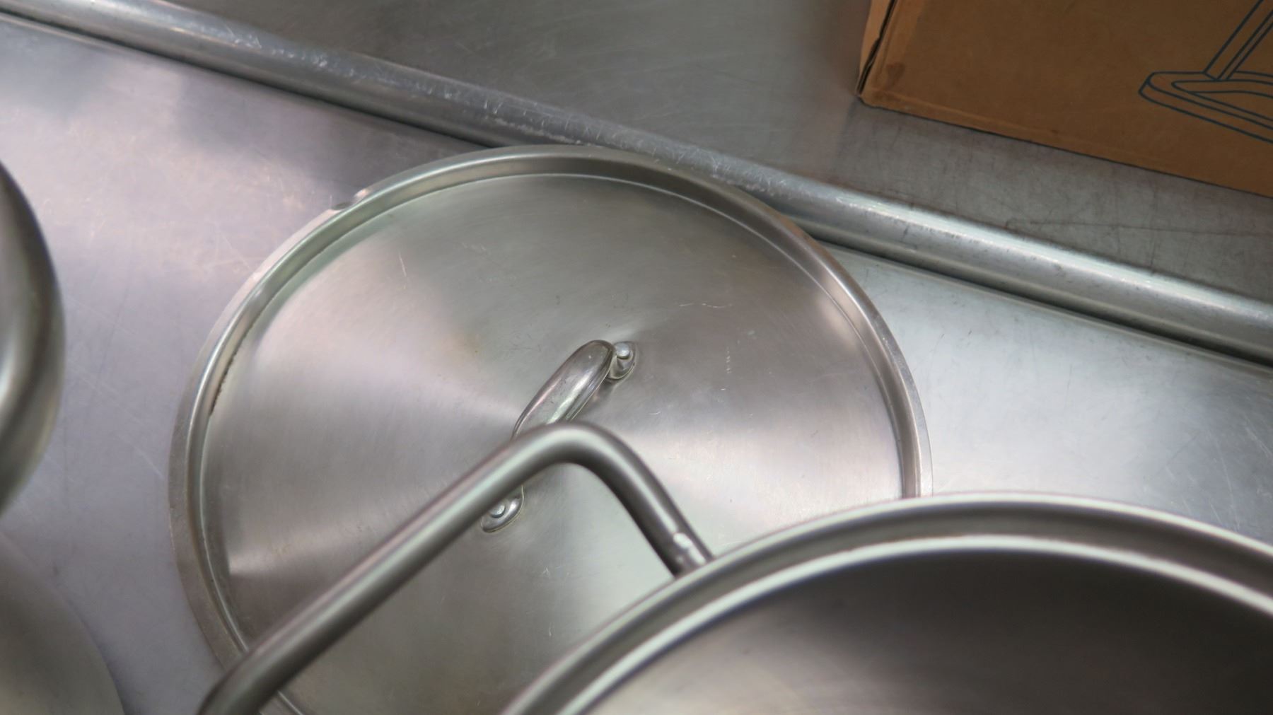 Qty 3 Misc Sizes Pots - Large Stock Pot w/ Lid, Frying Pan & Tall Sauce Pot