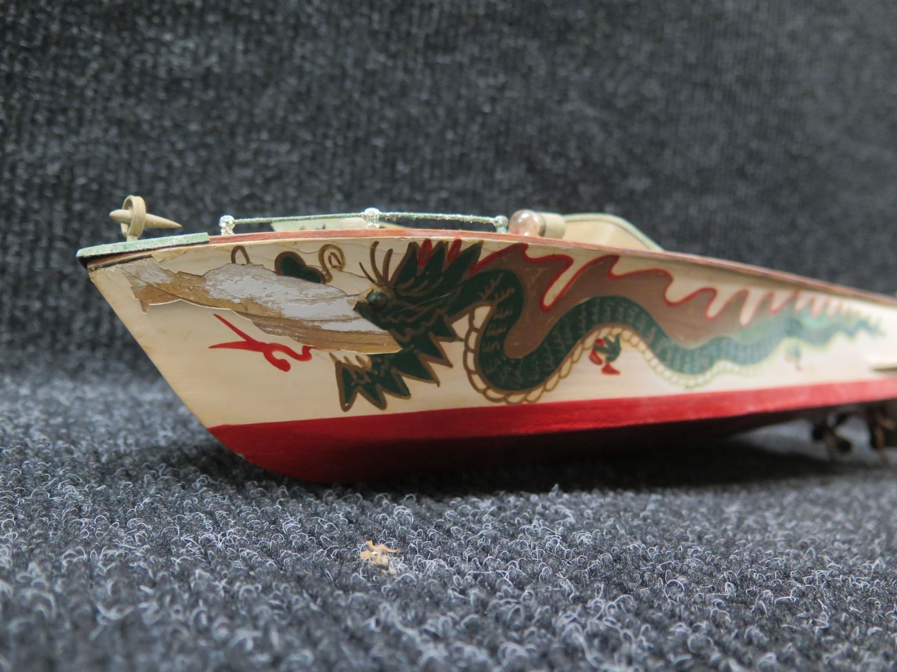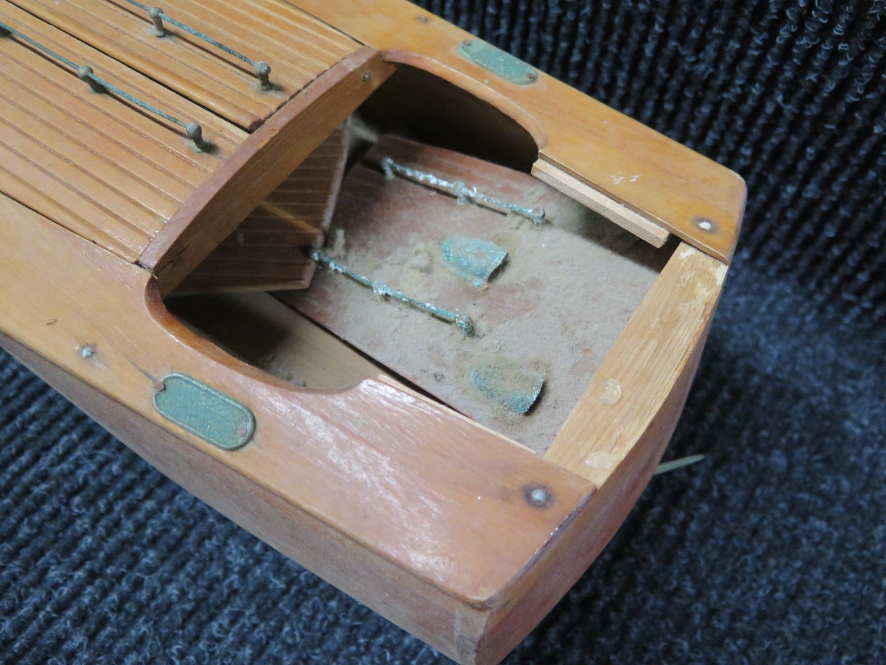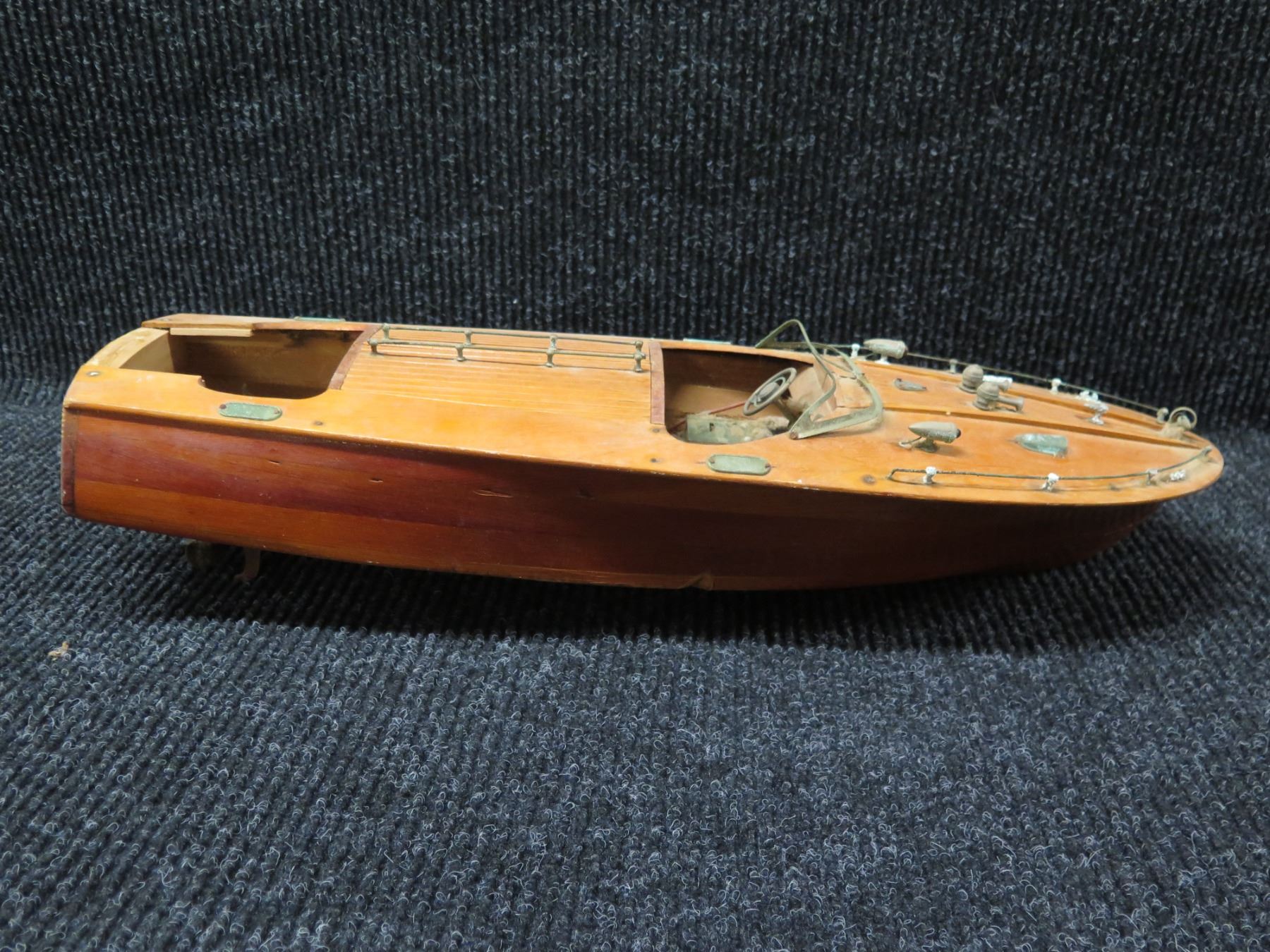 Qty 3 Model Boats: Battleship Missouri 32"L, Wooden Speed Boat & Chris Craft 18"L