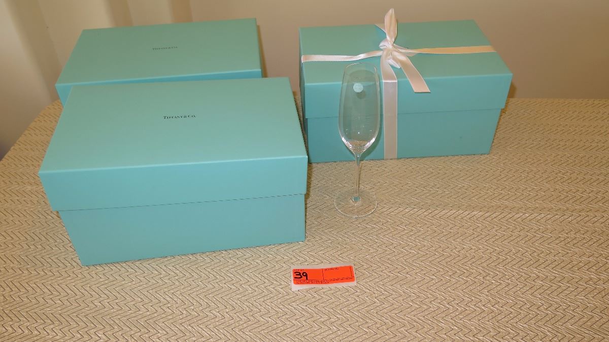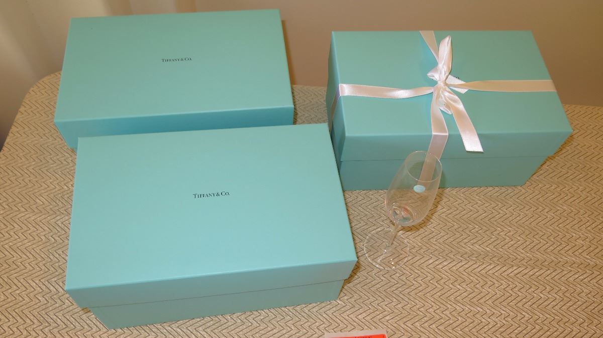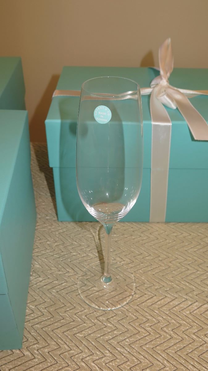 Qty 3 New Tiffany & Co. Fluted Champagne Glasses( with 3 Blue Boxes)