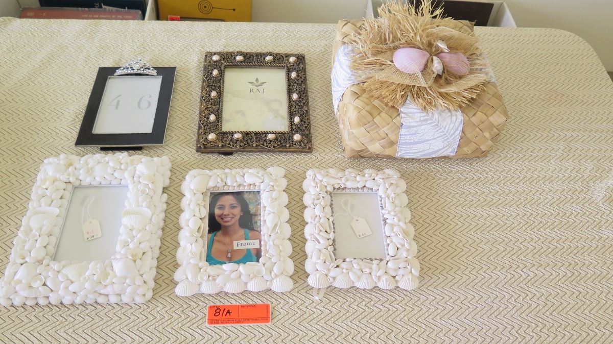 Qty 3 New White Shell Picture Frames, 2 Decorative Picture Frames, Woven Lauhala Gift Basket