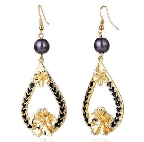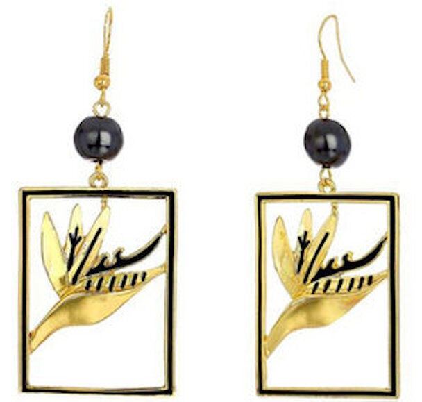 Qty 3 Pair Gold-Tone Hawaiian Earrings: Barrel, Hibiscus & Bird of Paradise (approx. 3"L)