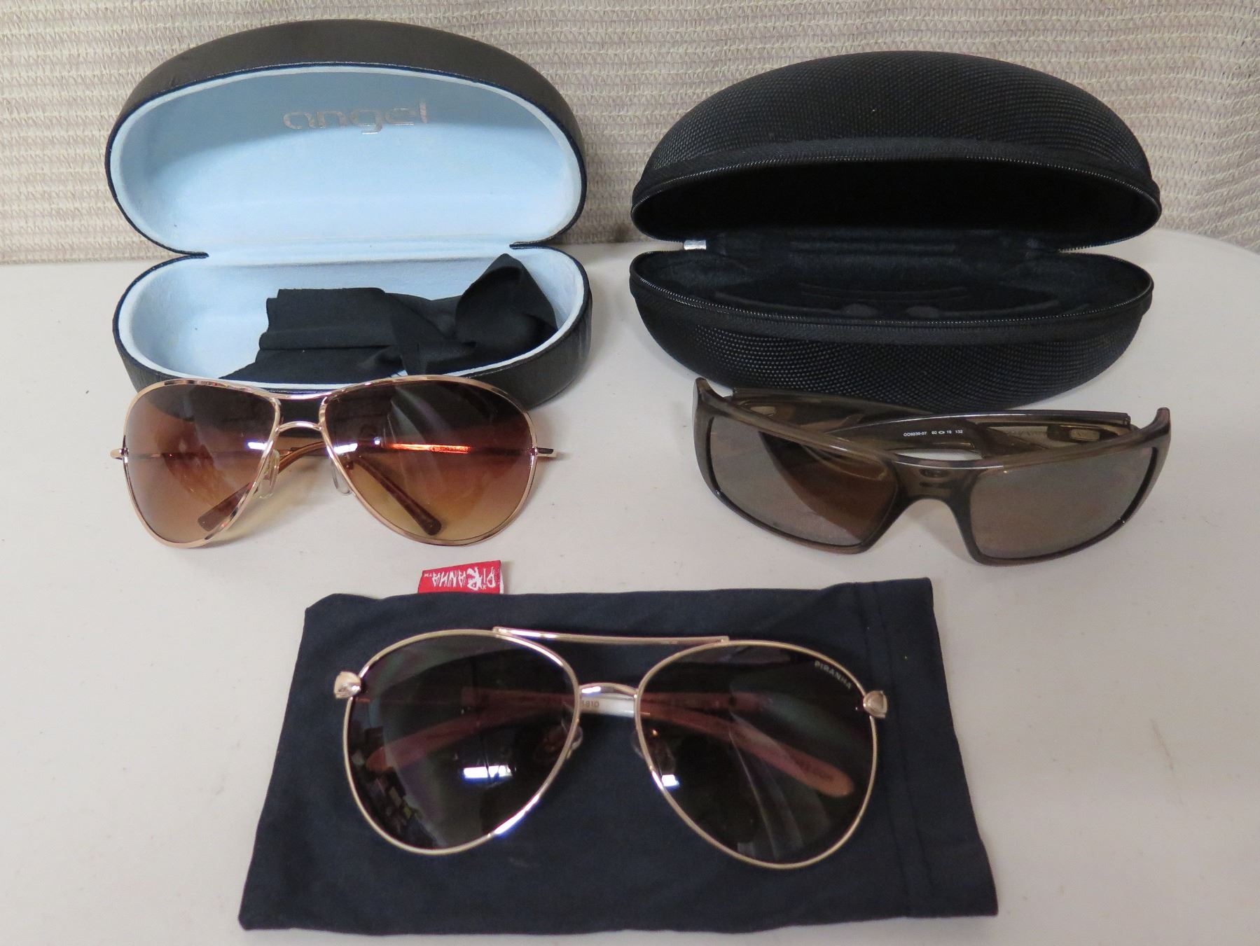 Qty 3 Pair Sunglasses: Piranha, Crann, Angel in Hard & Soft Cases