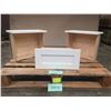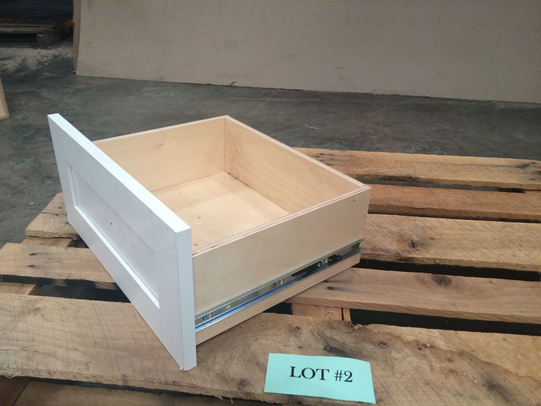 Qty 3 Pre-Finished Maple Cabinet Drawer Boxes w/Drawer Faces. 6”H x 13-3/4”D, 16-15/16”L w/pb white melamine drawer face (18-1/2”l x 8-3/4”h) and slides.