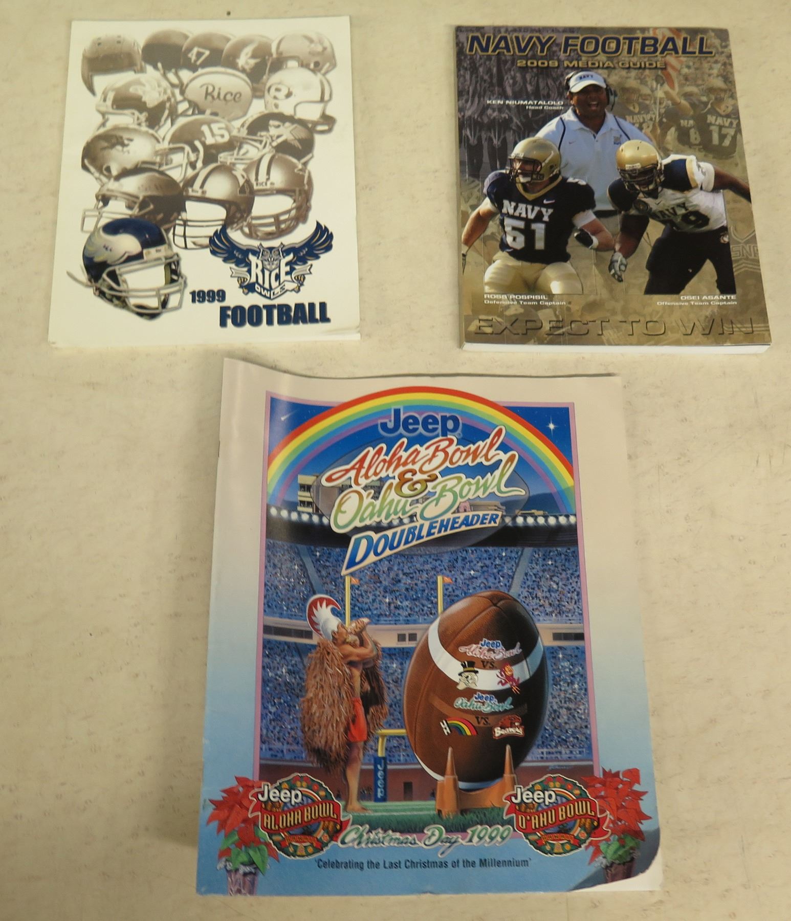 Qty 3 Programs: Rice 1999 Football, Navy 2009 Media Guide & Aloha/Oahu Bowl Doubleheader