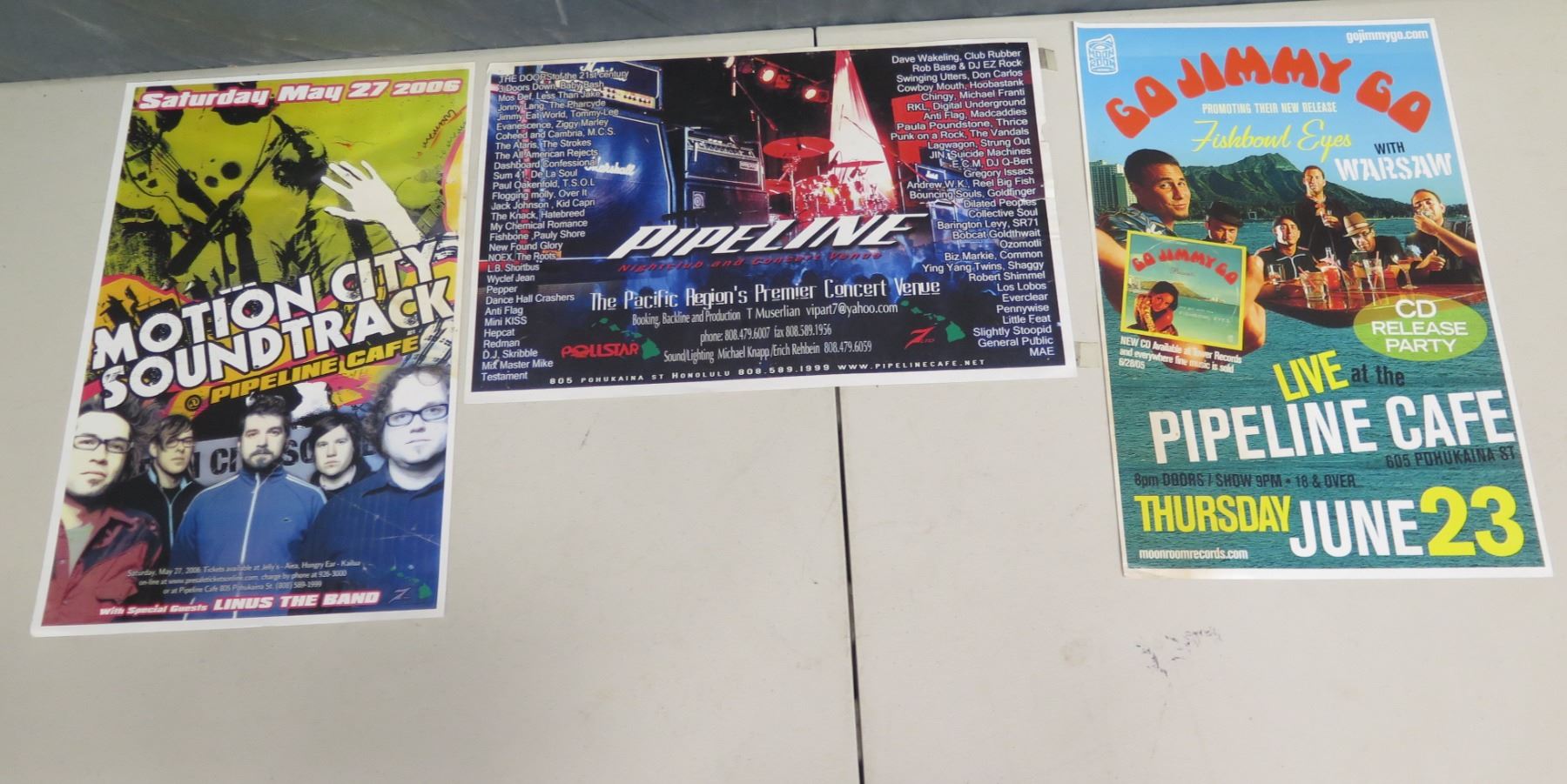 Qty 3 Promos: Motion City Soundtrack, Go Jimmy Go & Pipeline Cafe 11"x17"