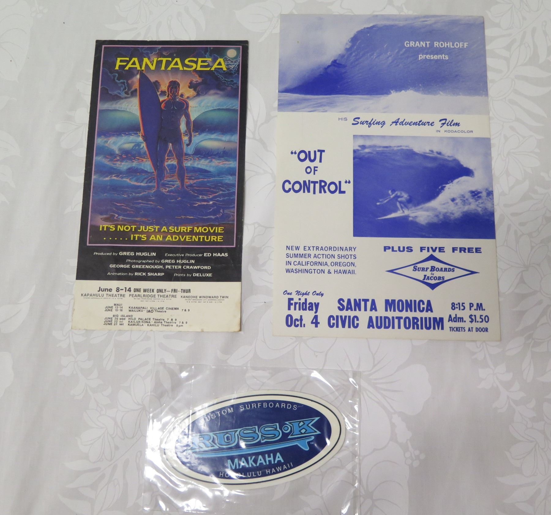 Qty 3 Promotions: Fantasea & Out of Control Surfing Films, Russ K Makaha Sticker