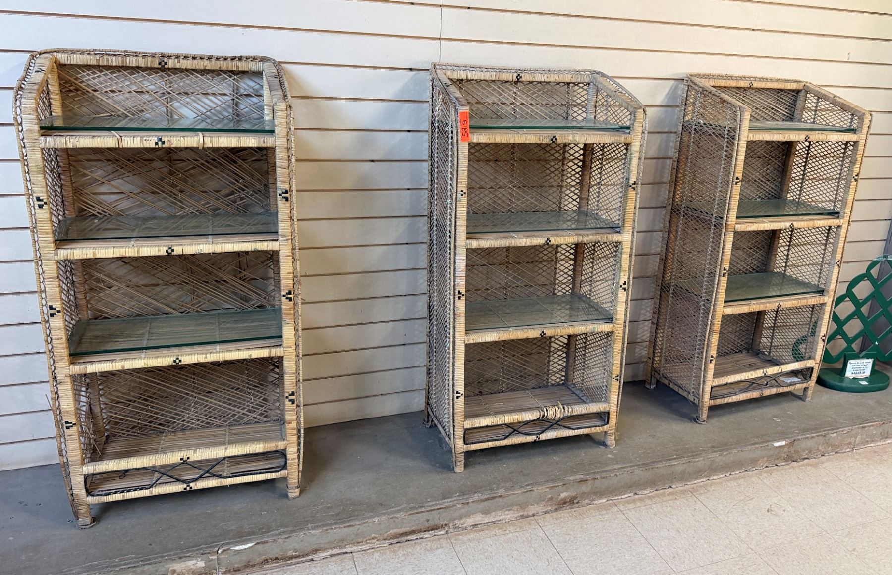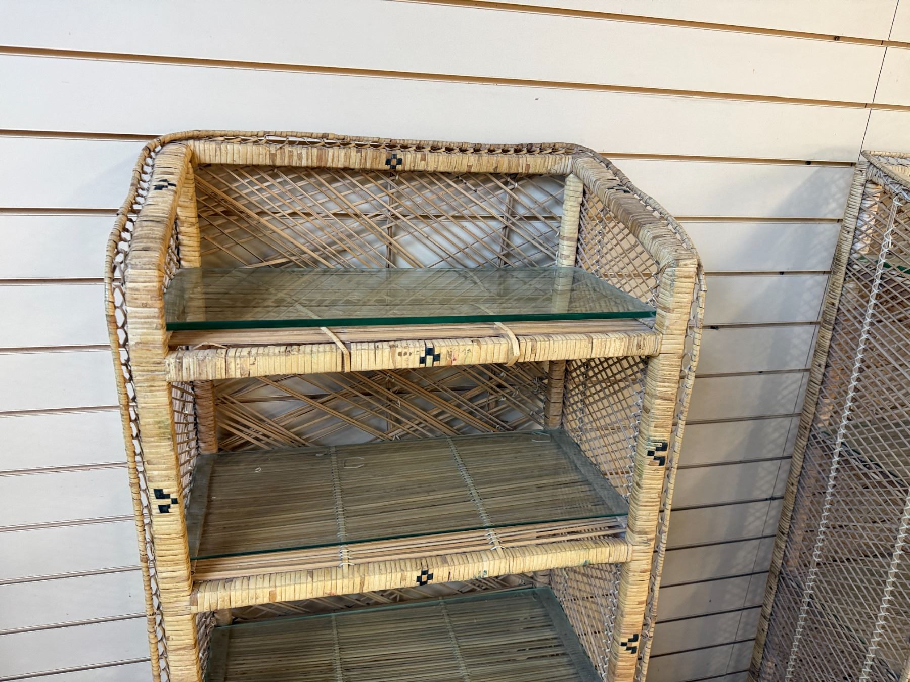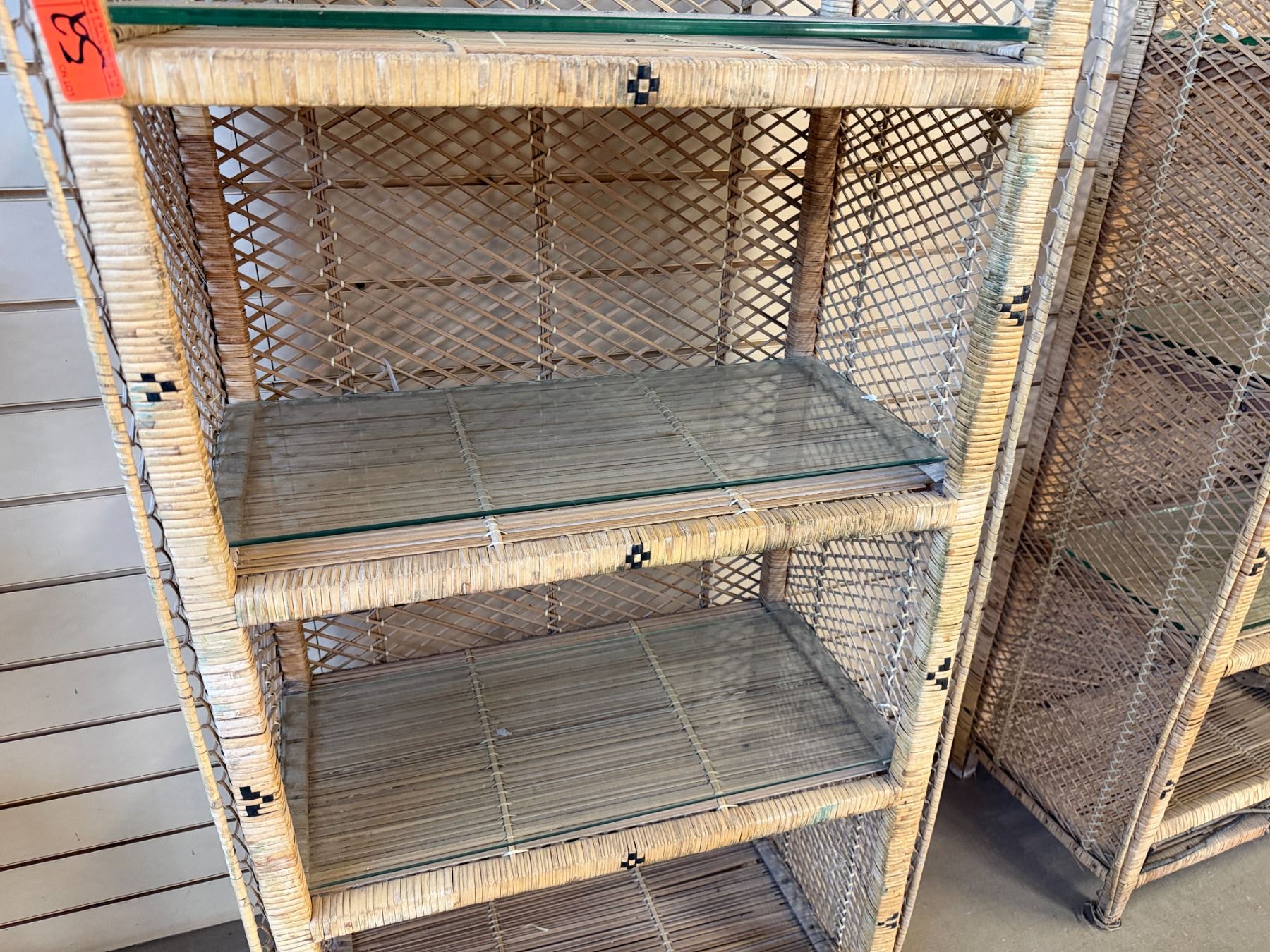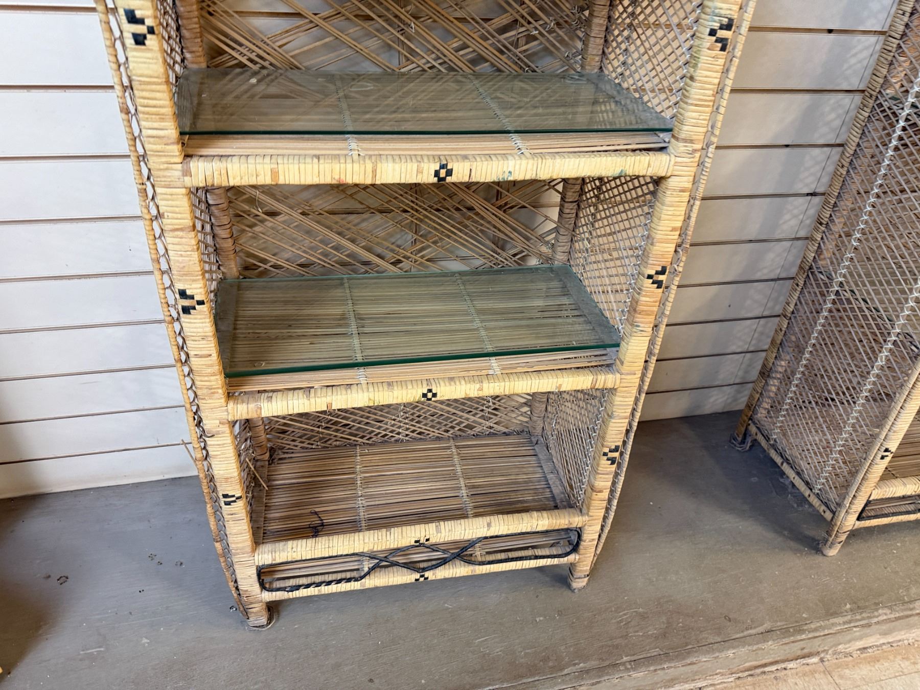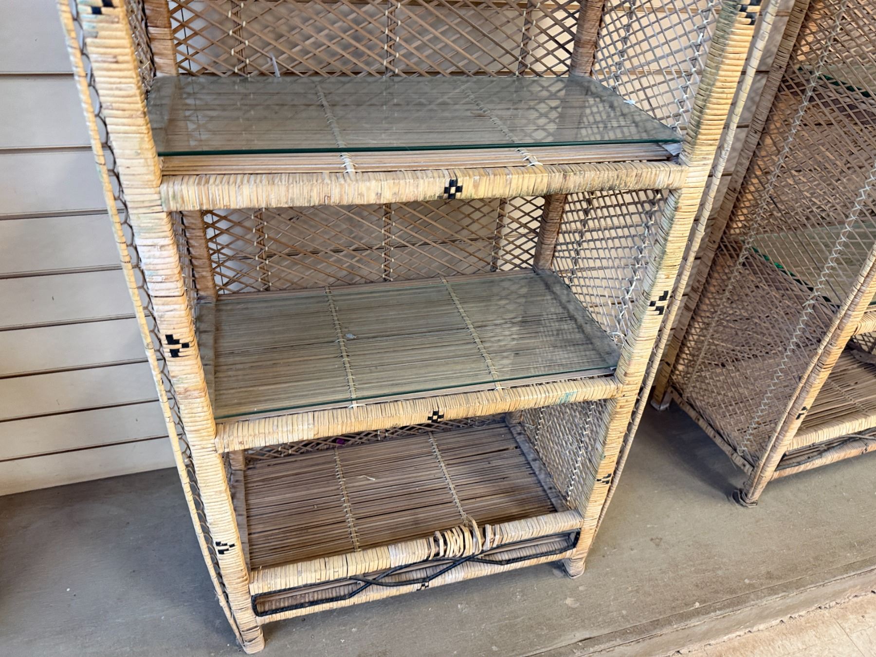 Qty 3 Rattan Shelving Units w/ Clear Shelves 24" x 13" x 46"H
