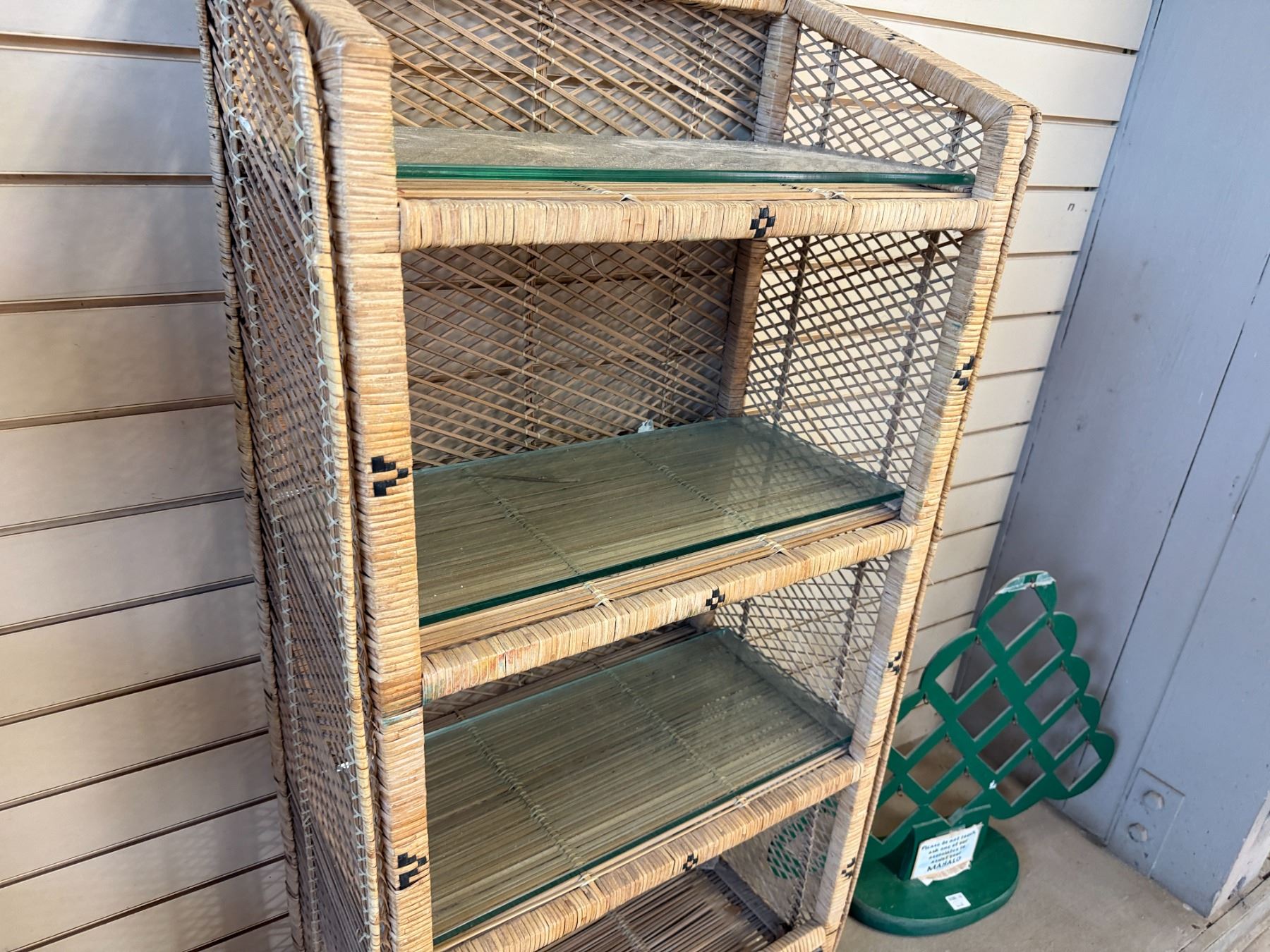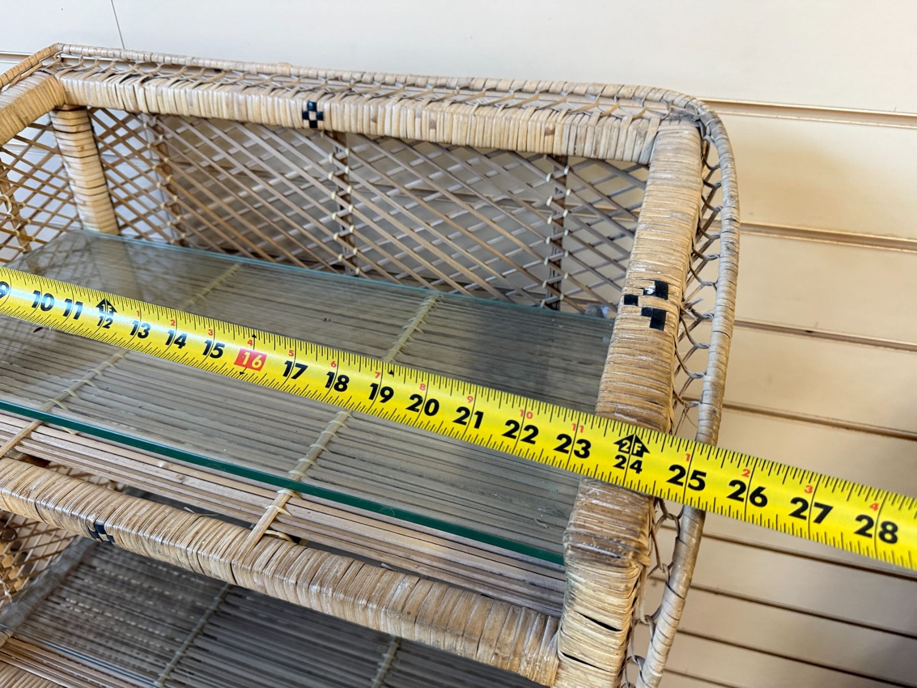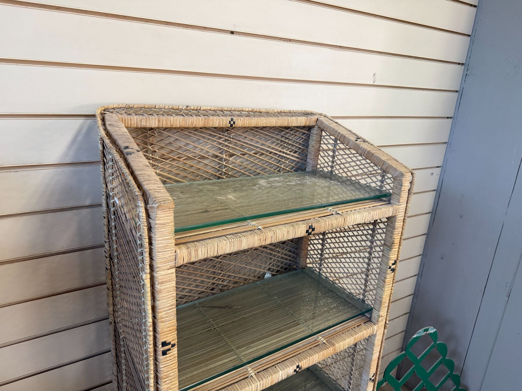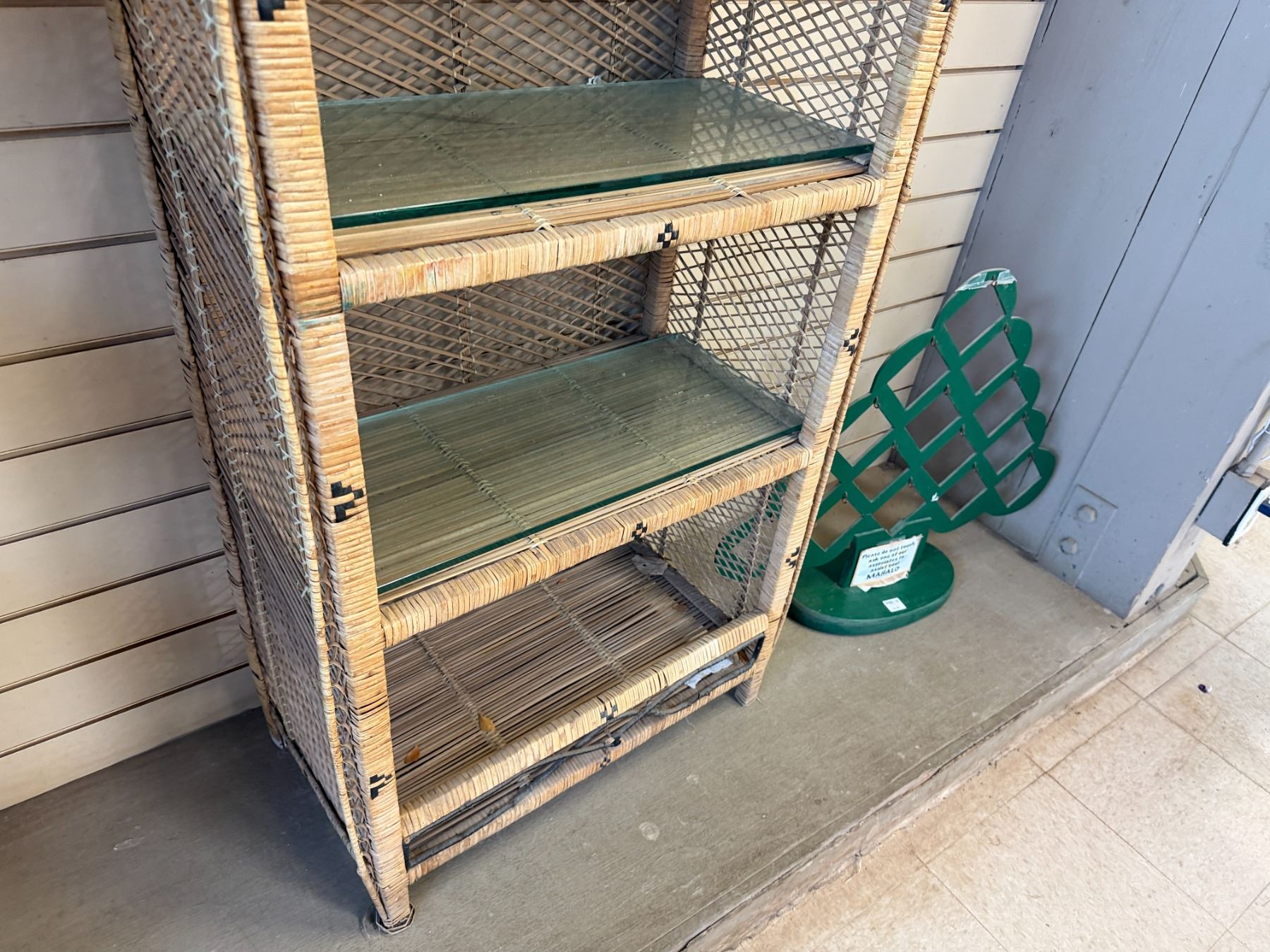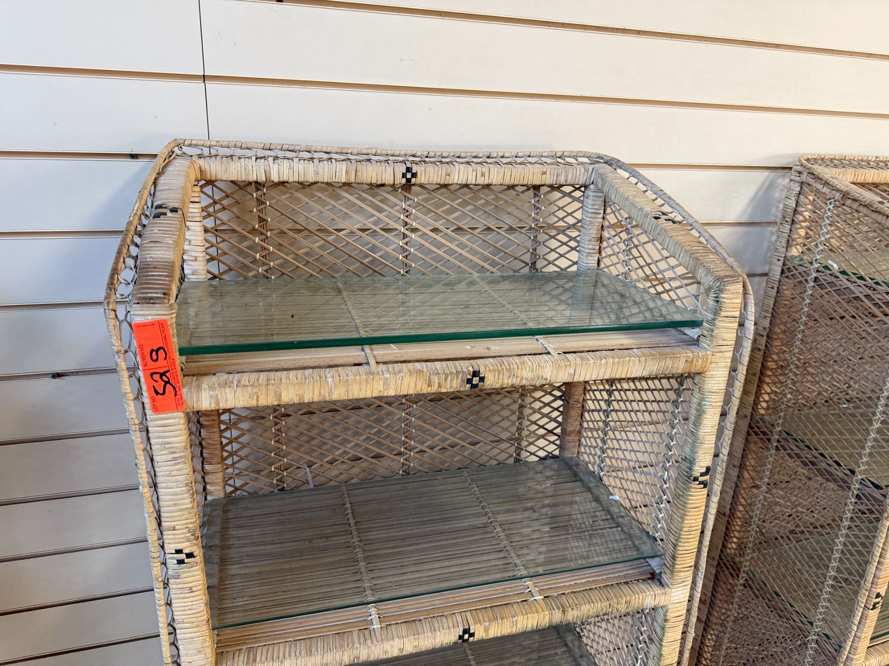 Qty 3 Rattan Shelving Units w/ Clear Shelves 24" x 13" x 46"H
