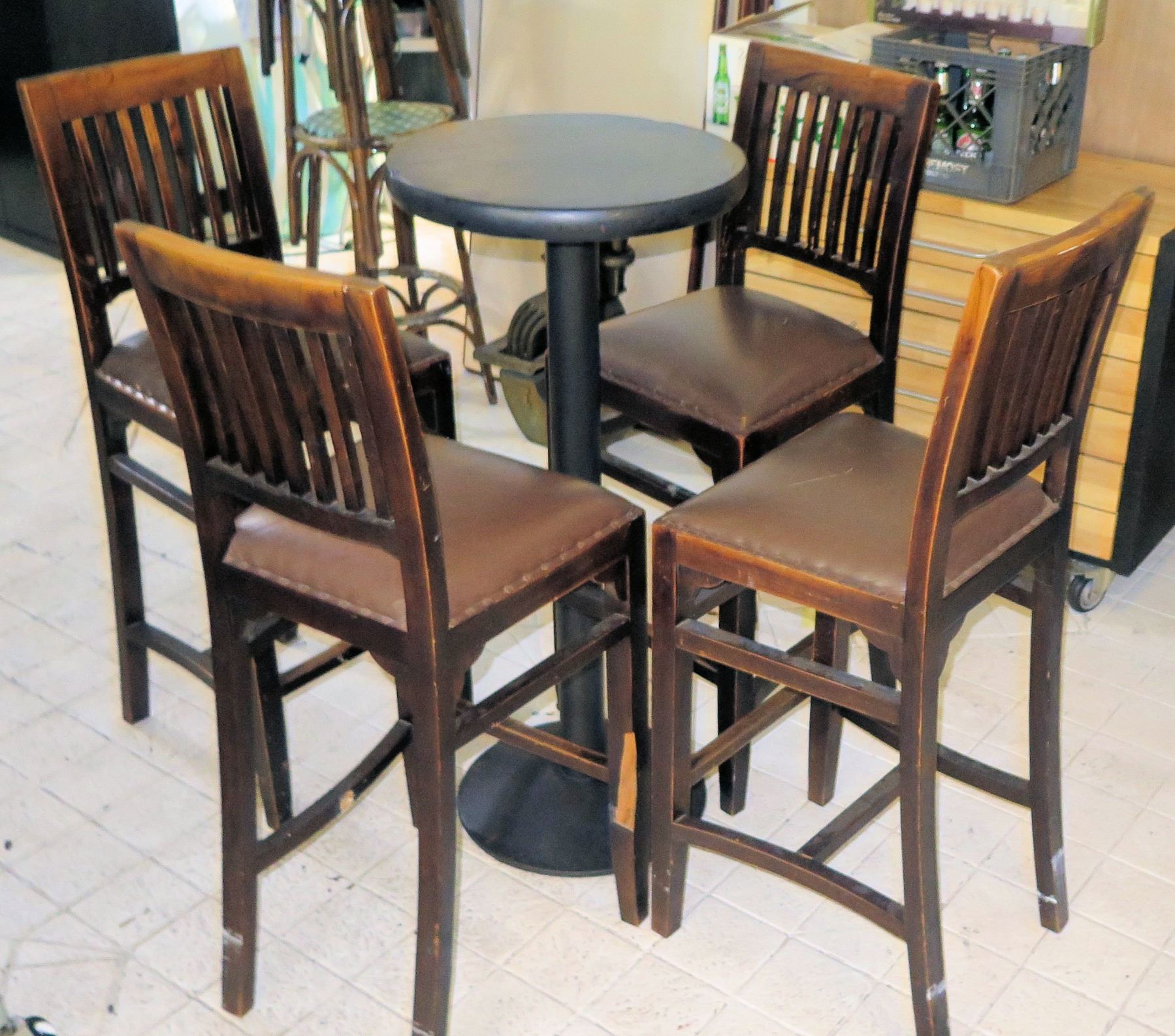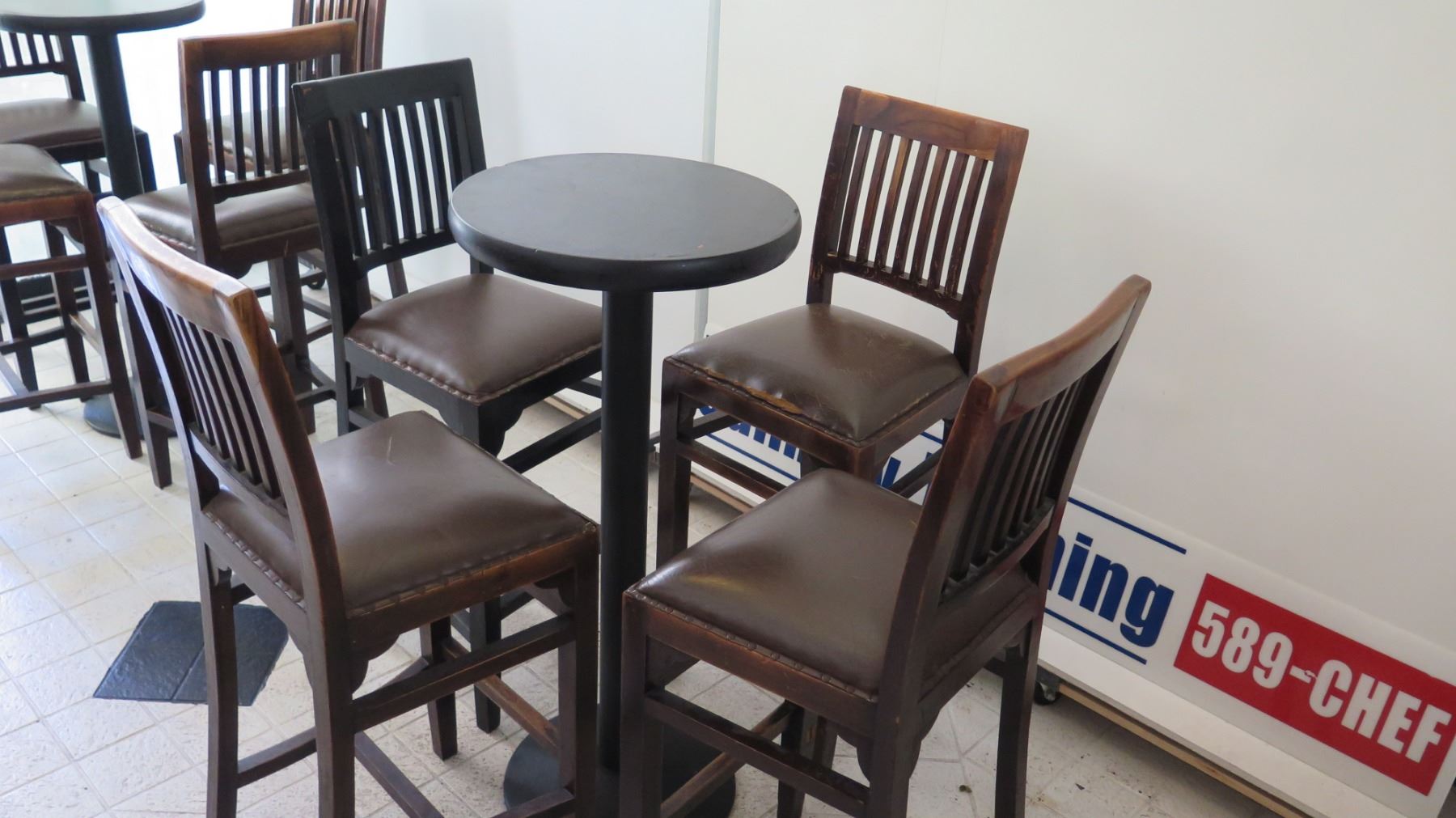 Qty 3 Round Bar-Height Tables & 4 Upholsterded Barstools
