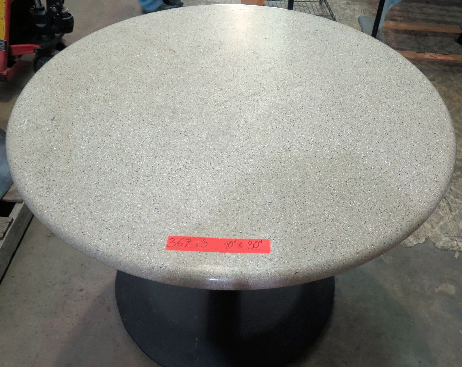Qty 3 Round Stone Tables on Metal Pedestal Base 40" x 30"H