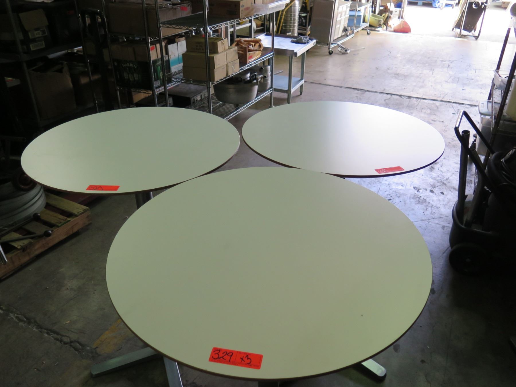 Qty 3 Round Tables w/ Metal Pedestal Base