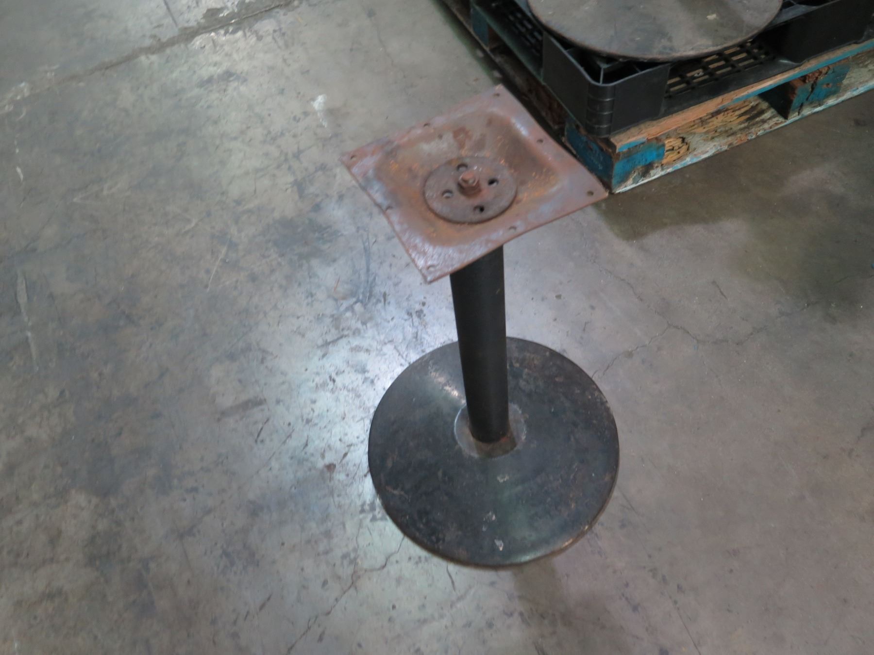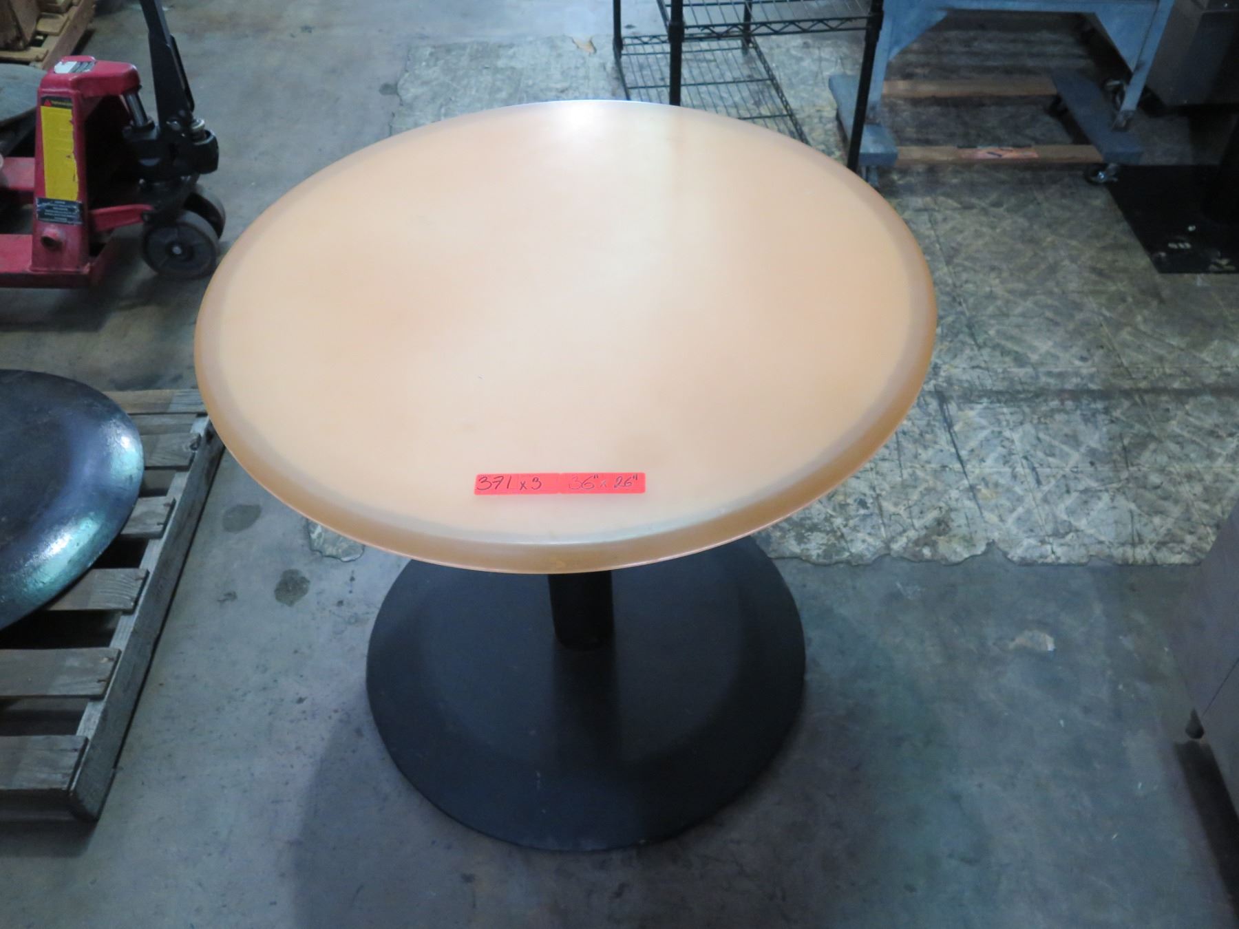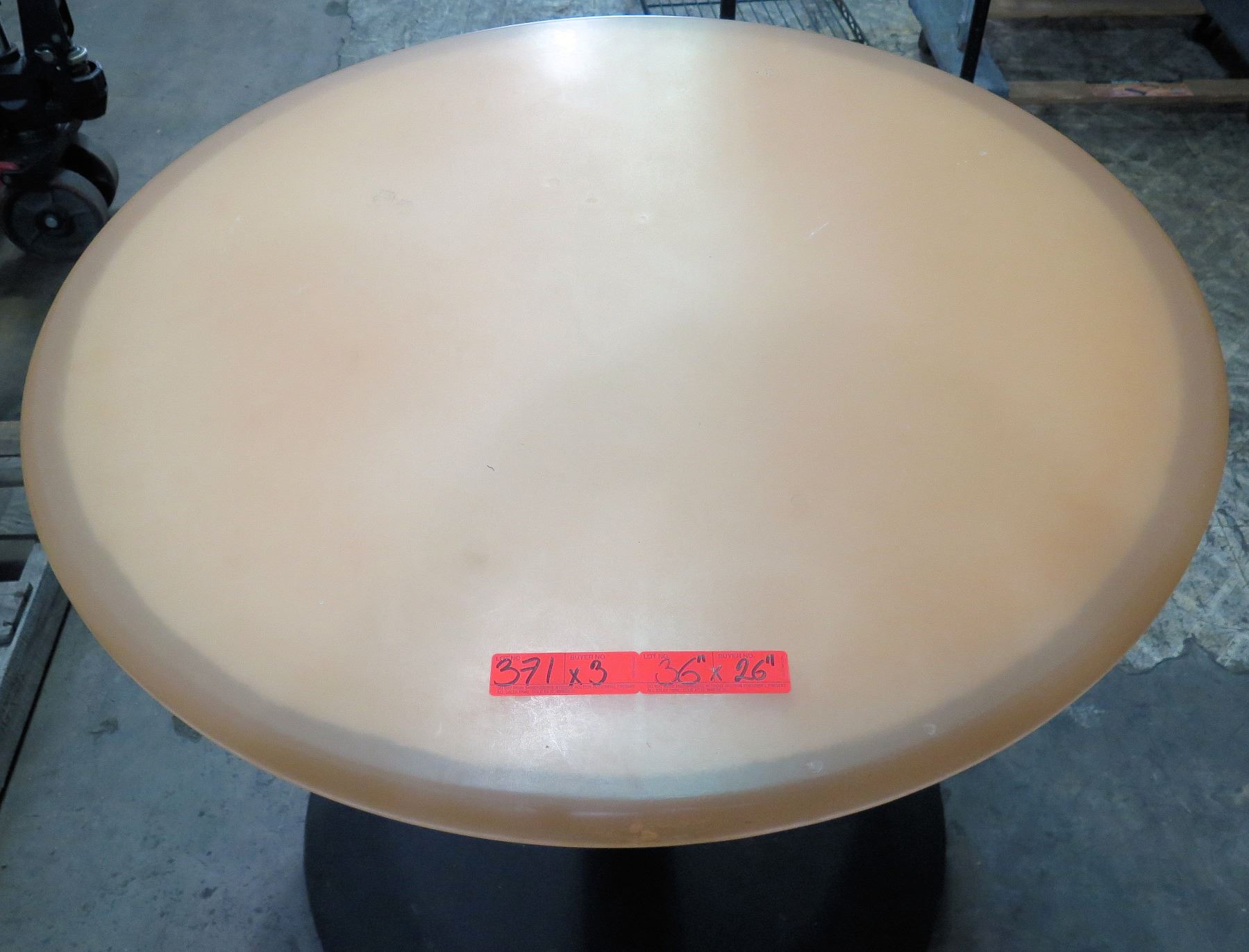 Qty 3 Round Tan Tables on Metal Pedestal Base 36" x 26"H