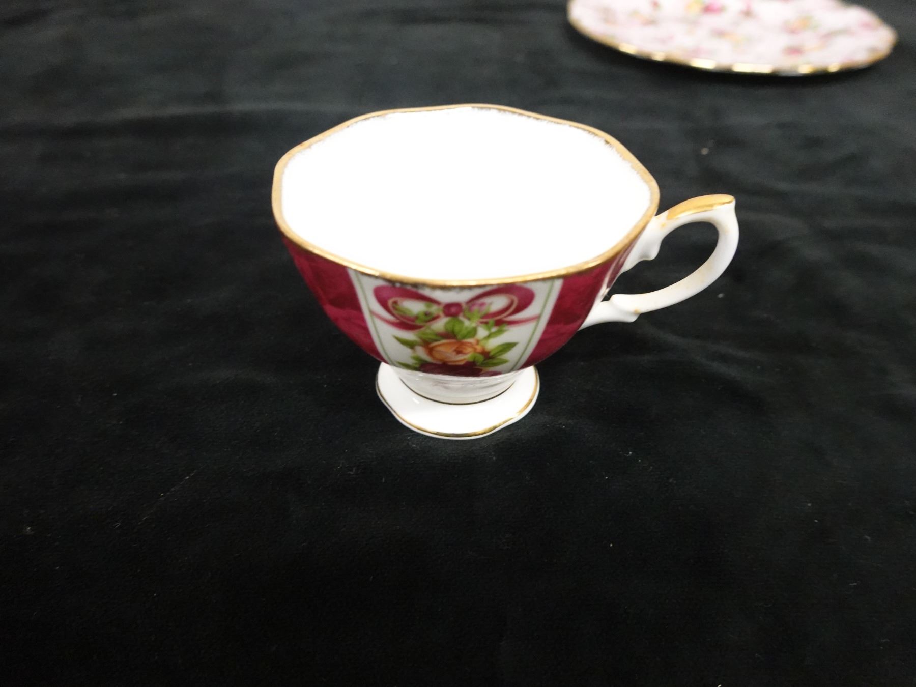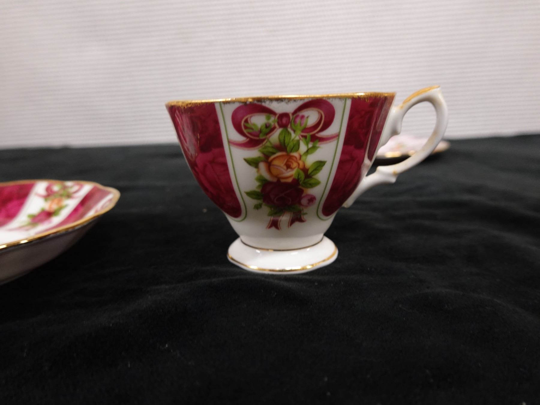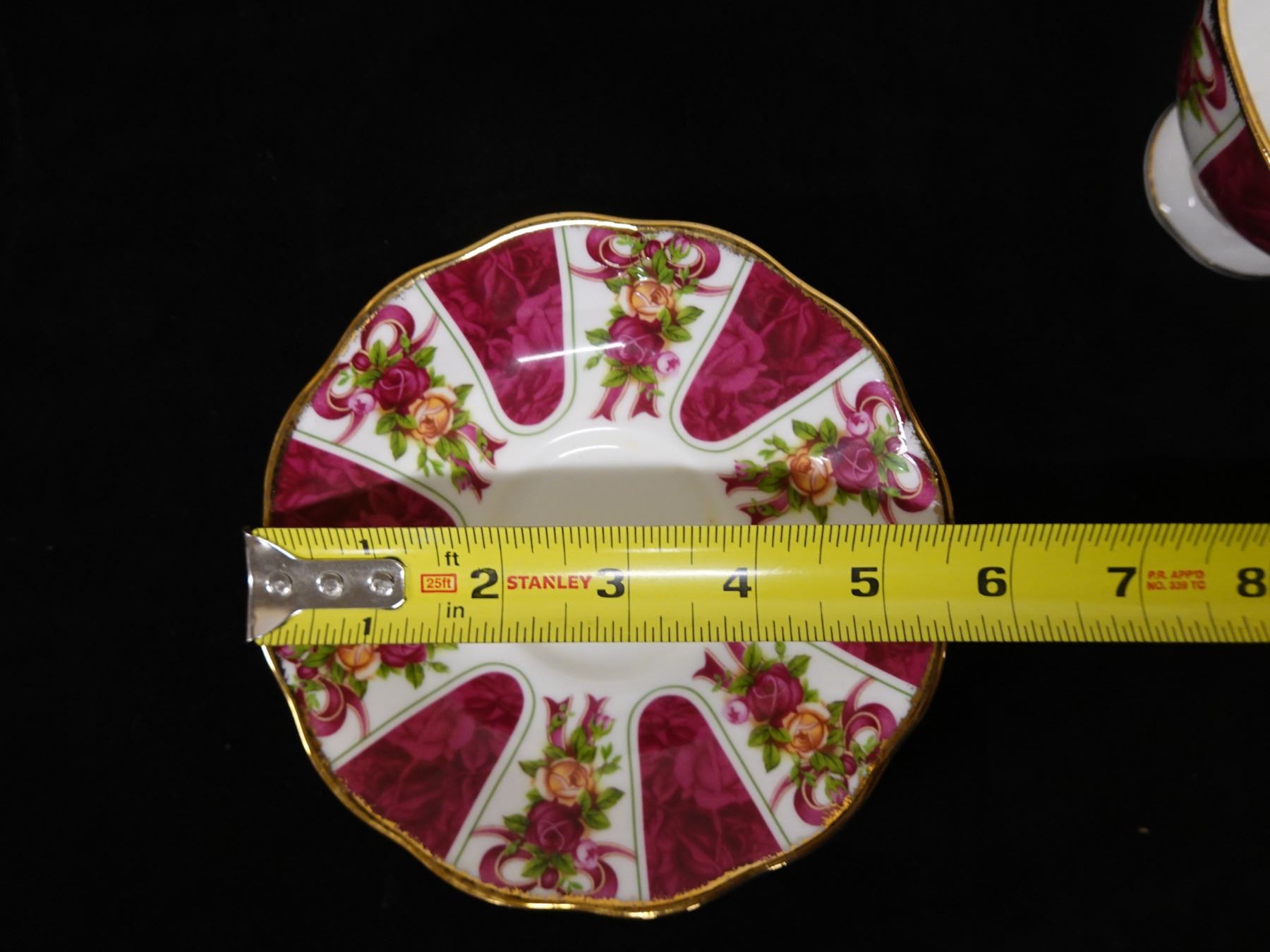 Qty 3 Royal Albert Bone China Dishes: Ruby Damask Plate, Cup & Saucer, Pink Chintz Plate, Misc Size
