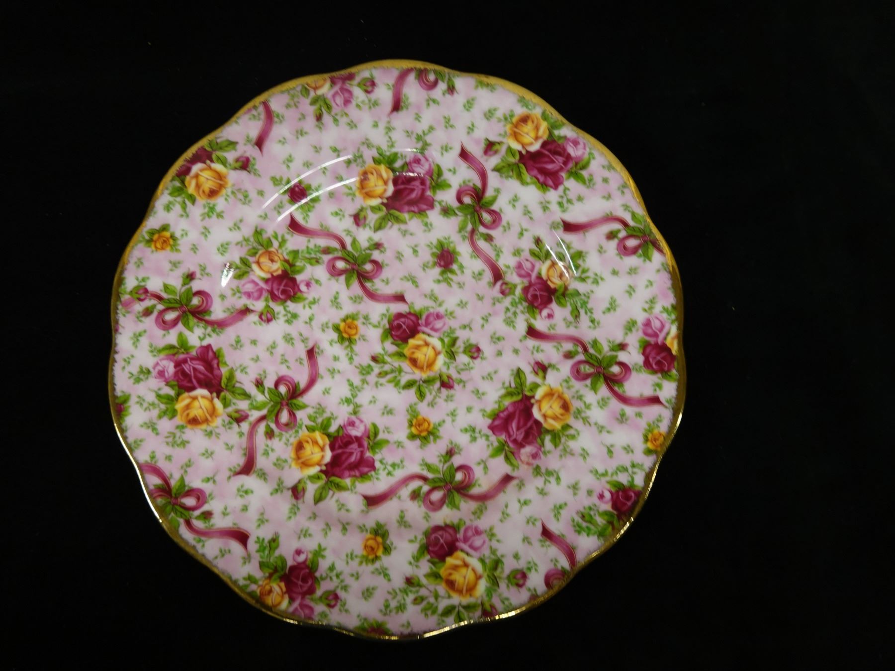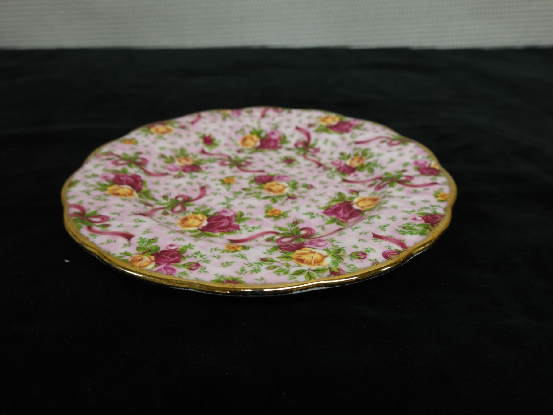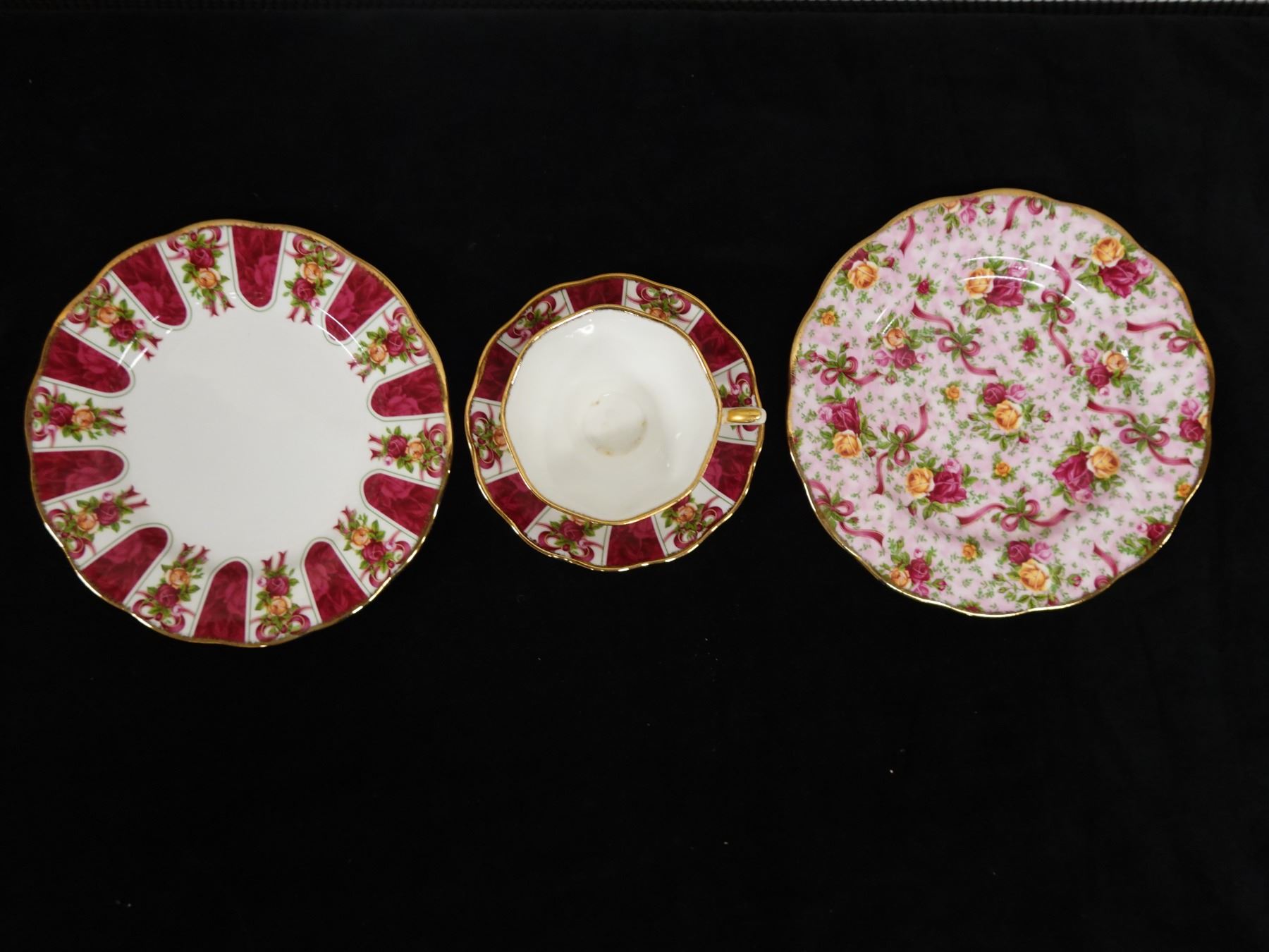Qty 3 Royal Albert Bone China Dishes: Ruby Damask Plate, Cup & Saucer, Pink Chintz Plate, Misc Sizes