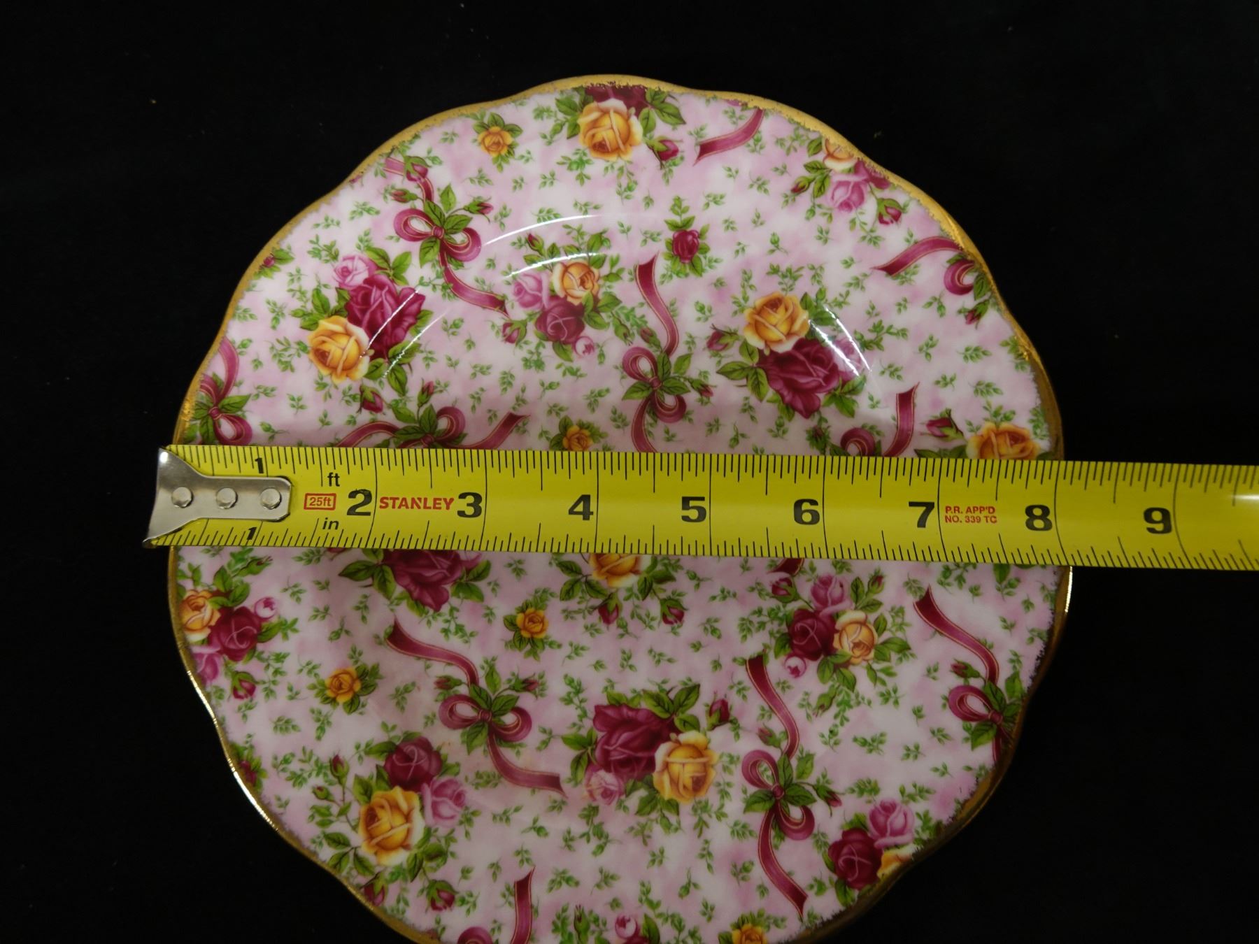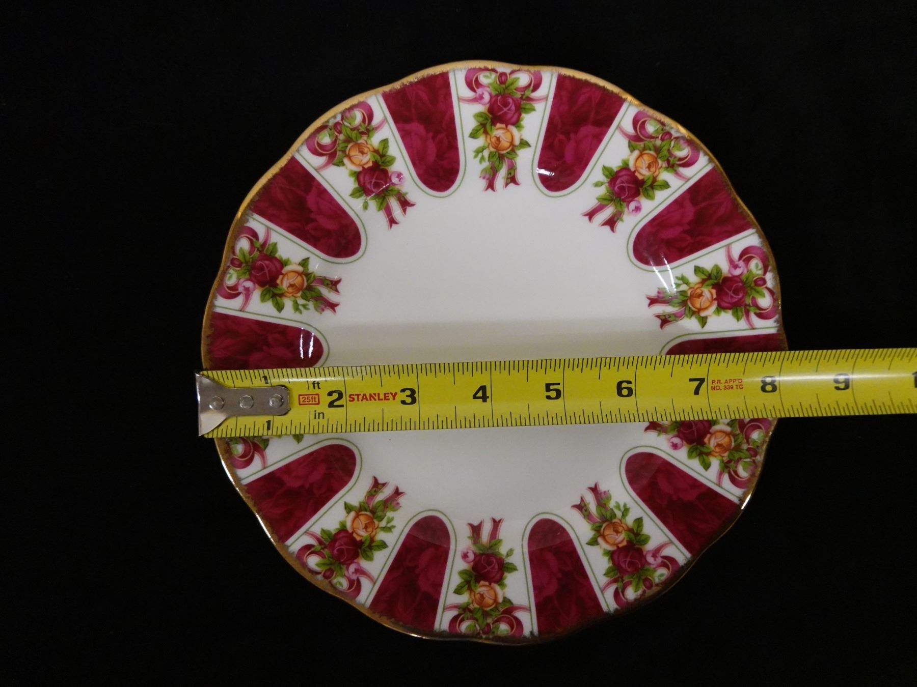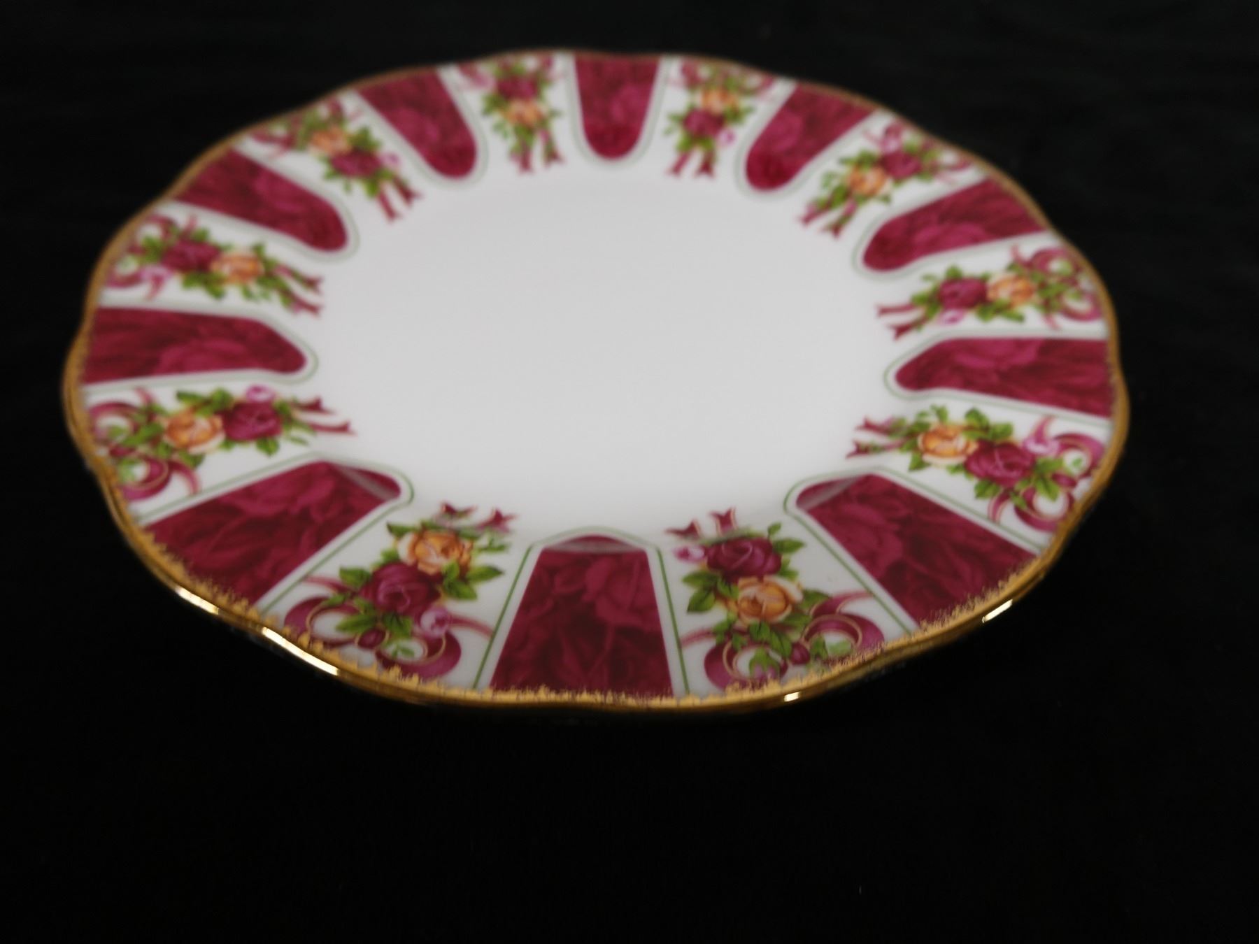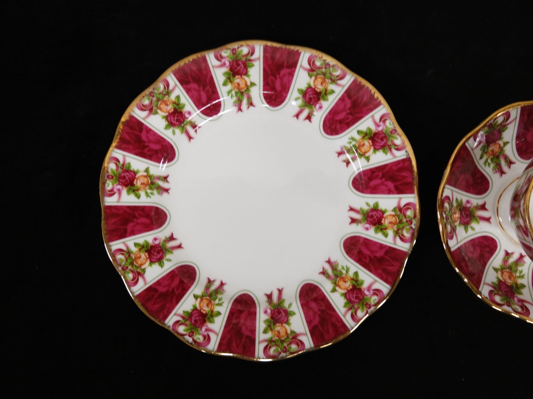 Qty 3 Royal Albert Bone China Dishes: Ruby Damask Plate, Cup & Saucer, Pink Chintz Plate, Misc Sizes