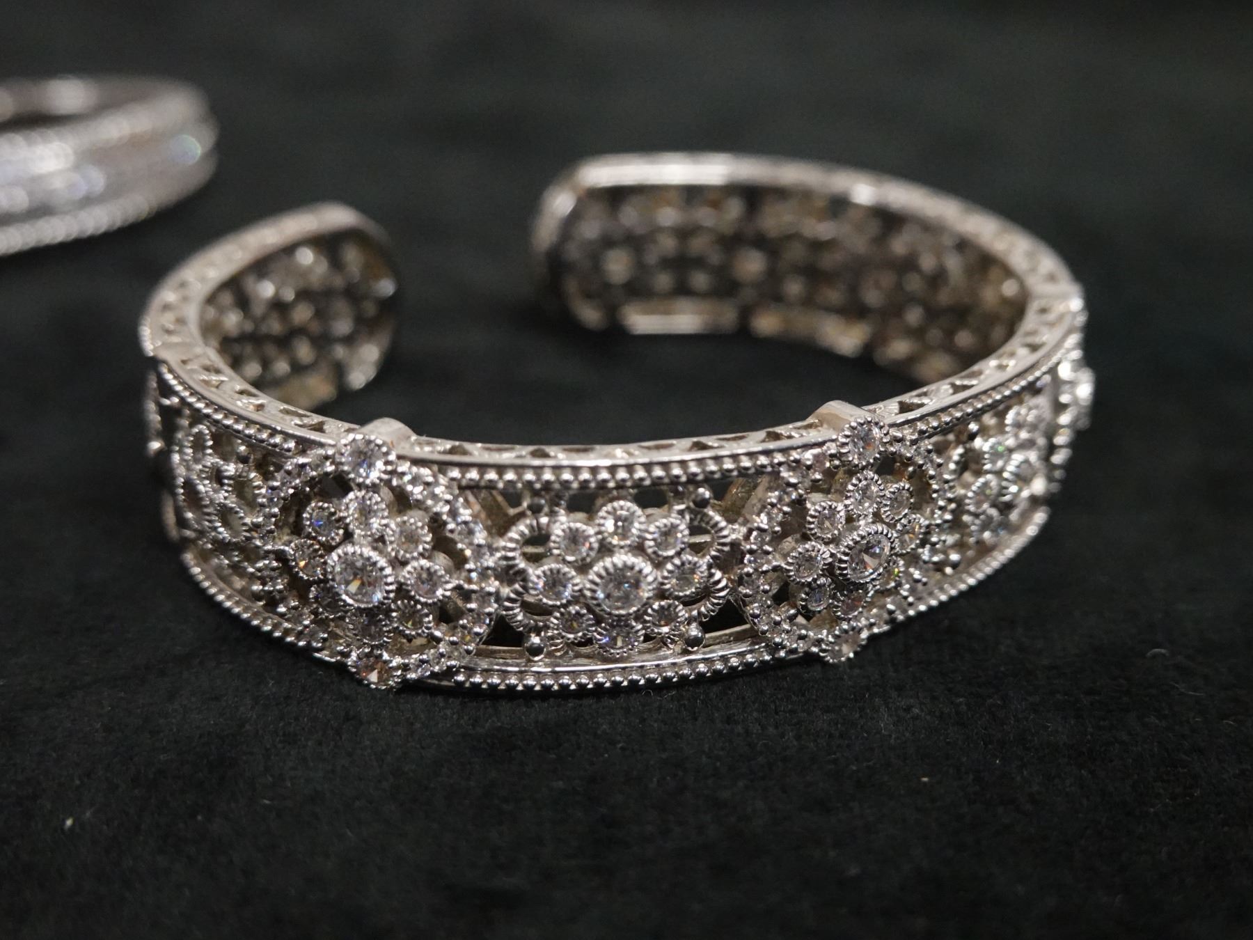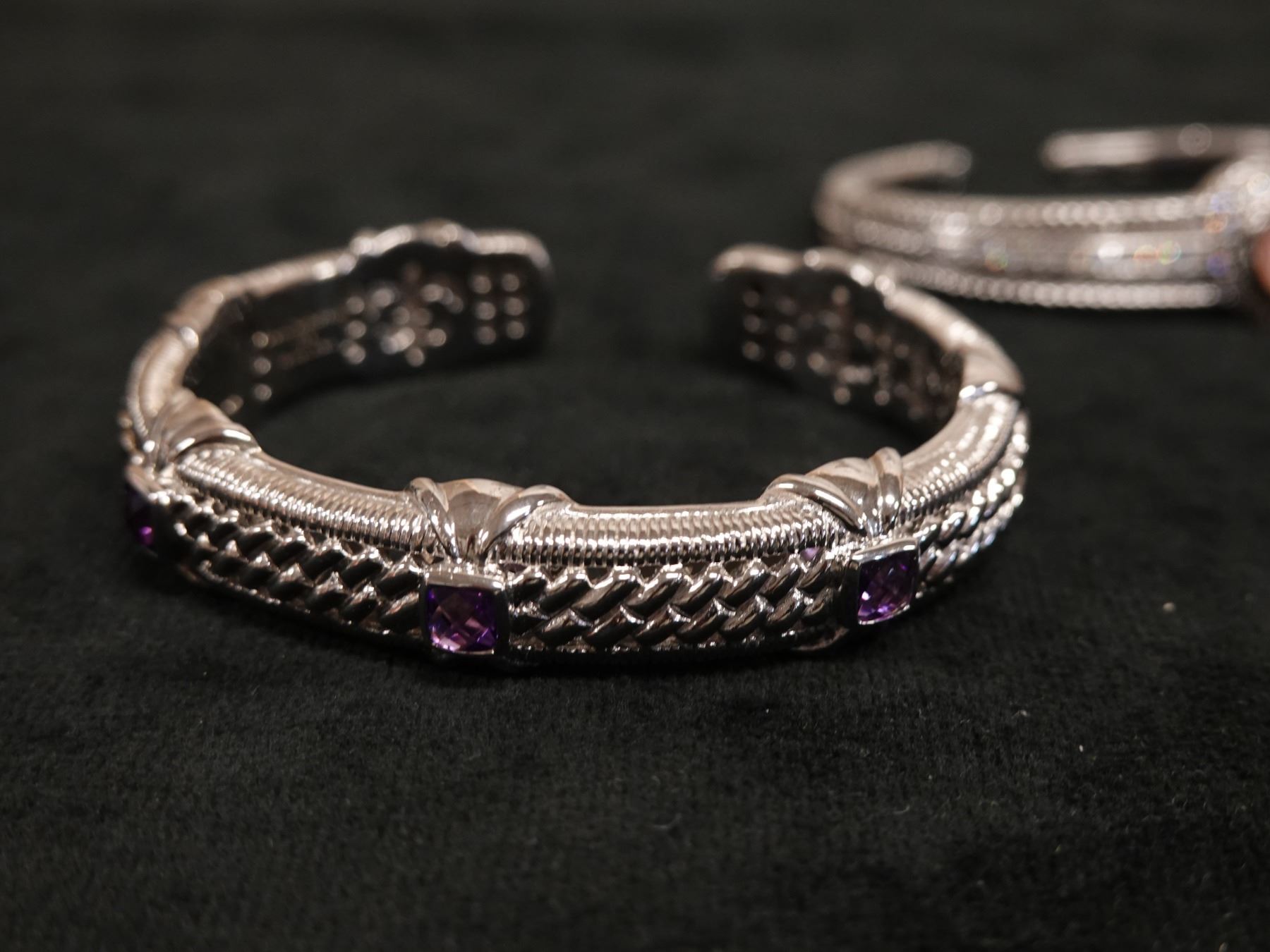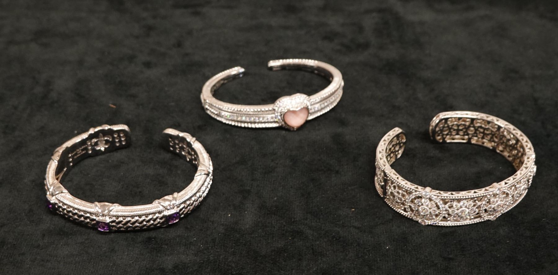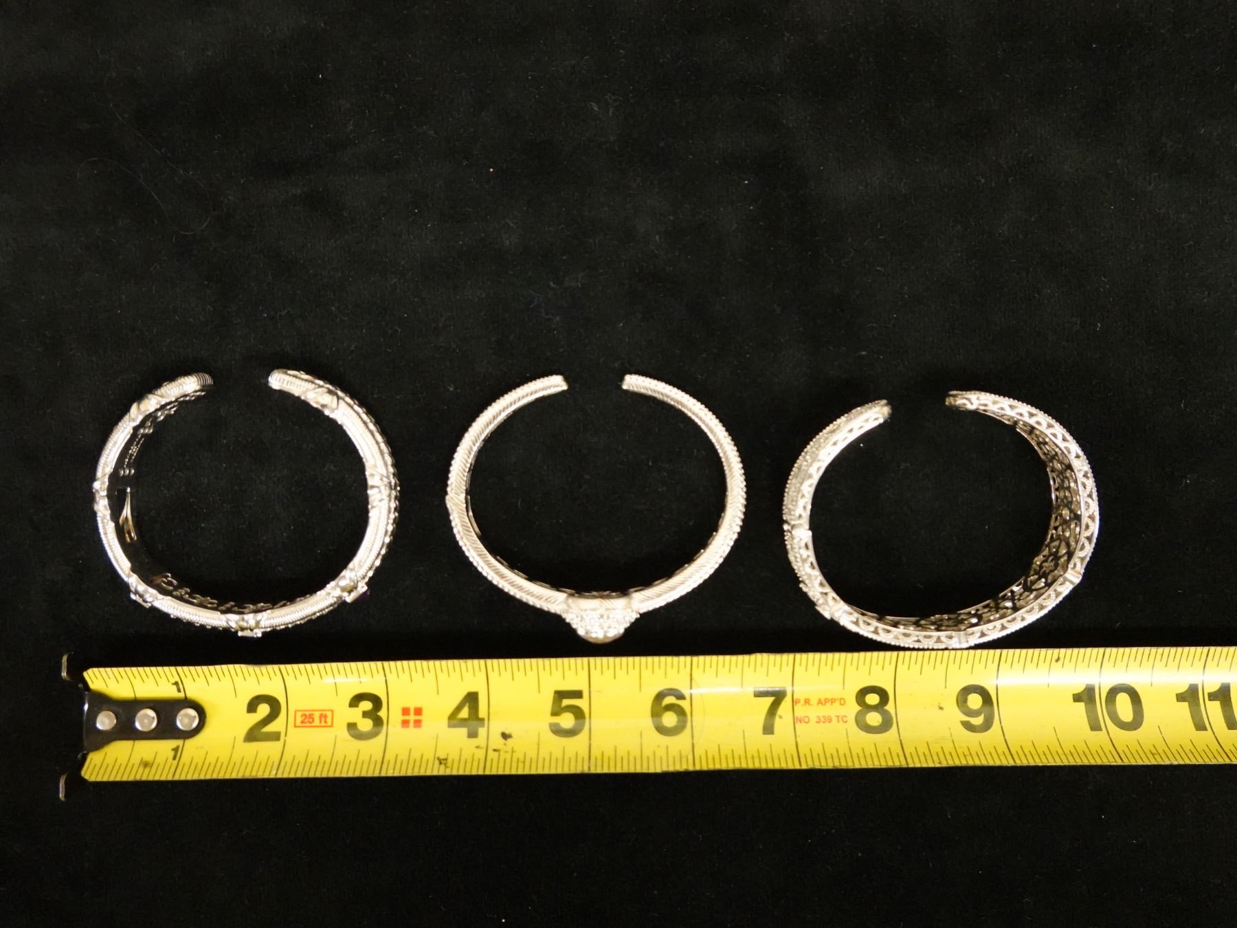 Qty 3 Sterling Silver 925 Cuff Bracelets w/ Filigree & Bead Accents, Approx. 3" Dia