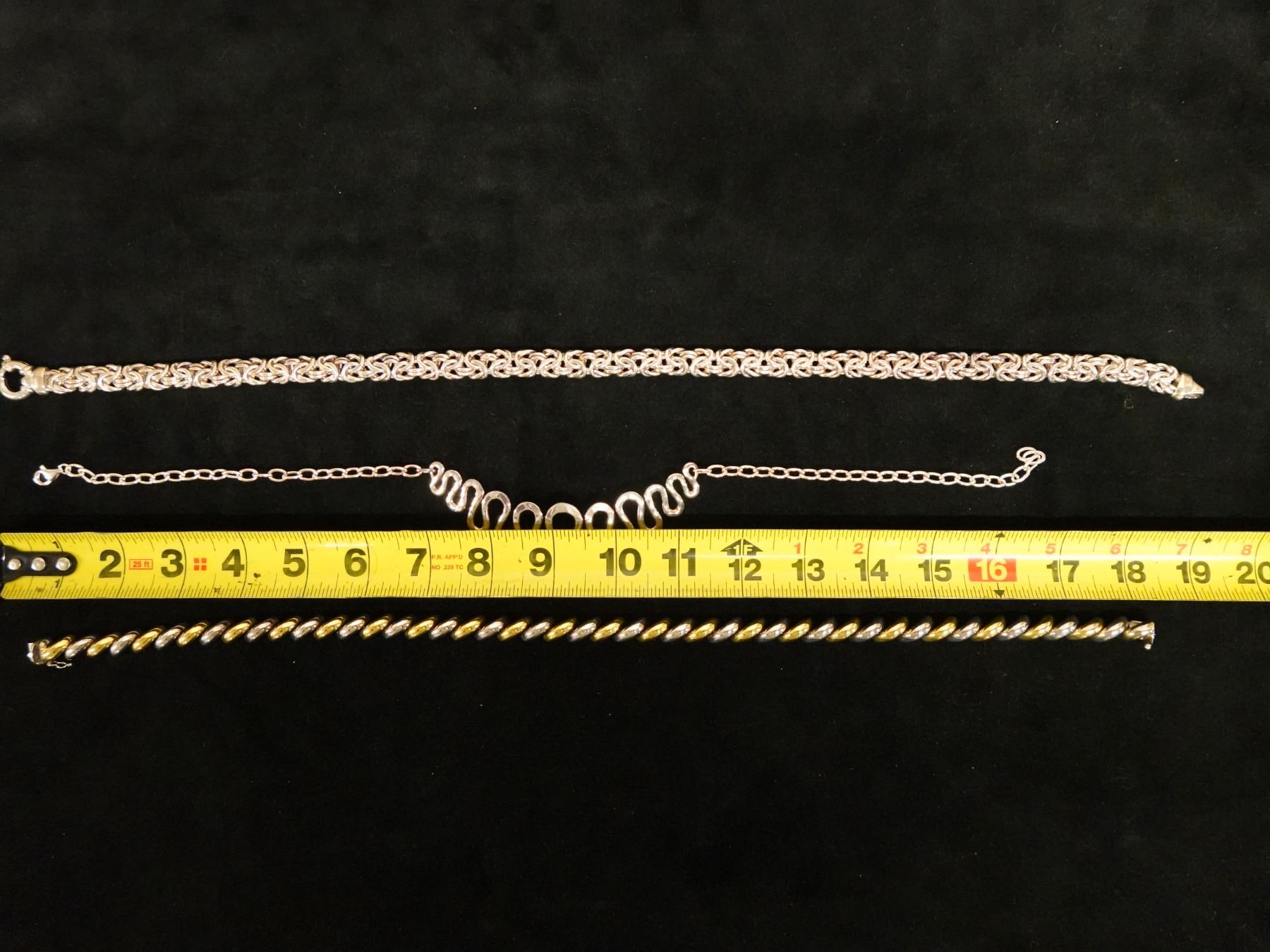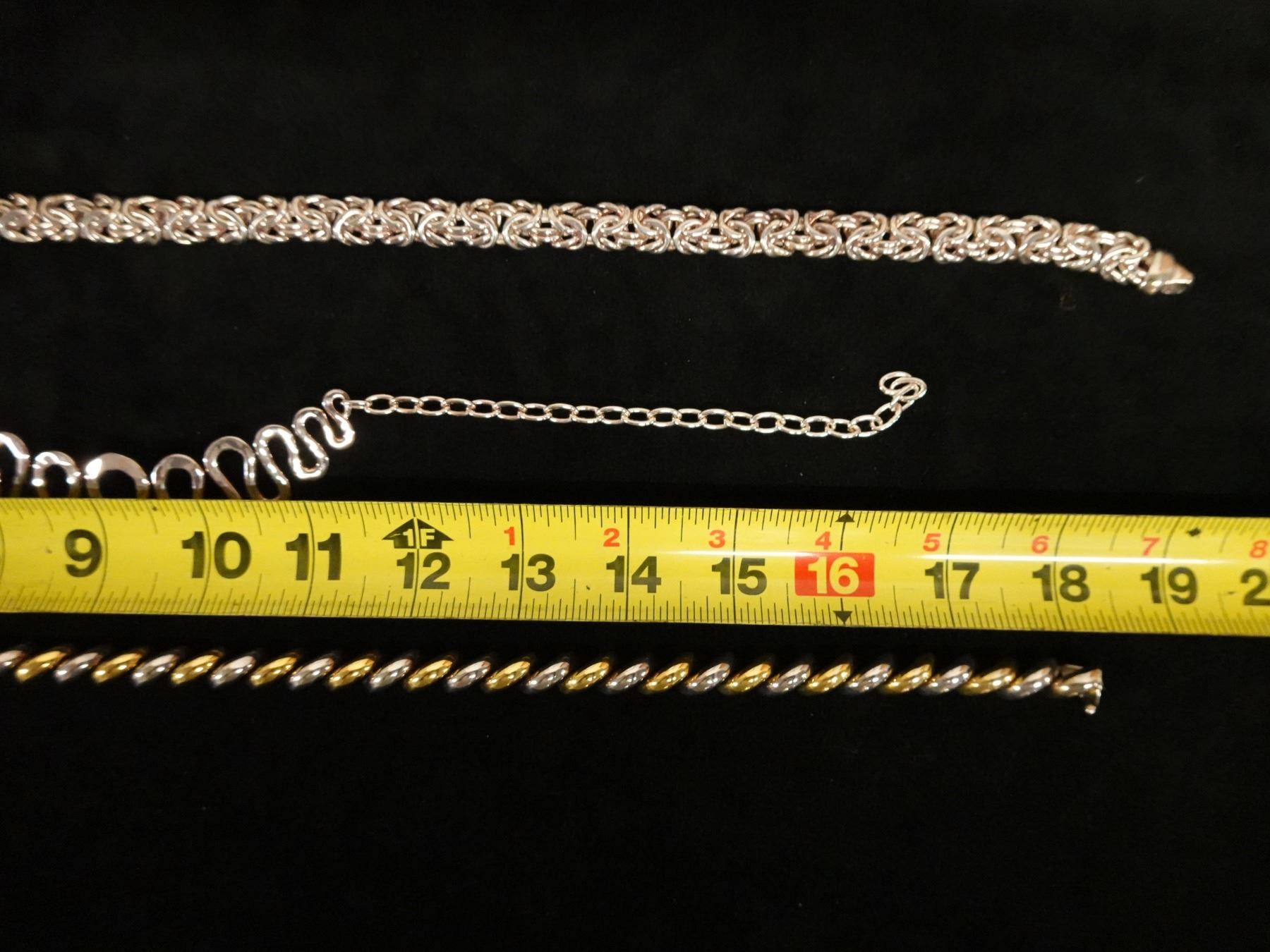 Qty 3 Sterling Silver 925 Necklaces, Misc Styles & Sizes