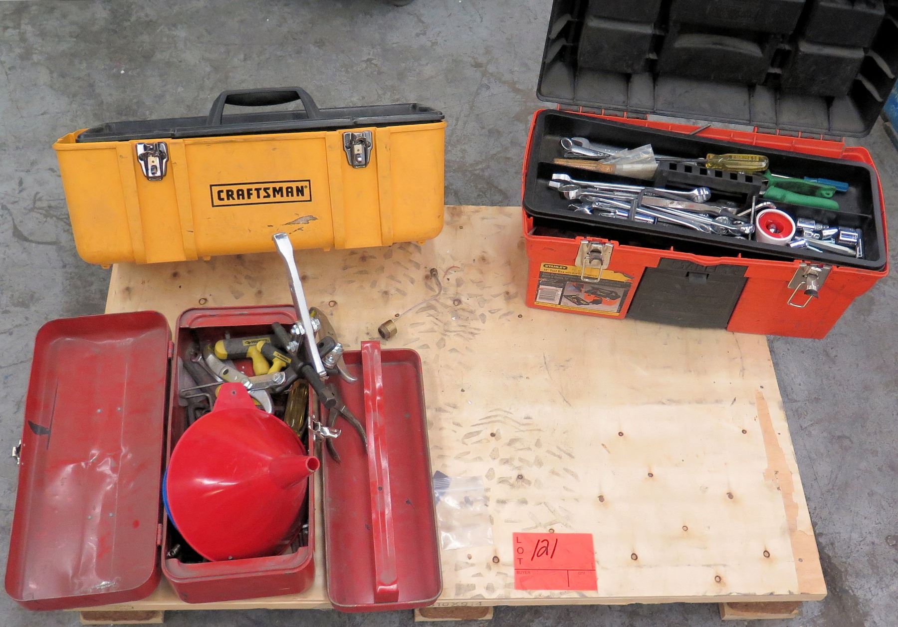Qty 3 Tool Boxes w/ Misc Tools - Socket Wrenches, Funnel, Misc Tools
