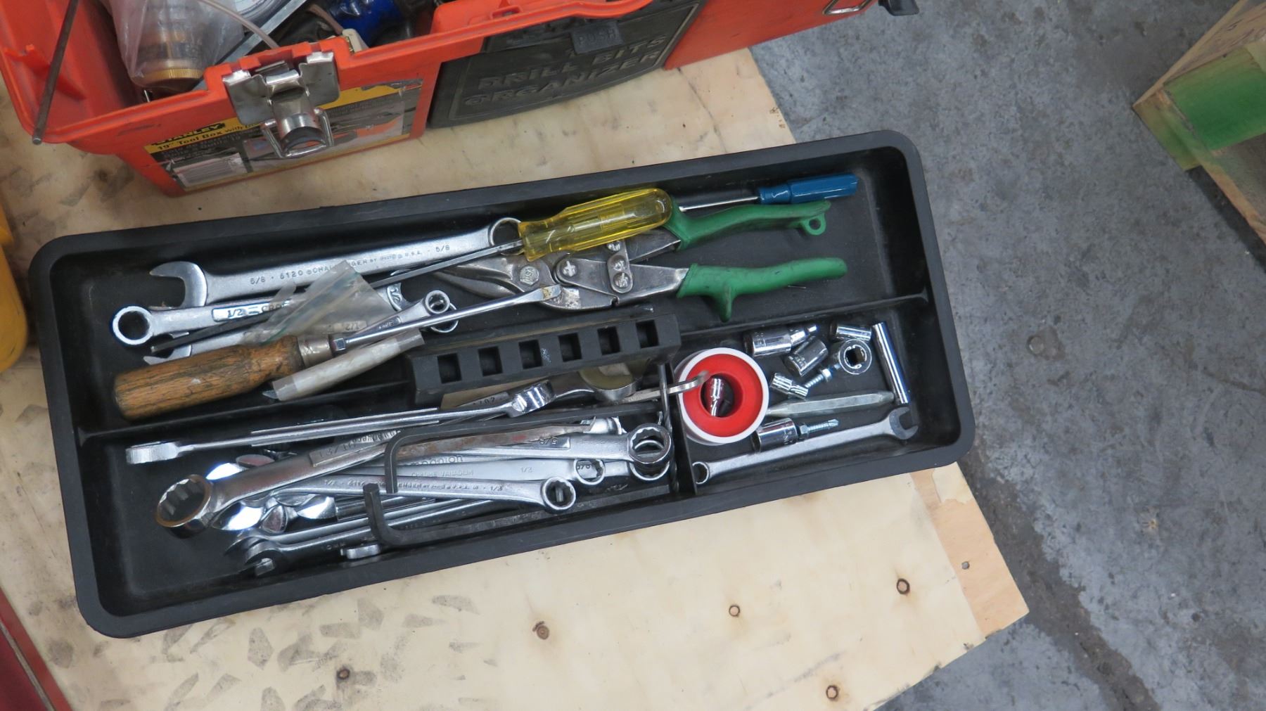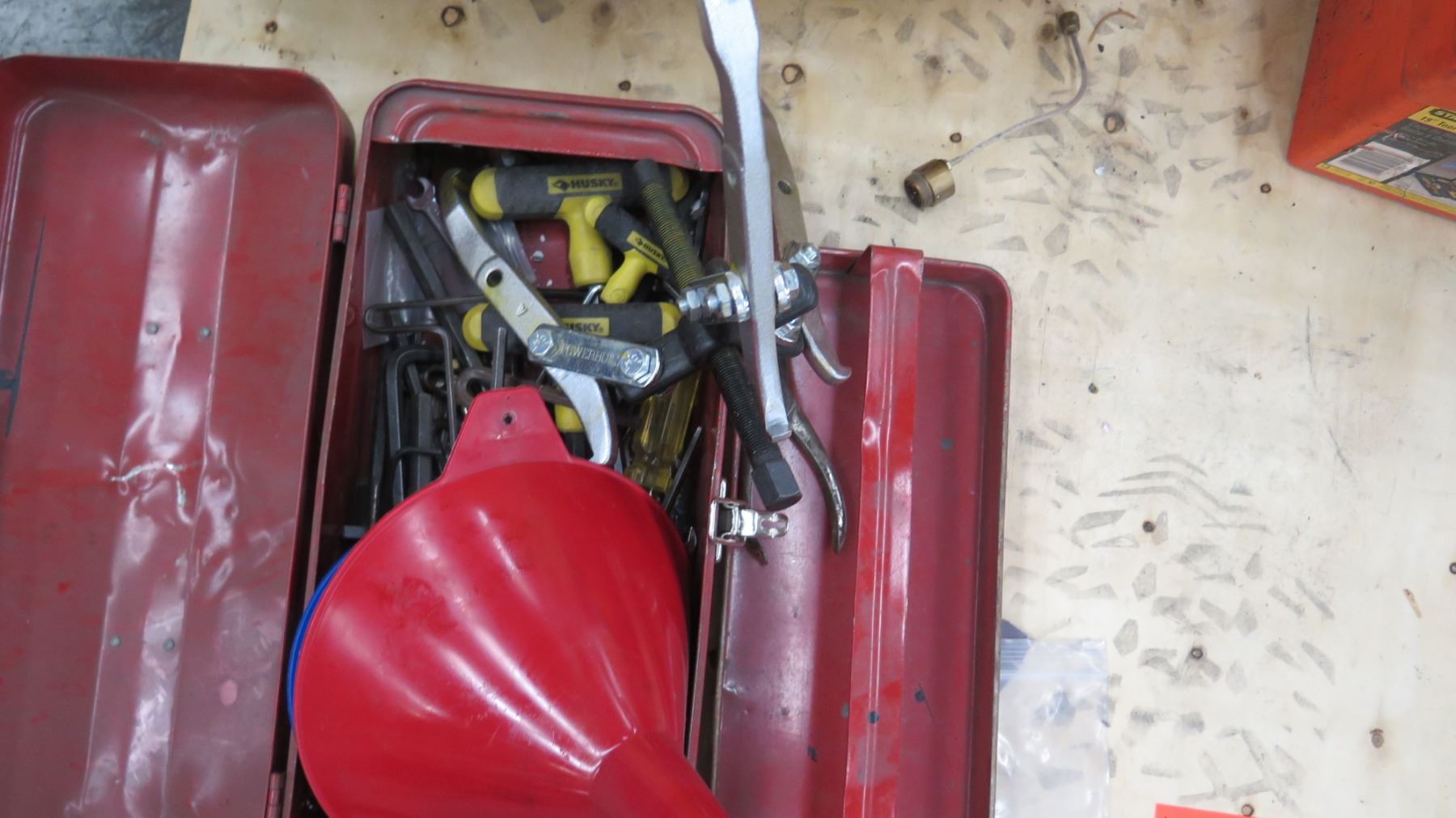 Qty 3 Tool Boxes w/ Misc Tools - Socket Wrenches, Funnel, Misc Tools (Missing Red Funnel)