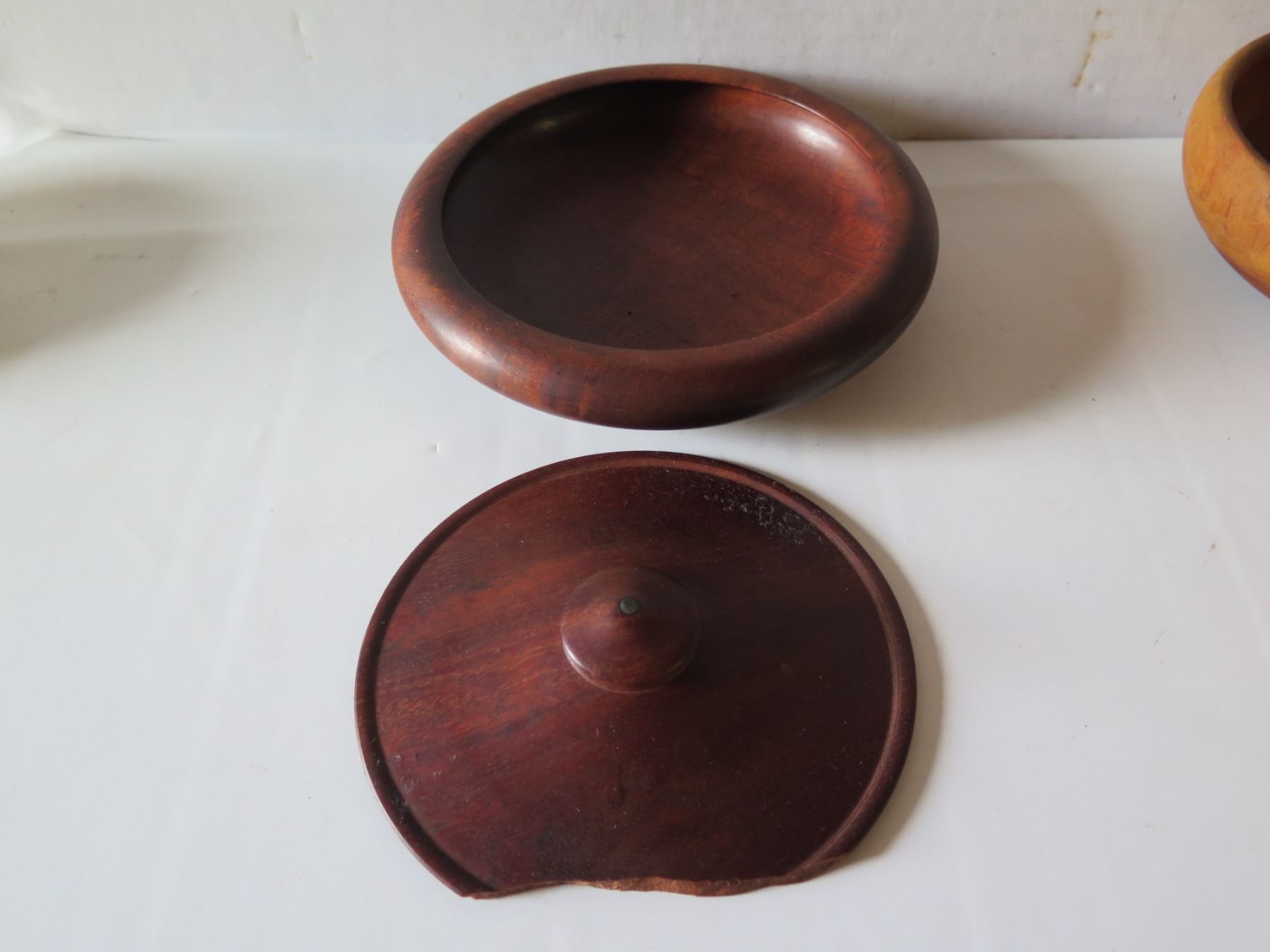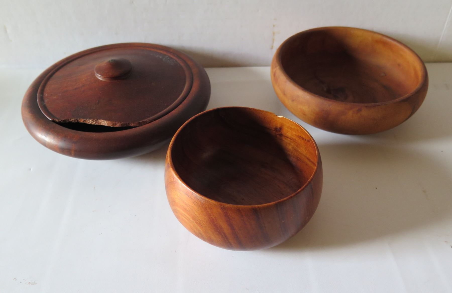 Qty 3 Turned Wooden Bowls, Lidded Kiawe Signed House of Kalai, Milo & Koa Signed Blair HI