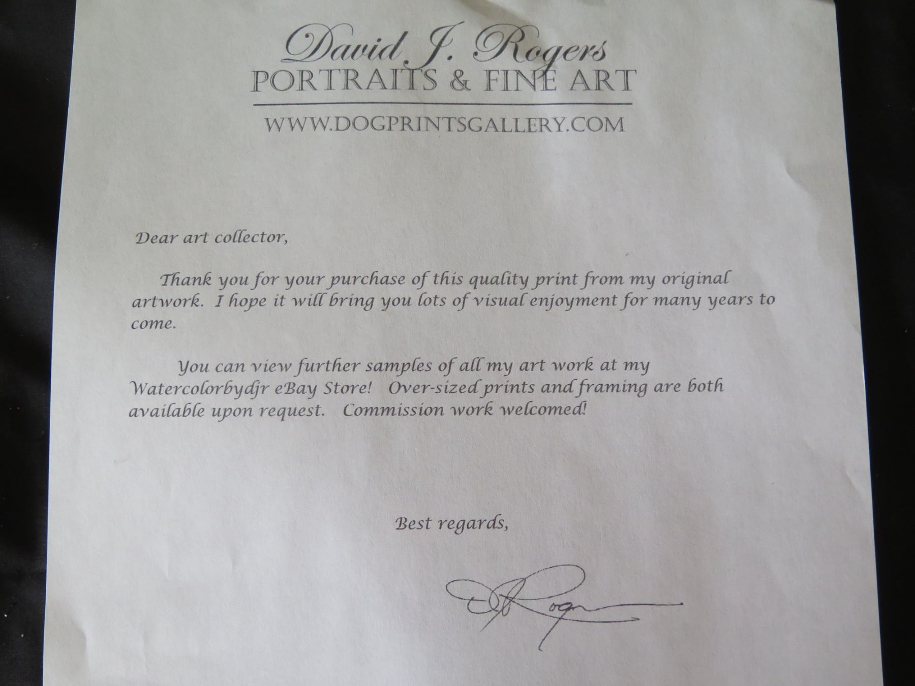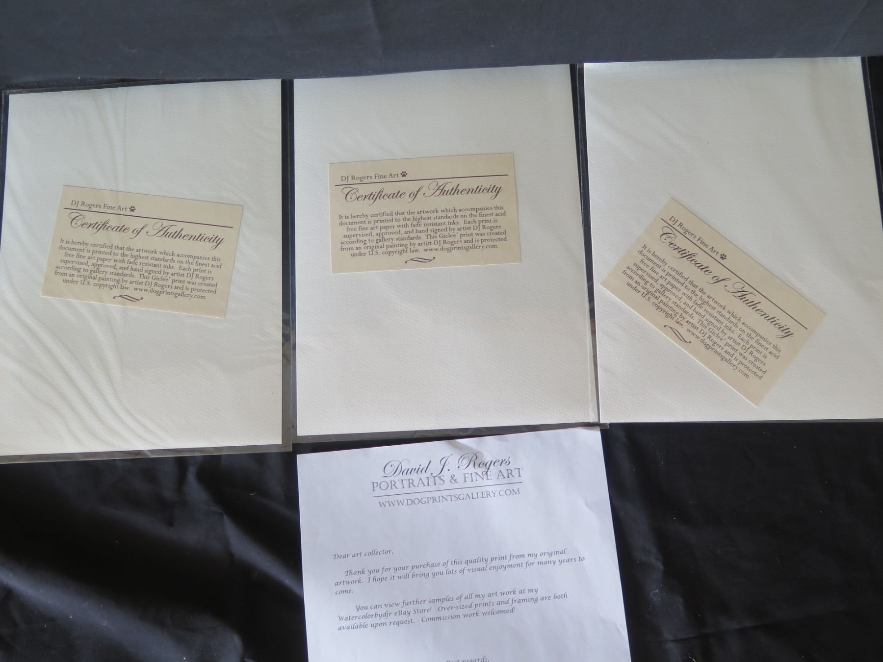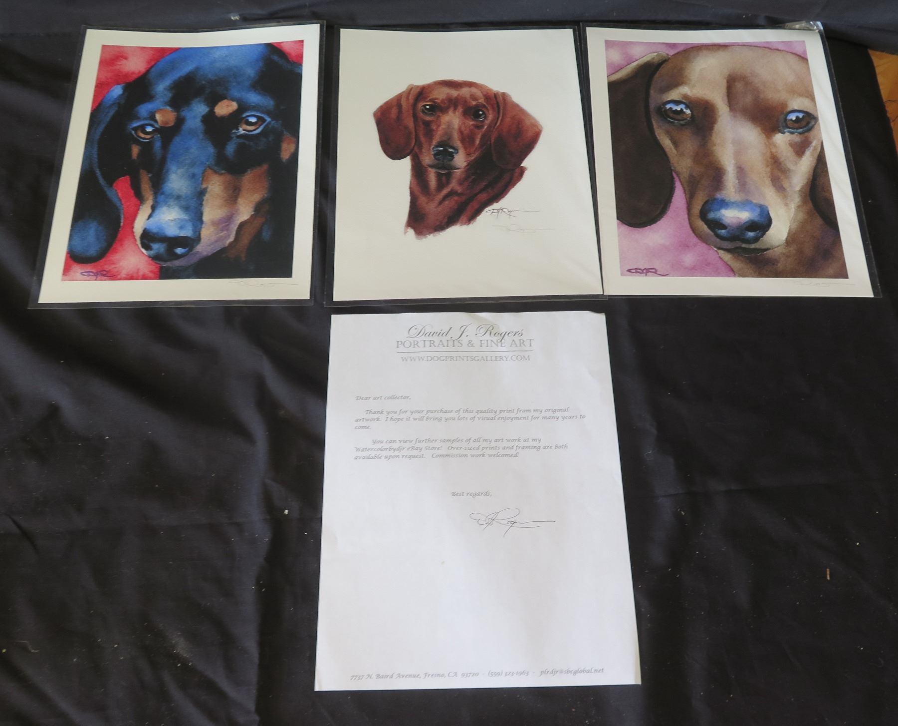 Qty 3 Unframed Dog Print w/ Letter from David J. Rogers & COA 9" x 11"