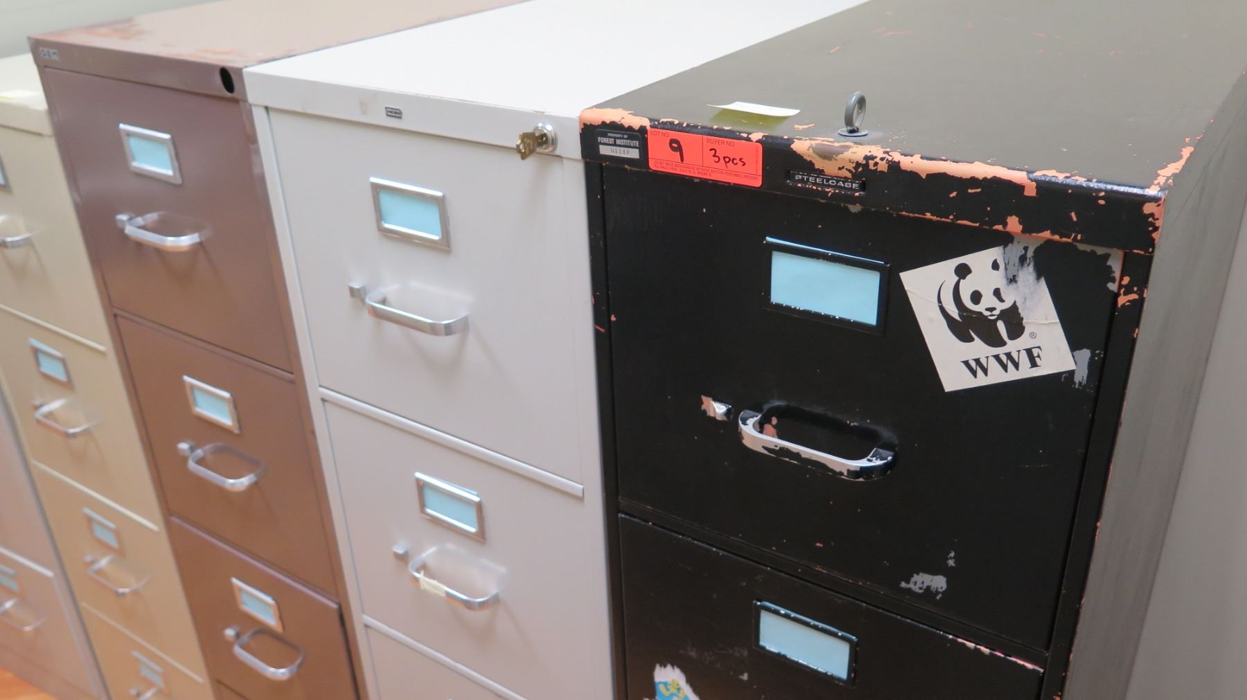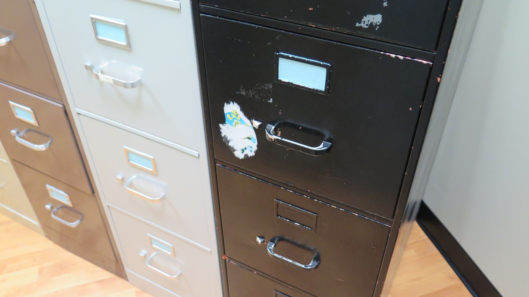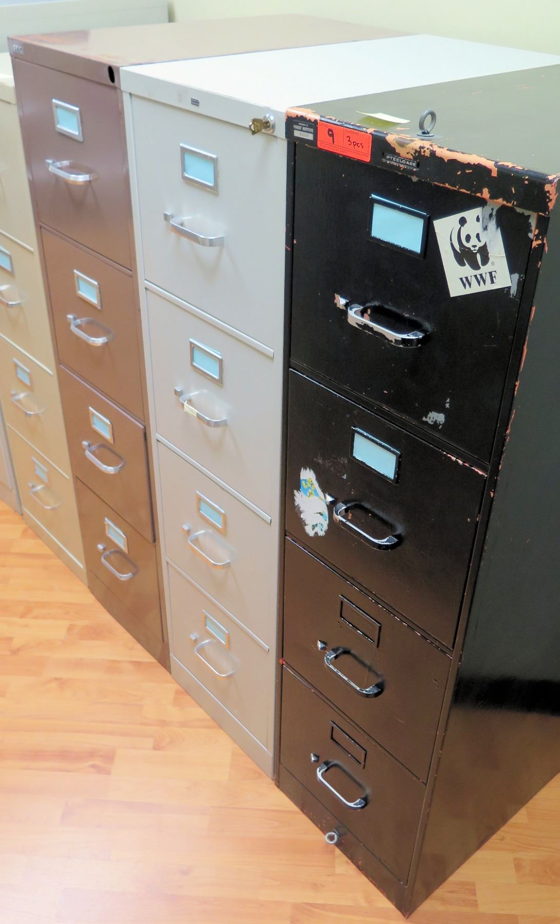 Qty 3 Vertical File Cabinets (HON, Steelcase), Black & Lt. Gray, Brown