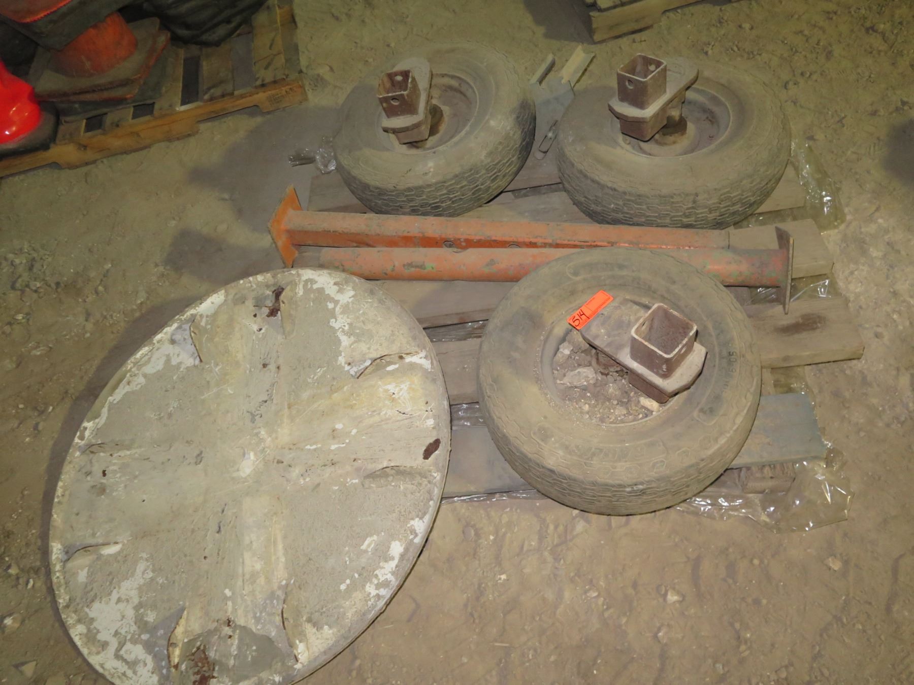 Qty 3 Wheels w/ Square Connectors, Square Pipe w/ Base, etc