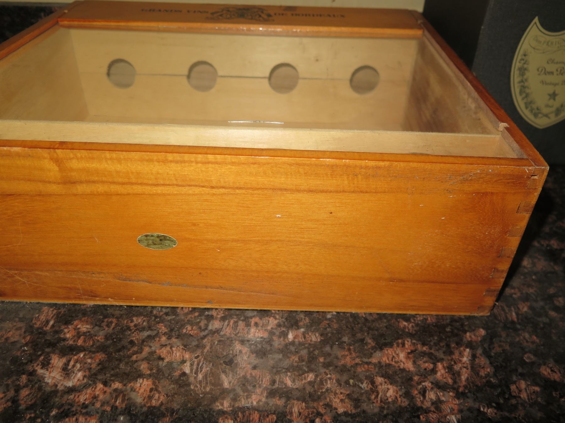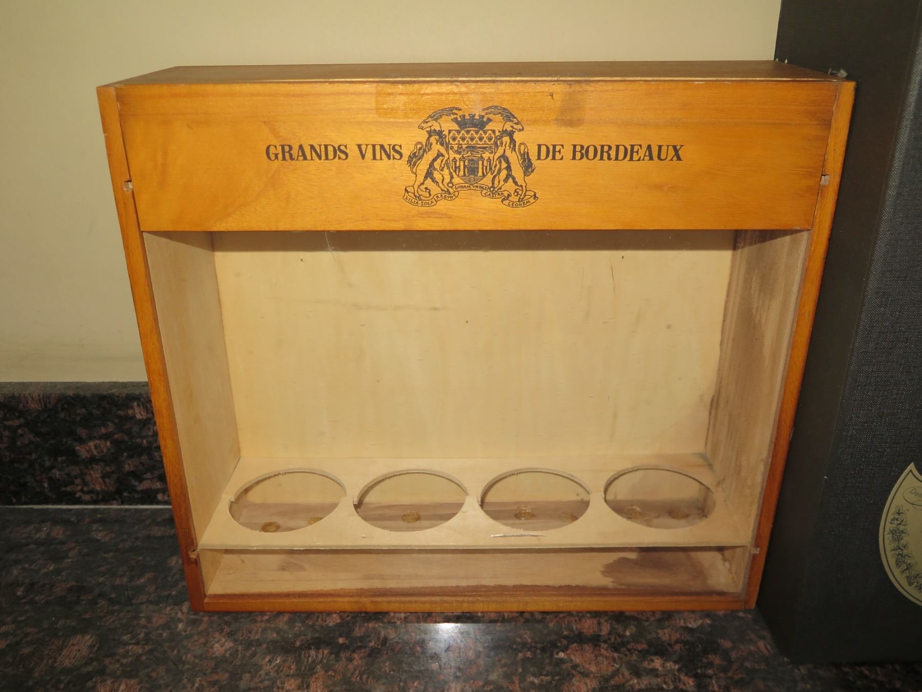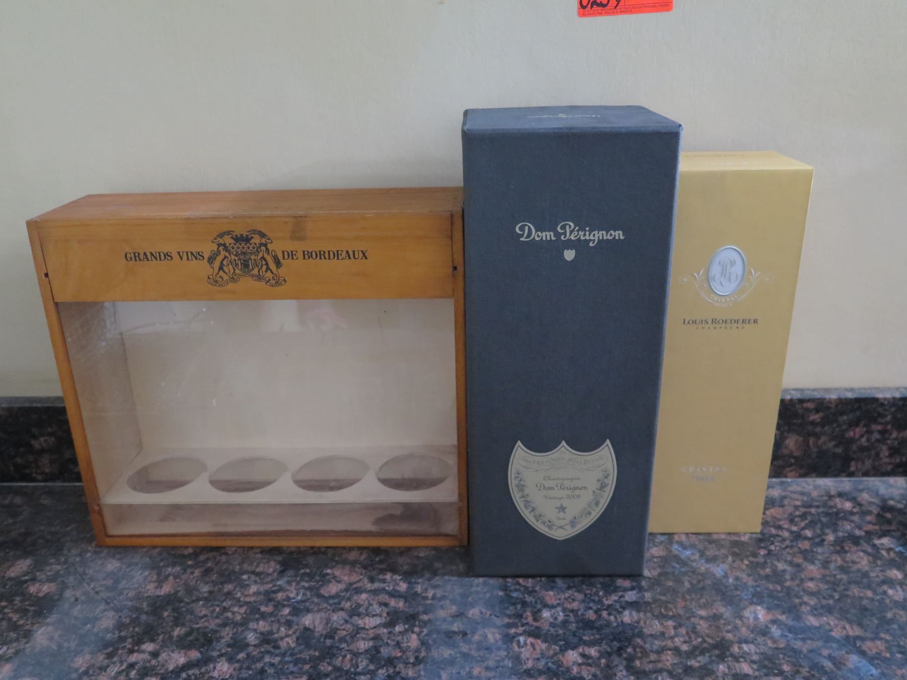 Qty 3 Wine & Liquor Boxes: Grand Vins de Bordeaux, Dom Perignon & Cristal (empty)