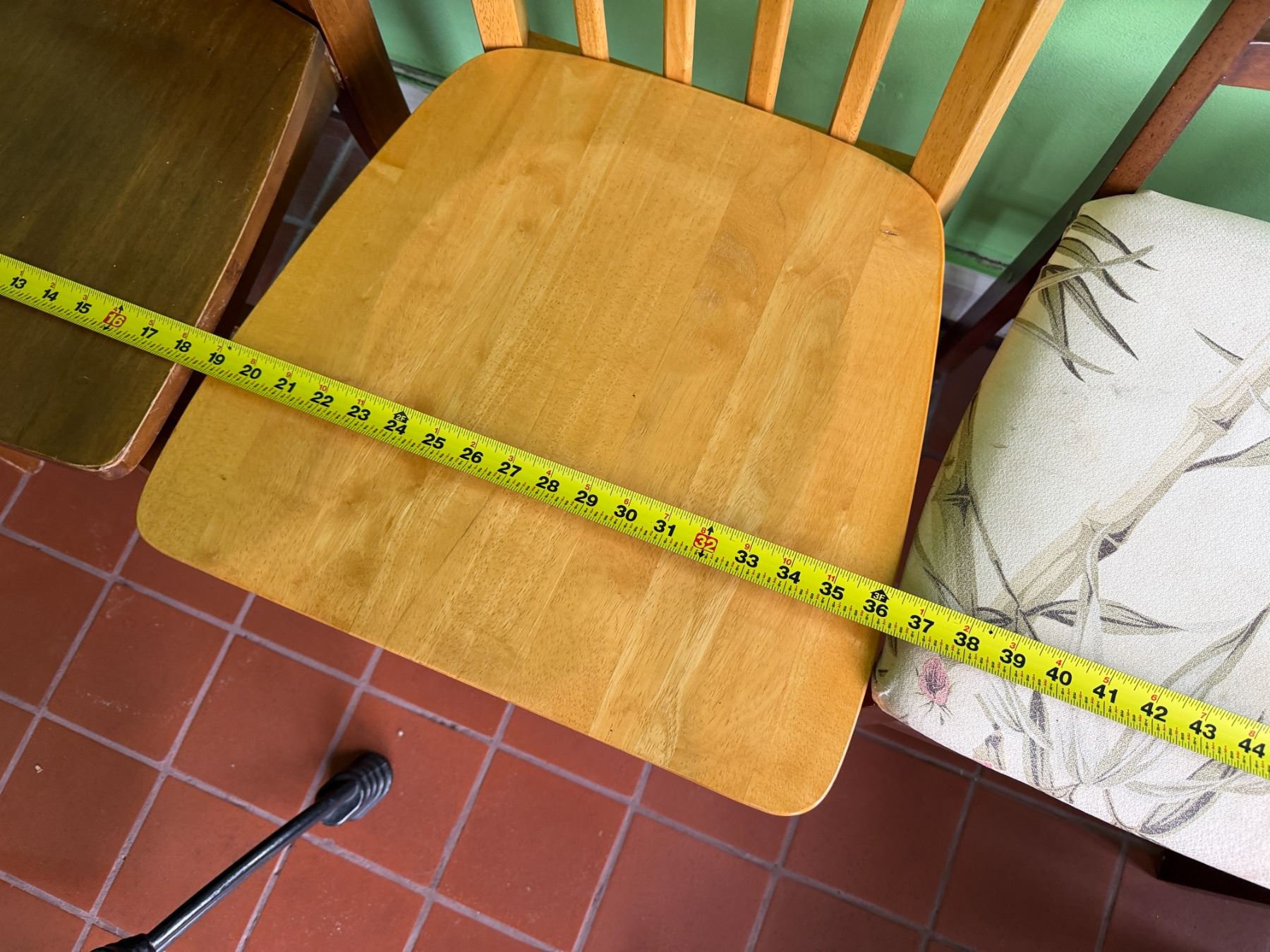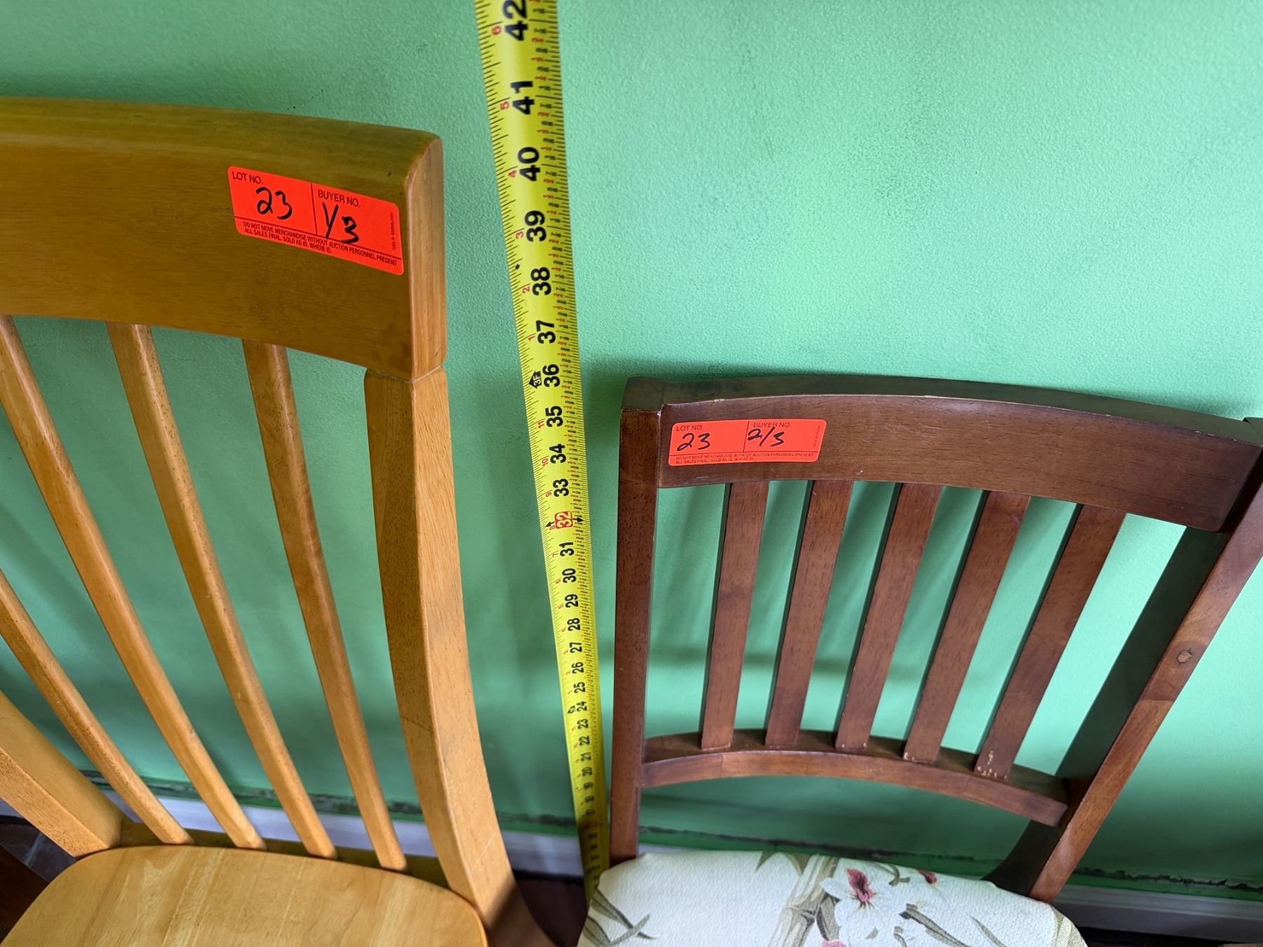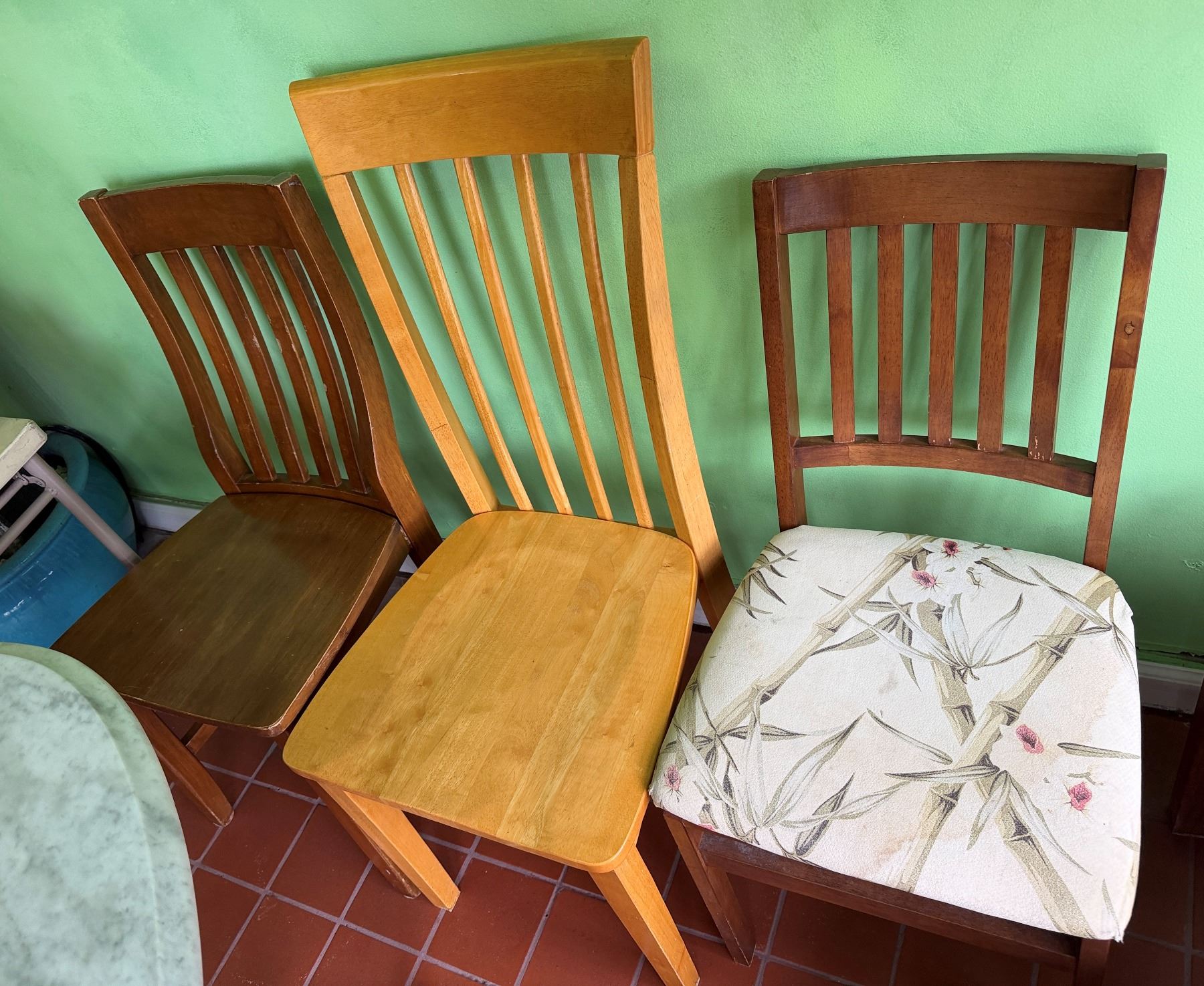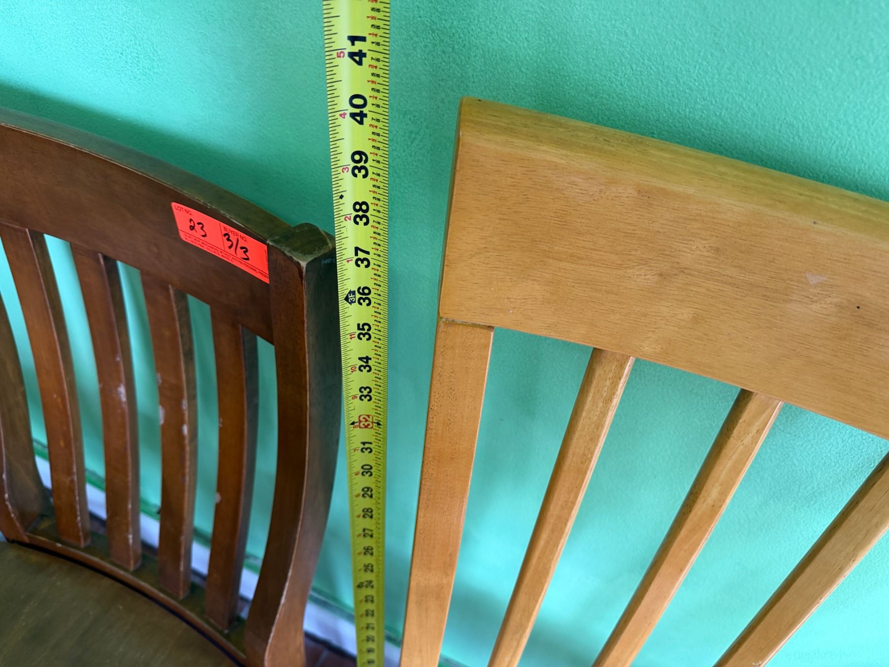 Qty 3 Wooden Chairs w/ Slatted Backs, Misc Sizes