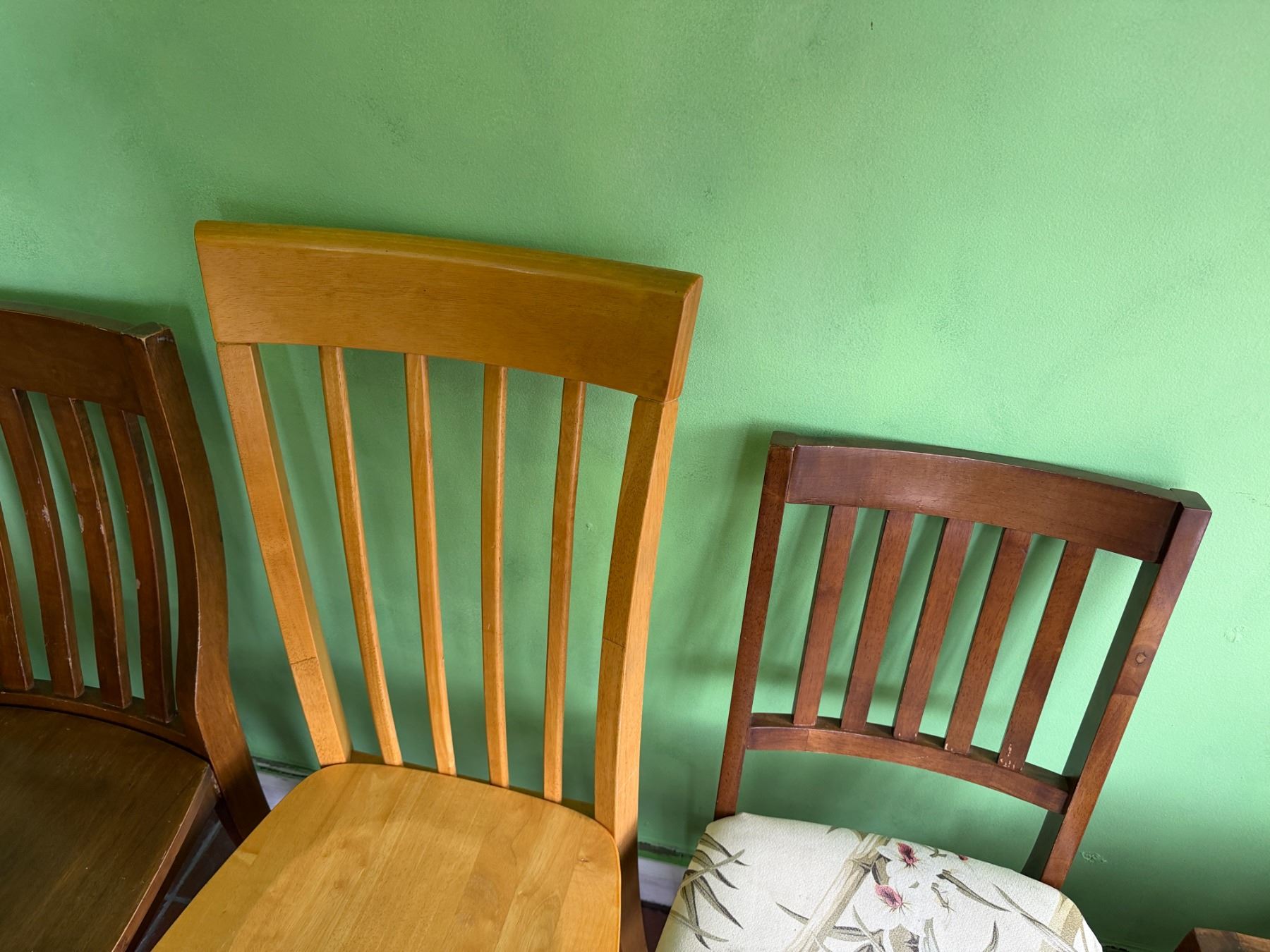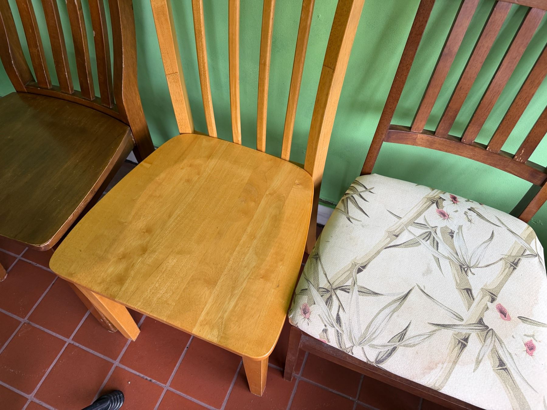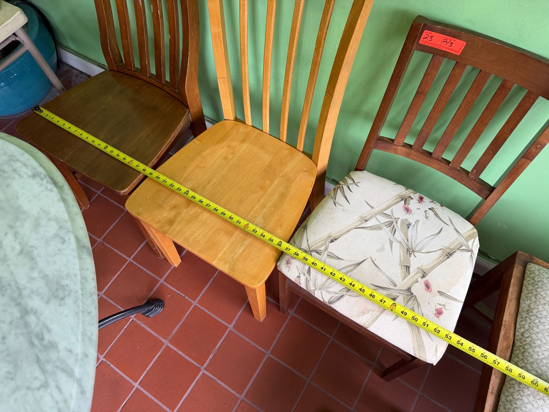 Qty 3 Wooden Chairs w/ Slatted Backs, Misc Sizes