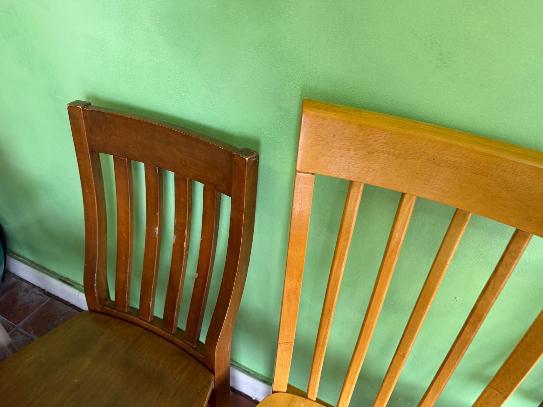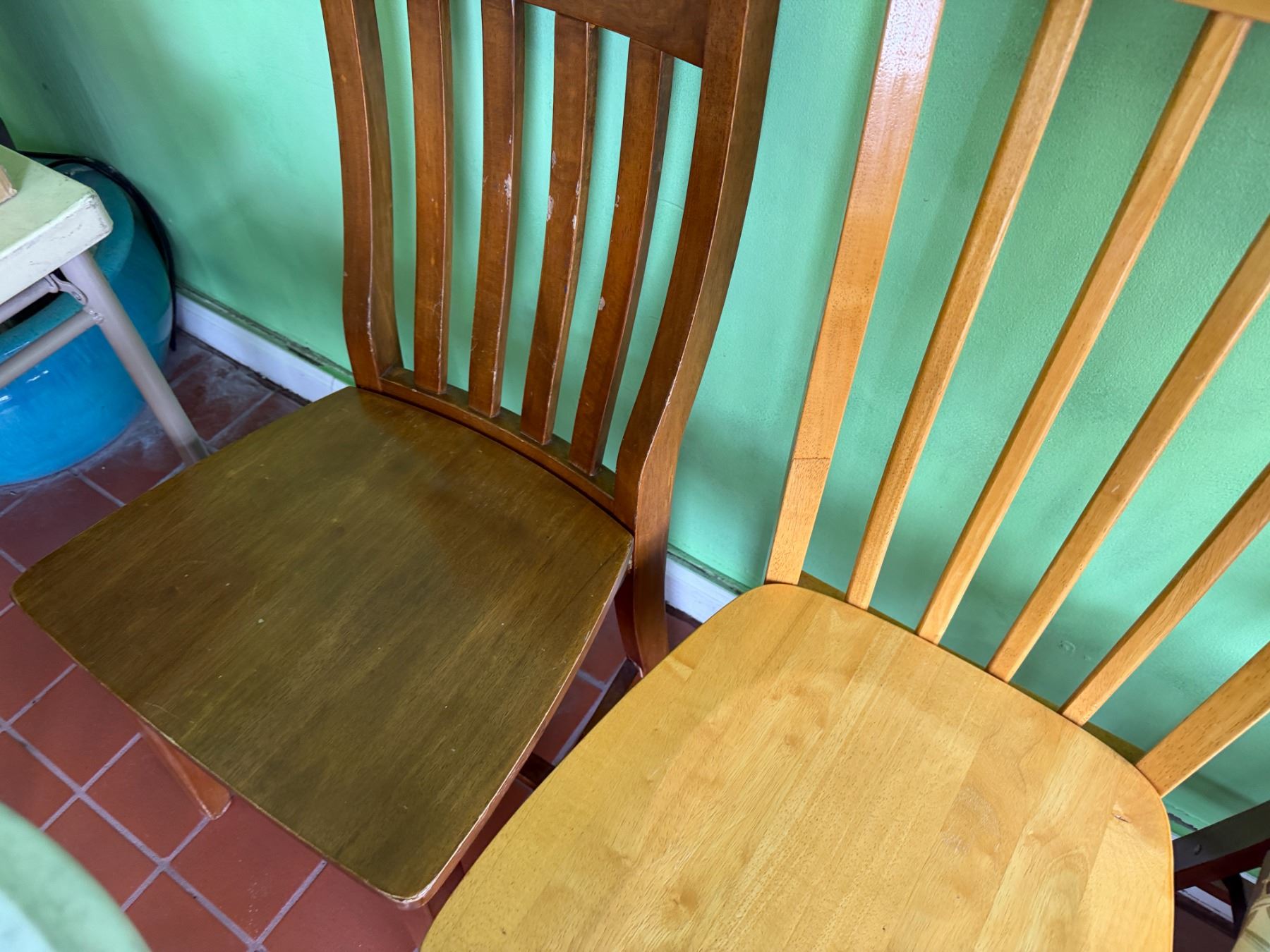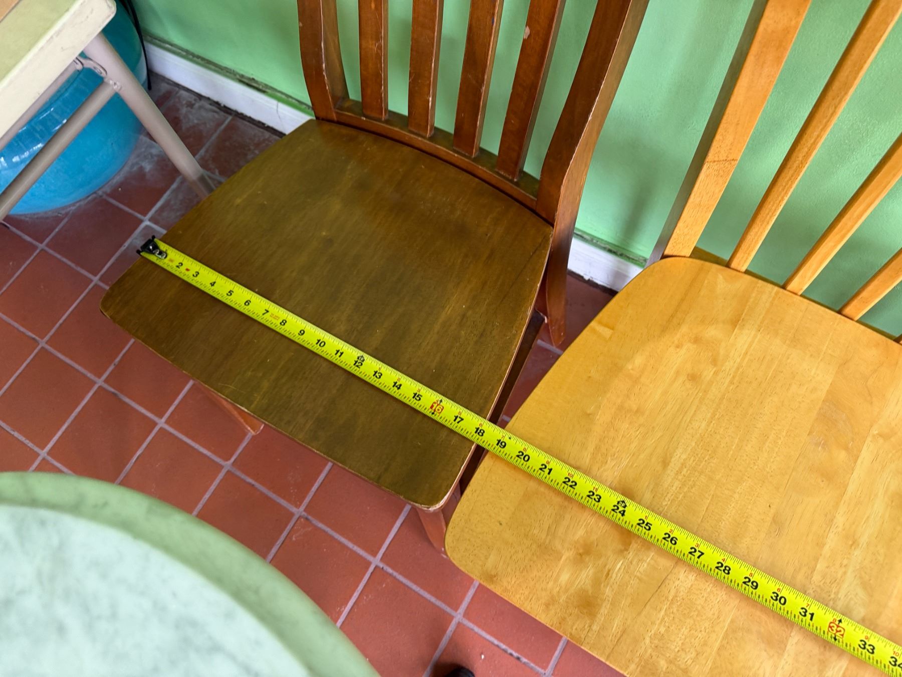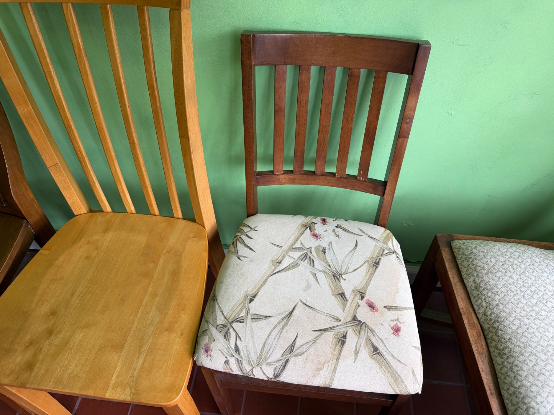 Qty 3 Wooden Chairs w/ Slatted Backs, Misc Sizes