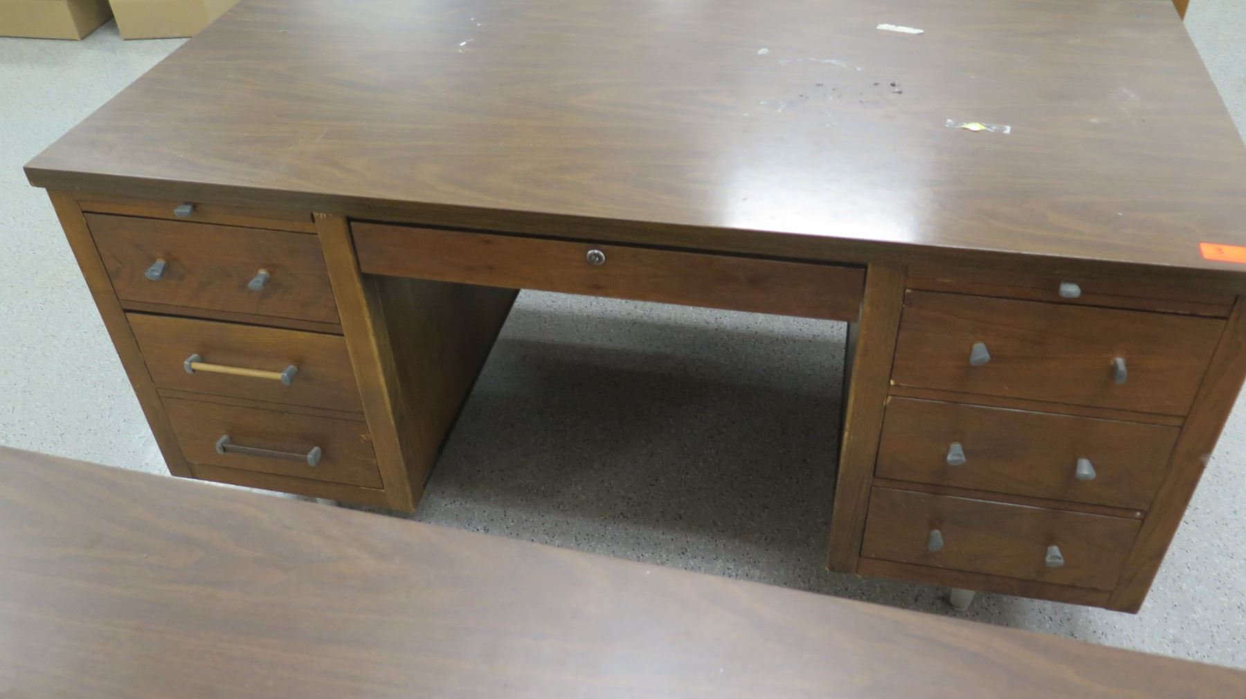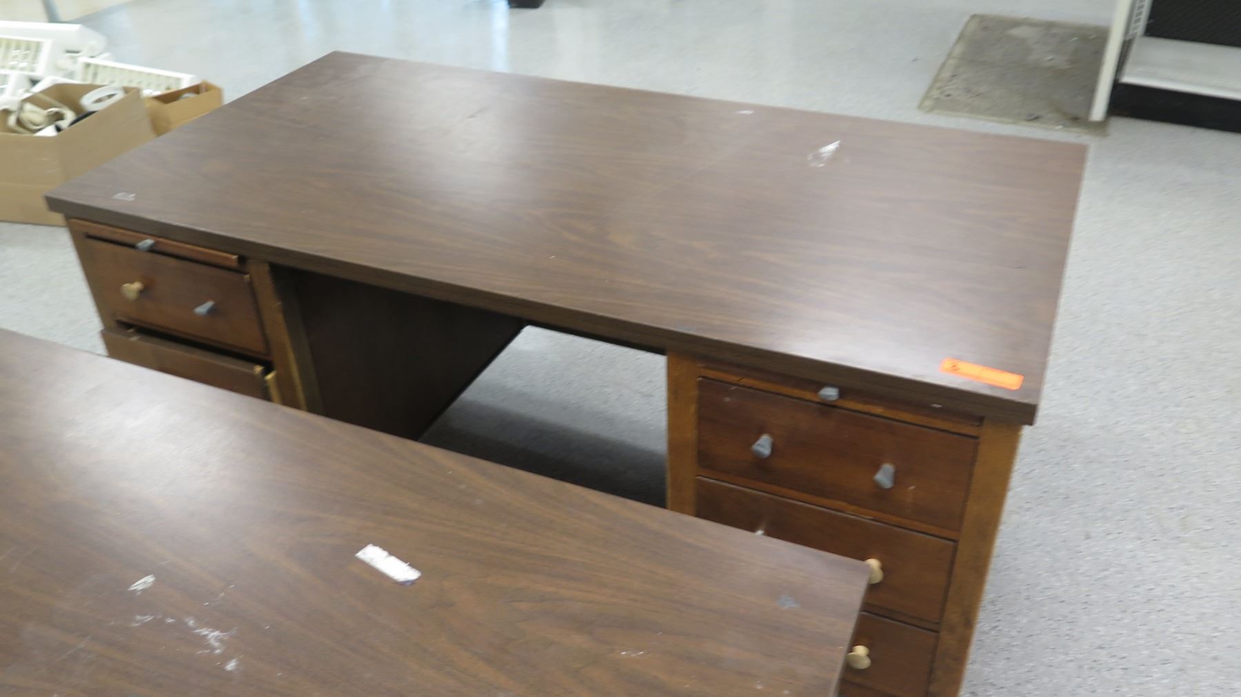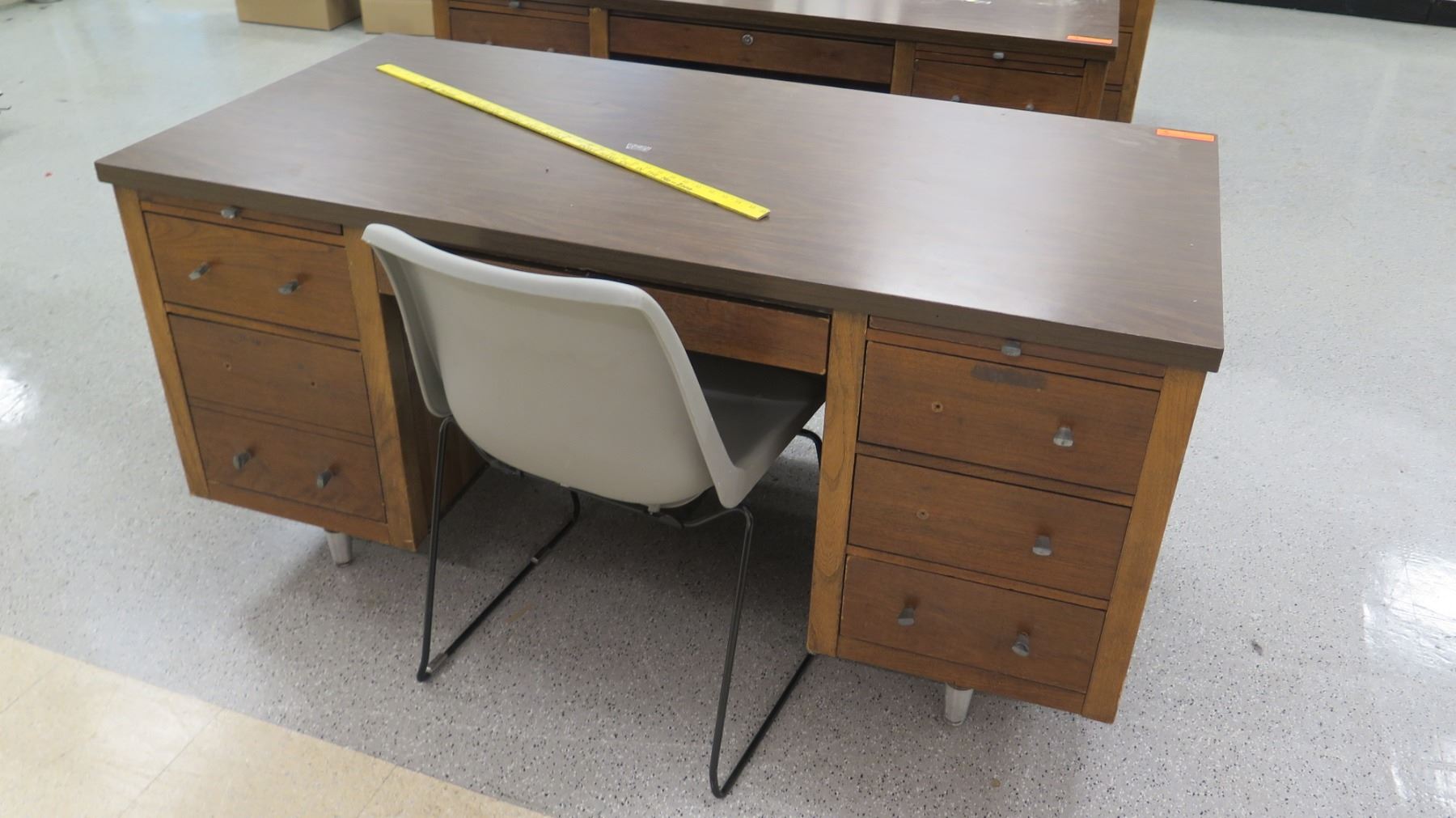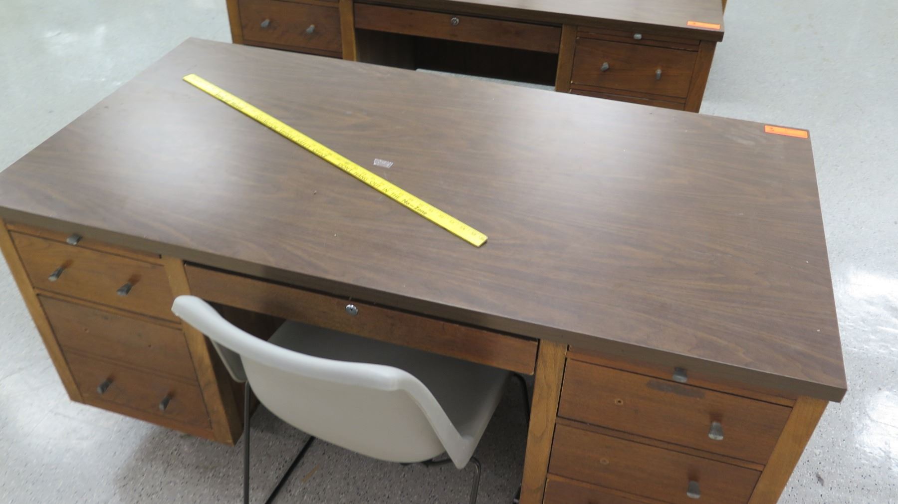 Qty 3 Wooden Desks w/ File Drawers & 1 Chair