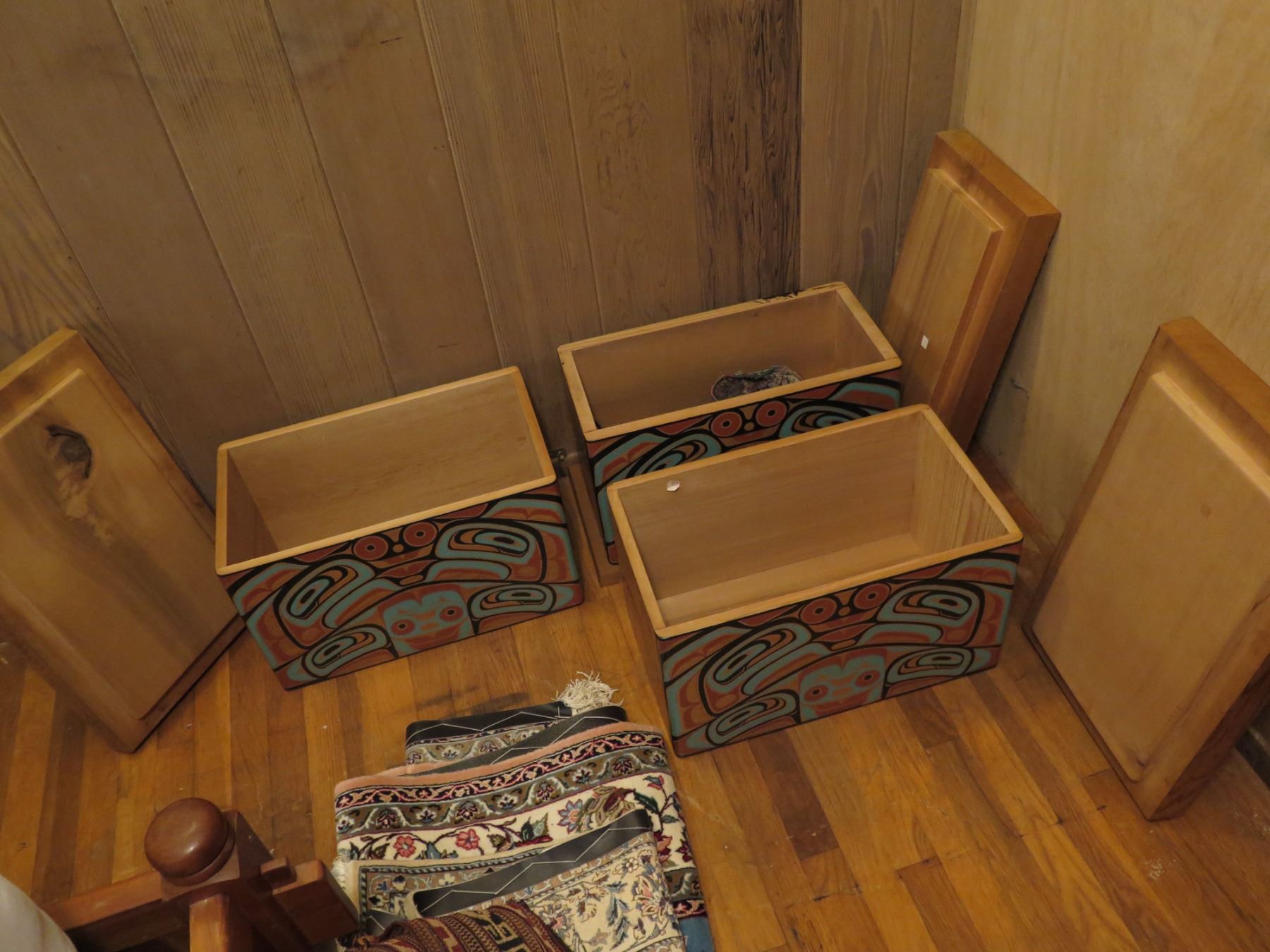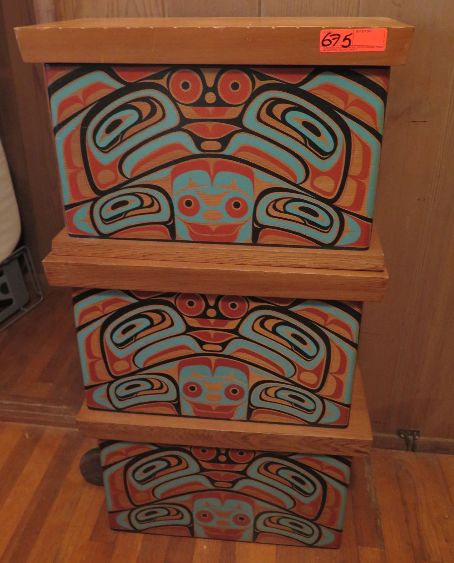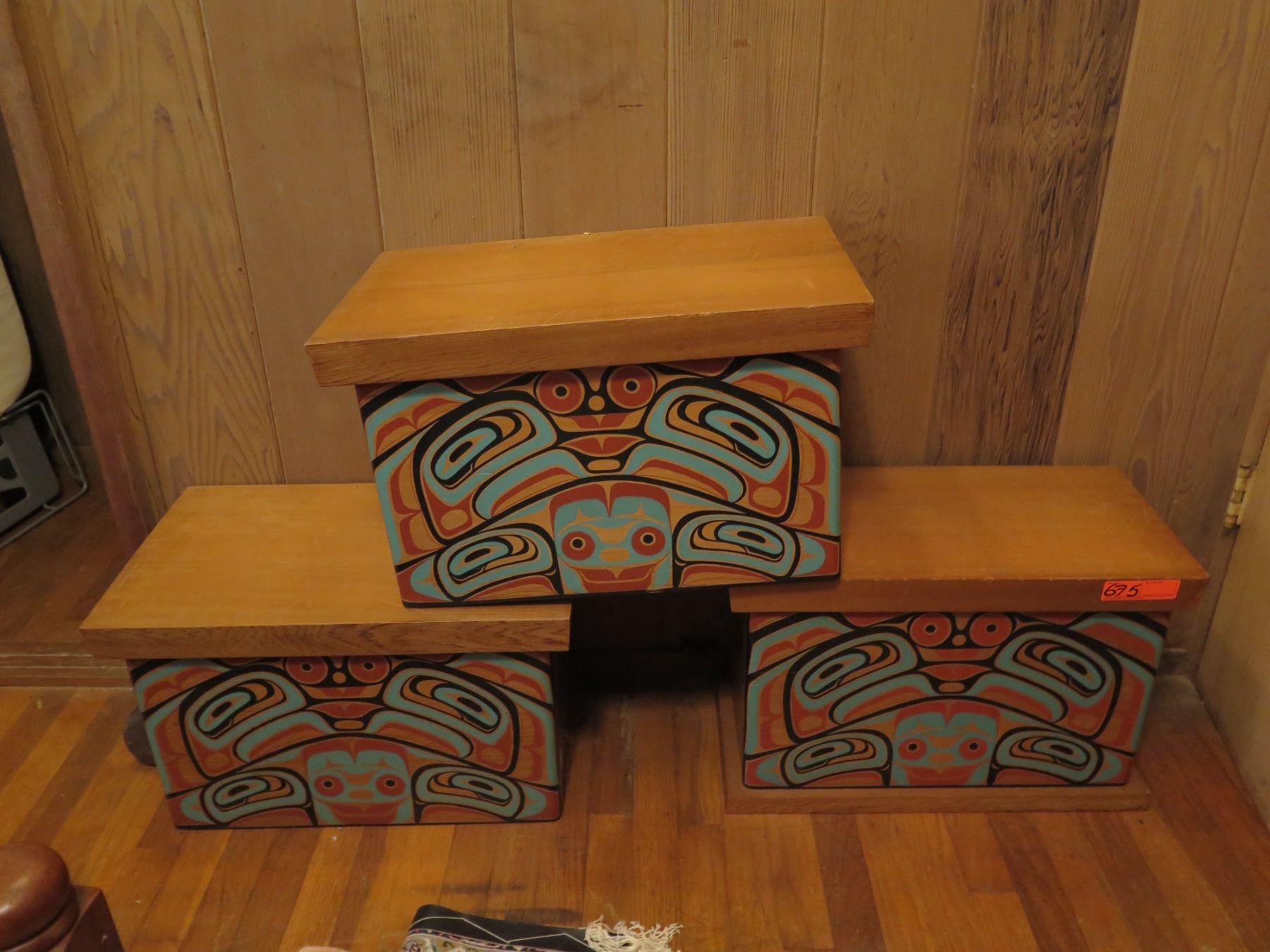 Qty 3 Wooden Stacking Boxes, Cedar Painted Designs, Standing Bear Walking 1993