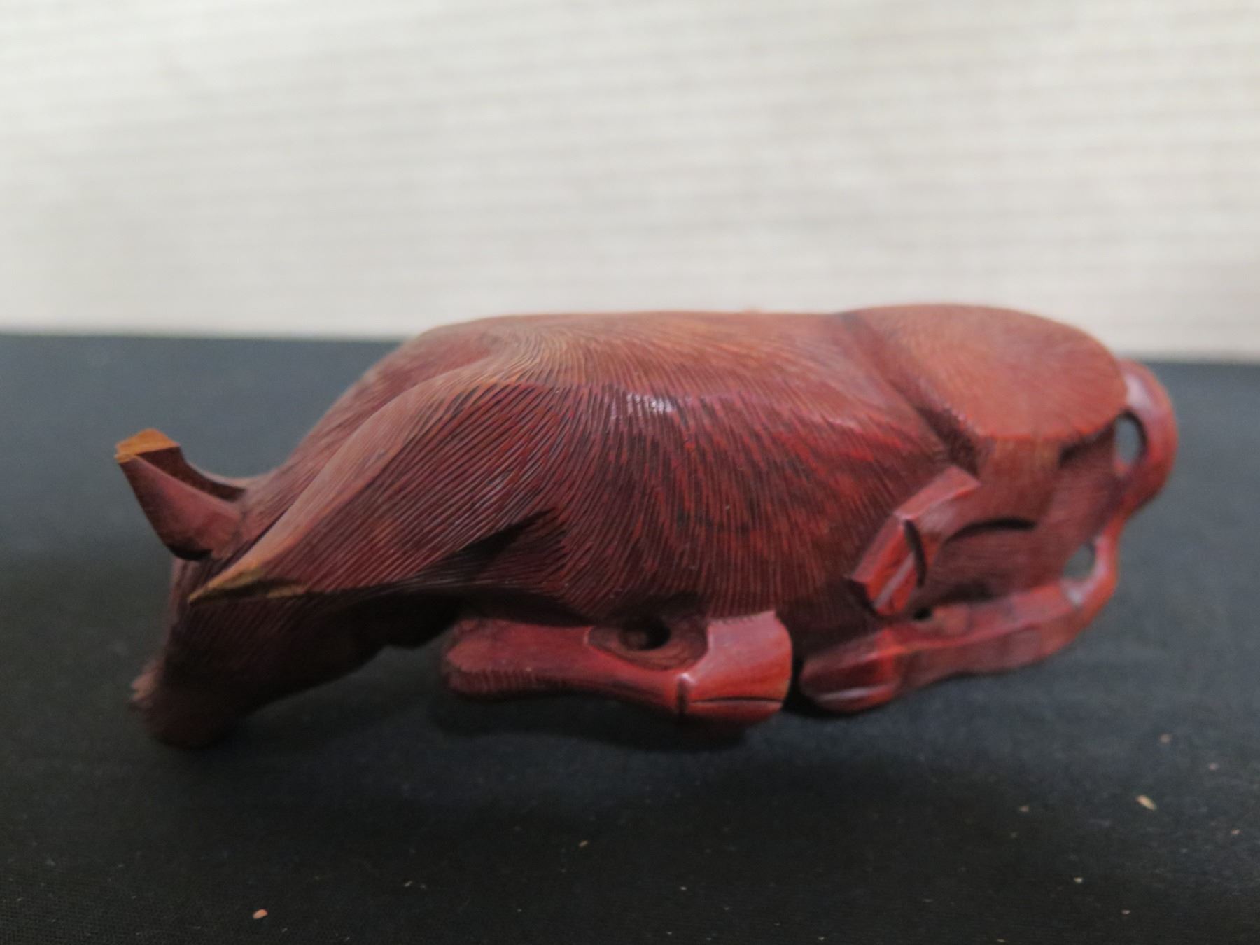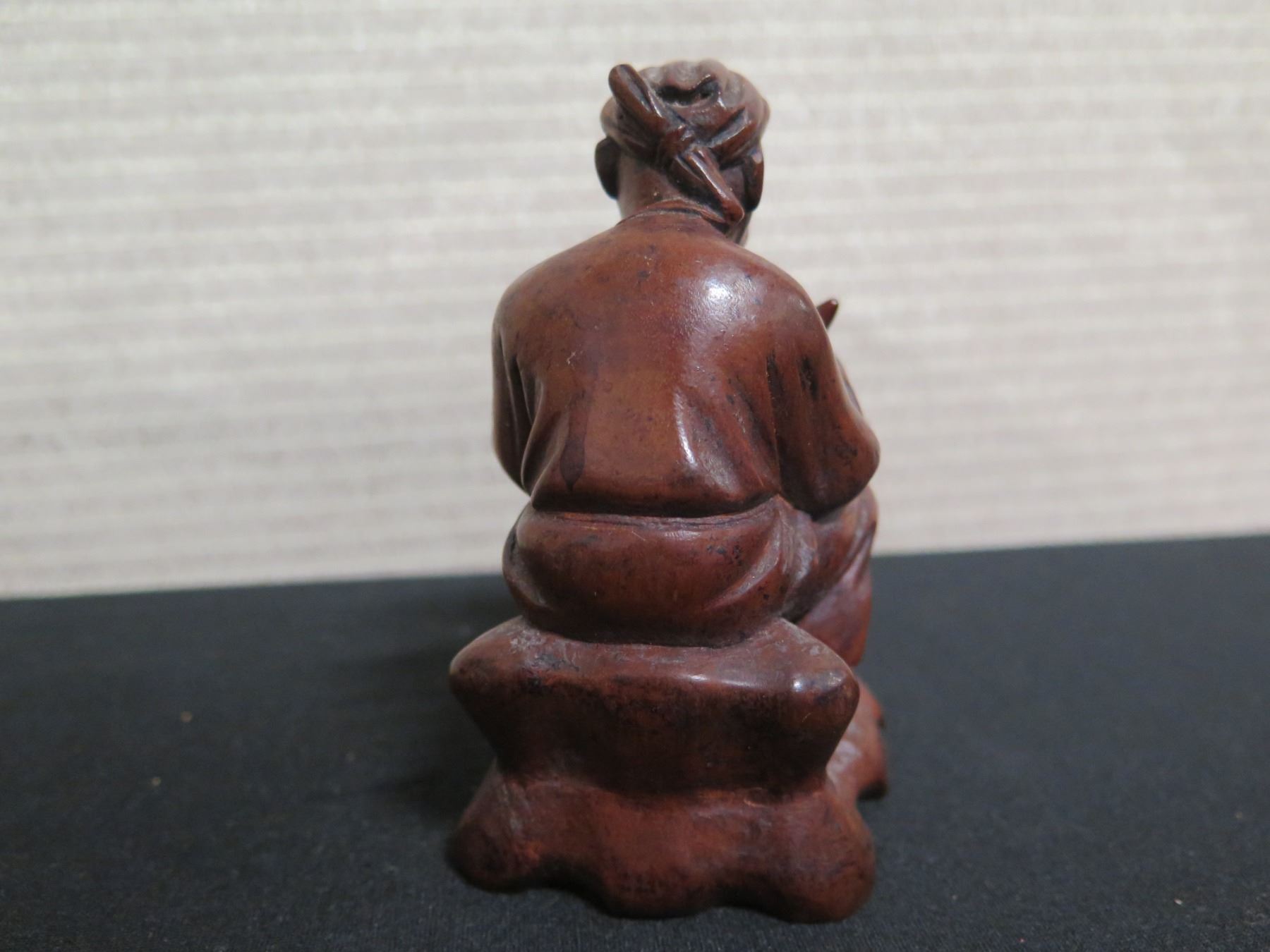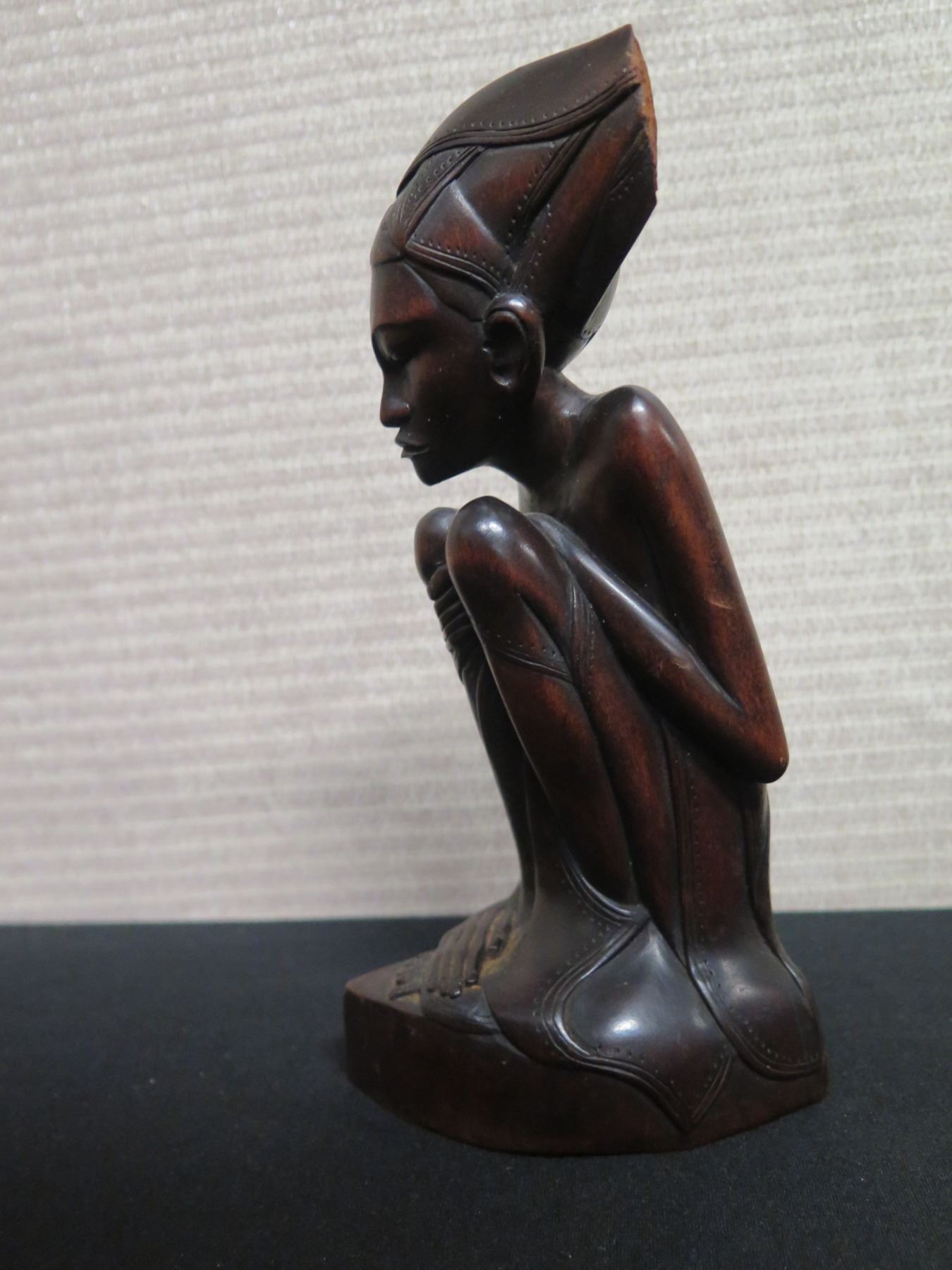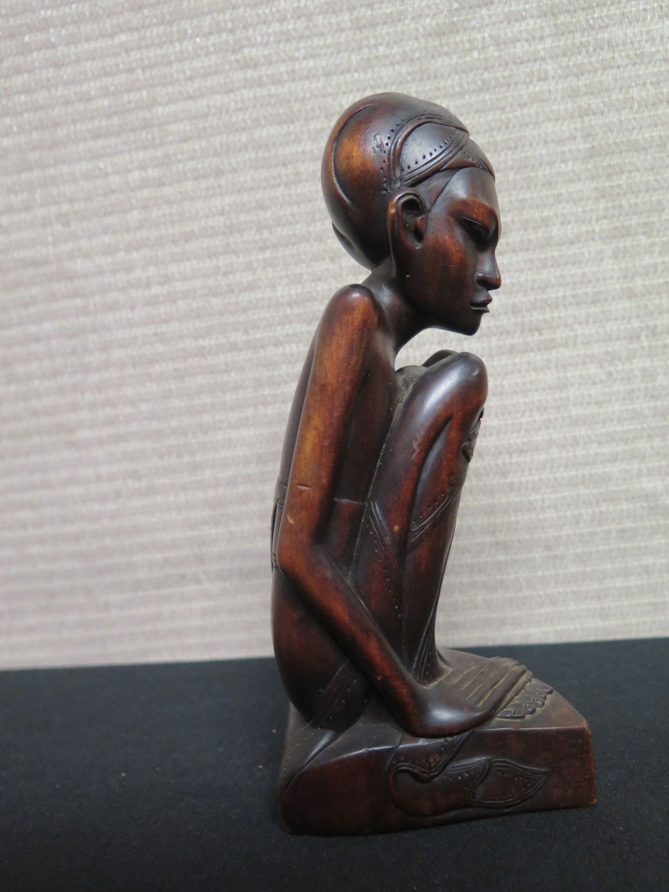 Qty 3 Wooden Statues: Seated Man Reading, Woman & Men on an Ox