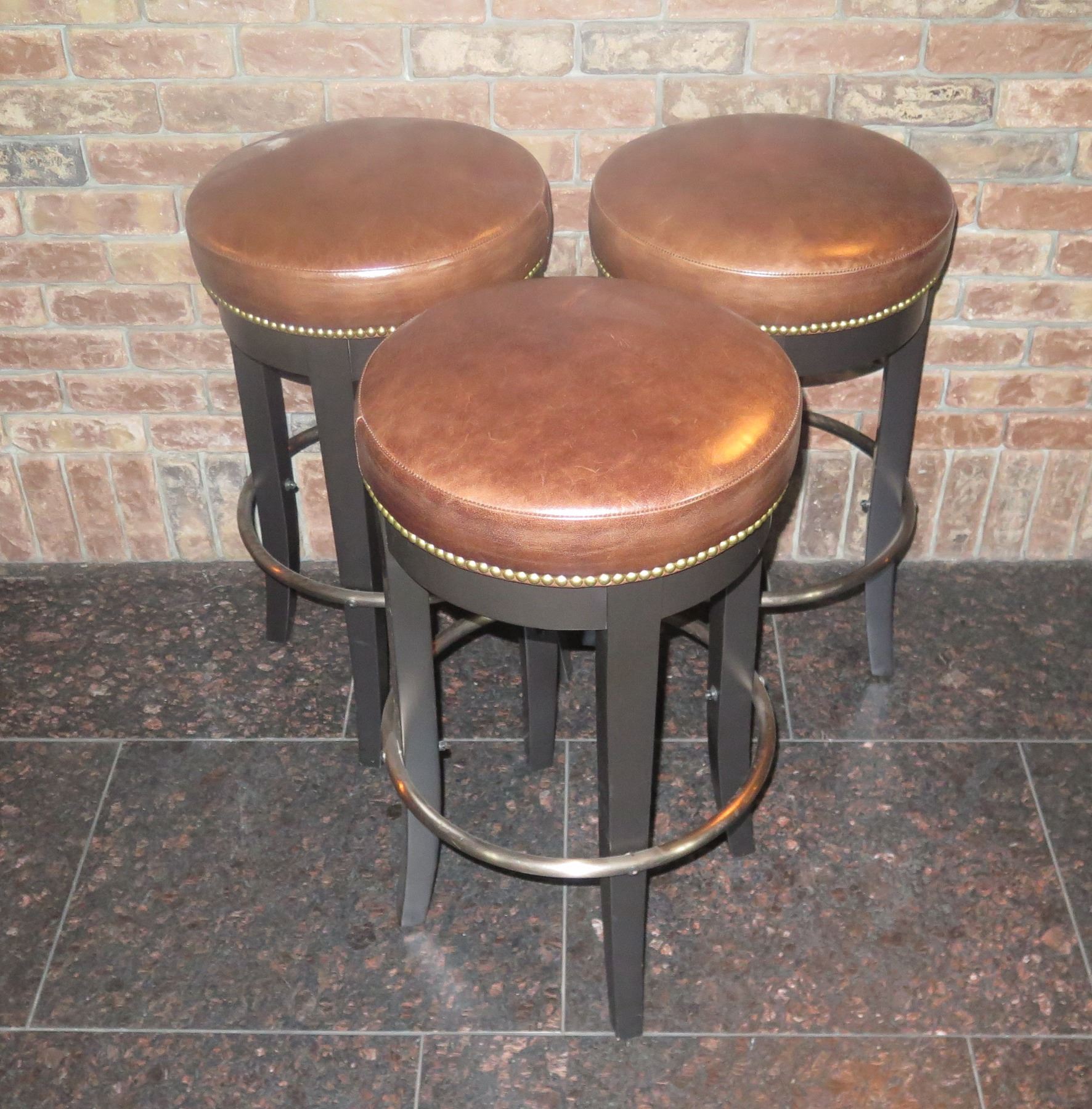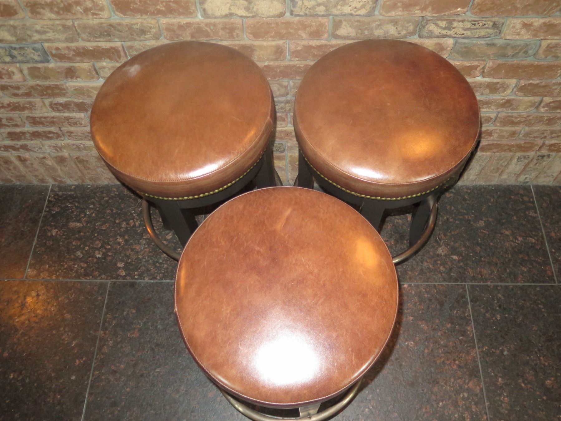 Qty 3 Wooden Upholstered Round Stools 16"dia, 29"H