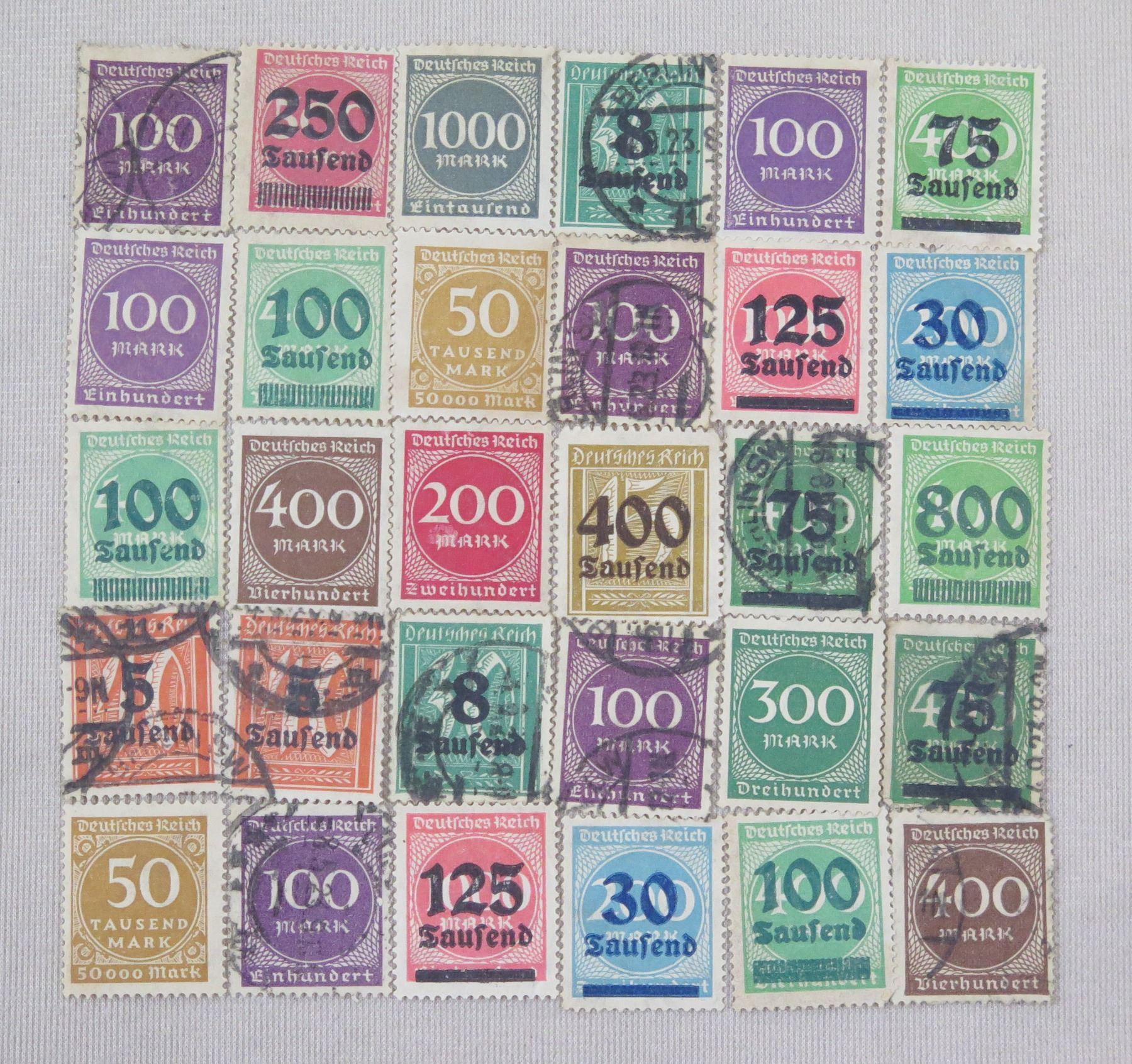 Qty 30 Deutsche Reich Einbundert Stamps, Misc Denominations