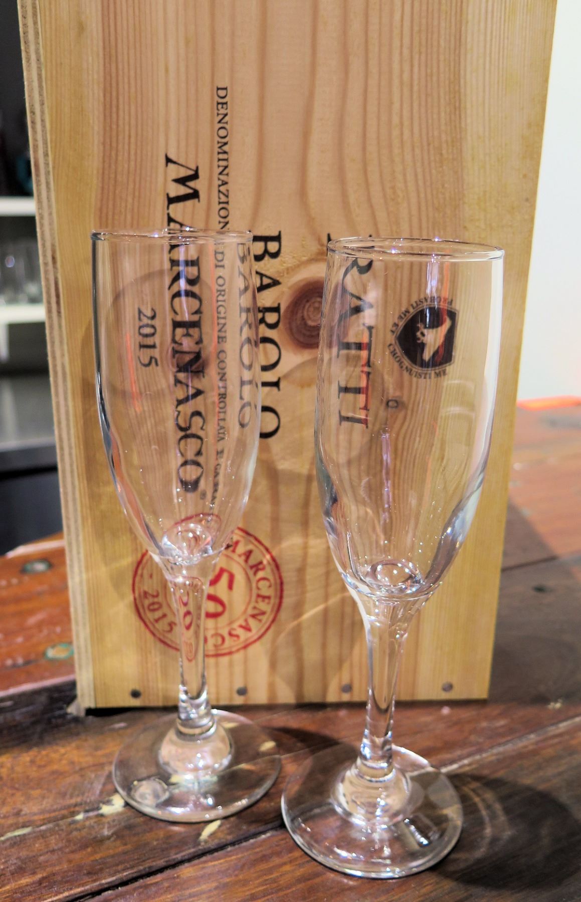 Qty 30 Flute Glasses. Glasses are not ready for transport. Please bring your own packaging materials, boxes, bags, tape, etc.