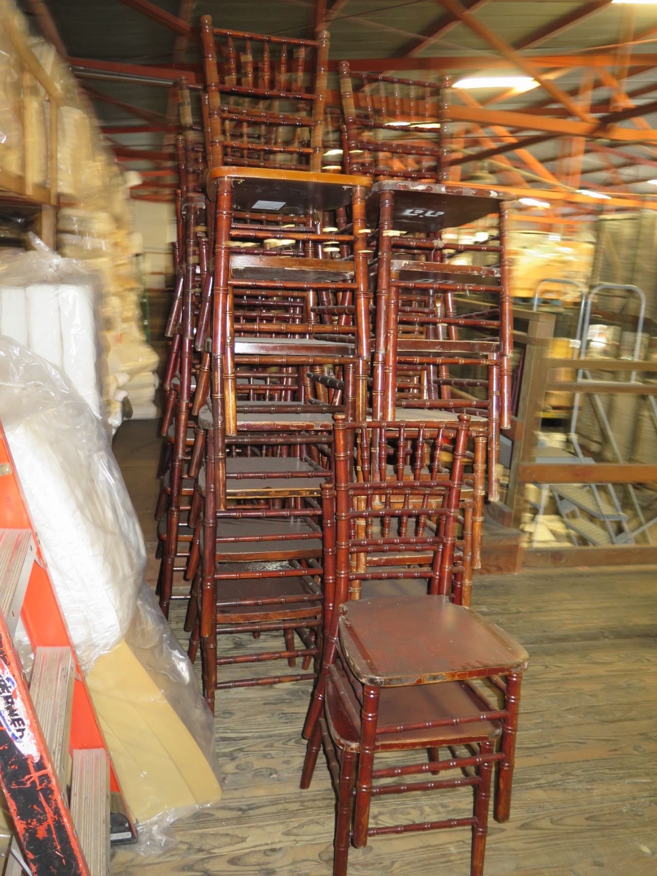 Qty 30 Mahogany Colored Chivari Chairs 16" Diameter x 36"Ht.