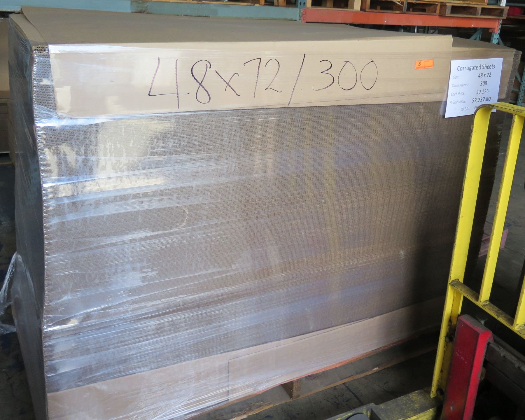 Qty 300 Corrugated Flat Sheets 48"x72" Retail $2737
