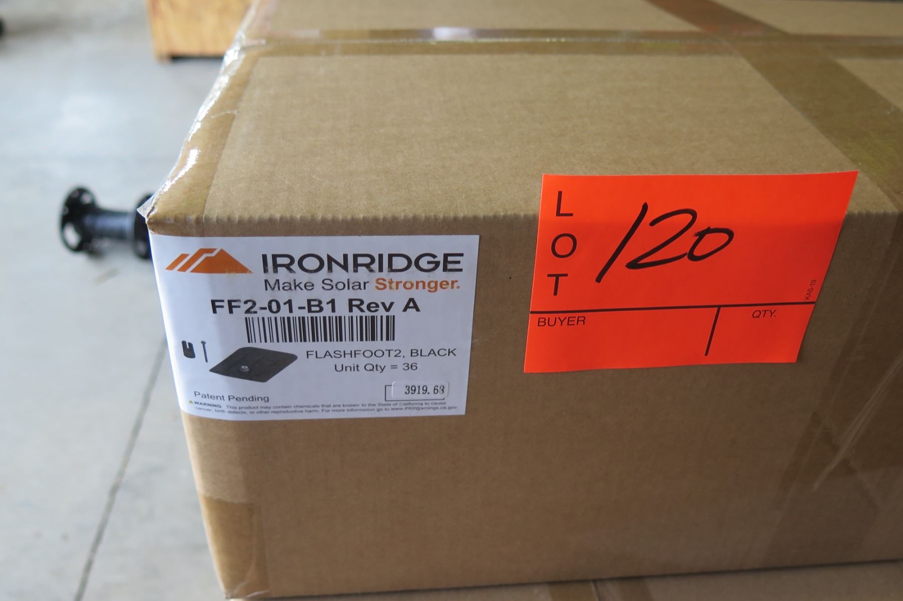 Each item sells on eBay for $22.67. There are 36 in this box ( for total $816). https://www.ebay.com/itm/IronRidge-FlashFoot2-FF2-01-M1-FF2-01-B1-Black-Milled-Clear-Milled/223582573543?hash=item340e8f53e7:g:wI8AAOSw69ddJoSX