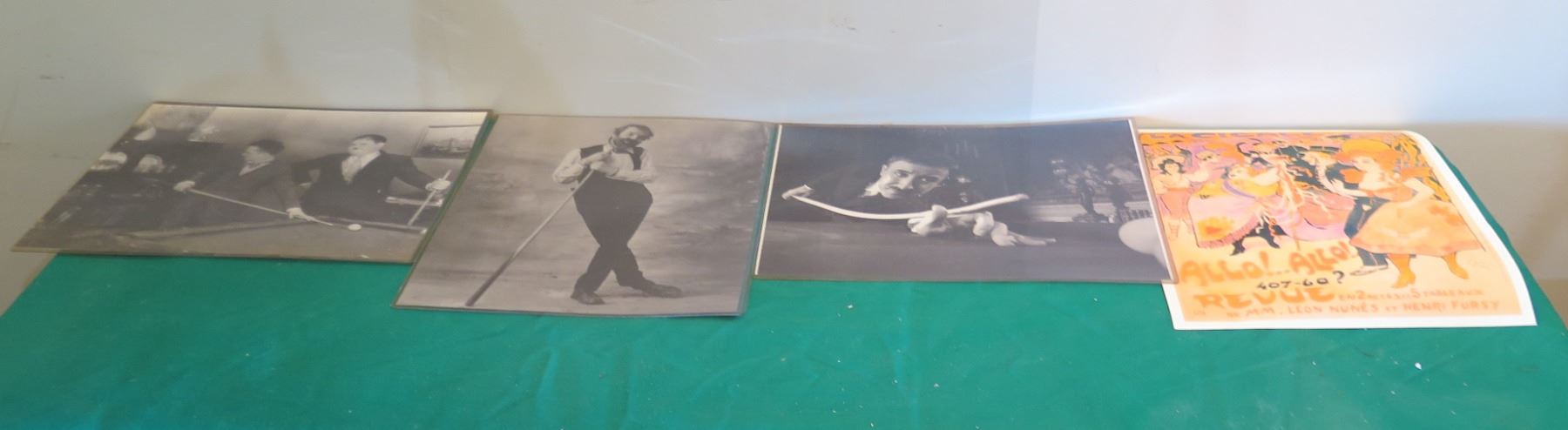Qty 4 Billiards Pool Themed Vintage Photos & Artwork
