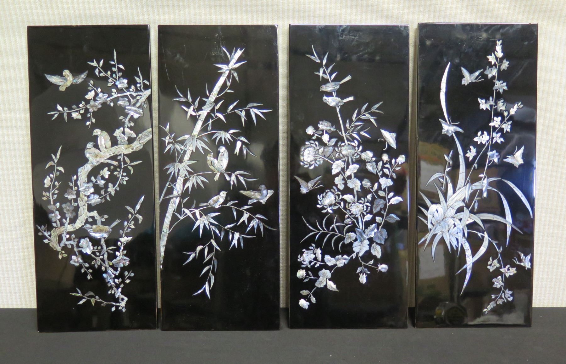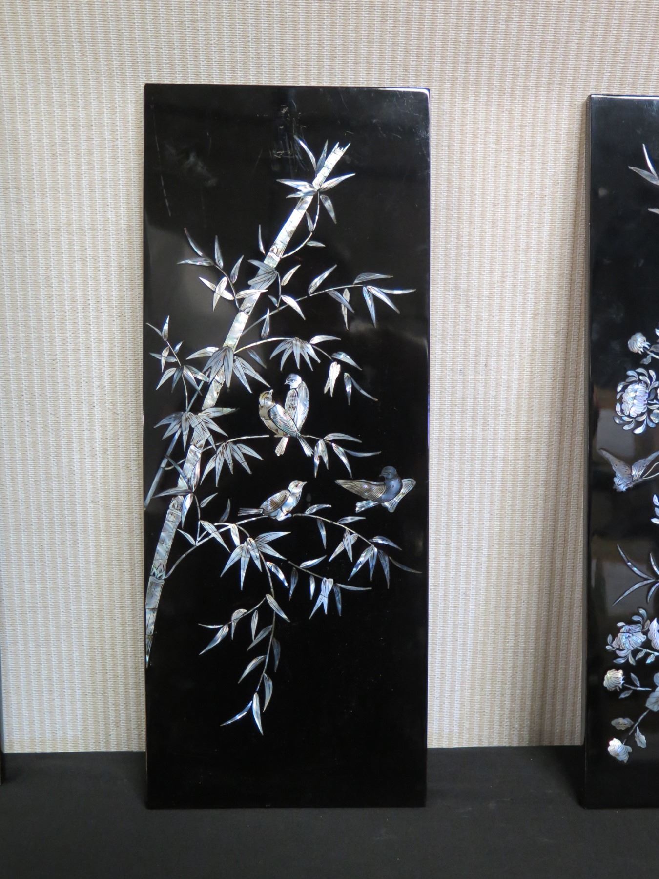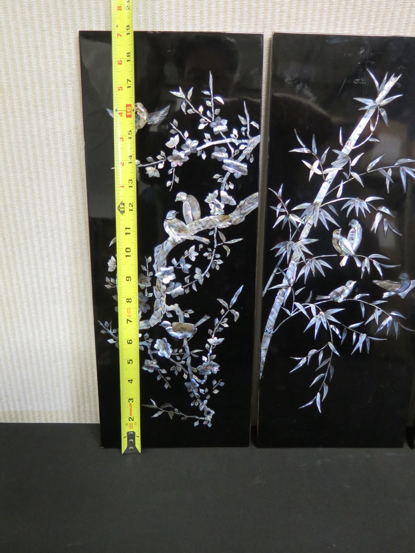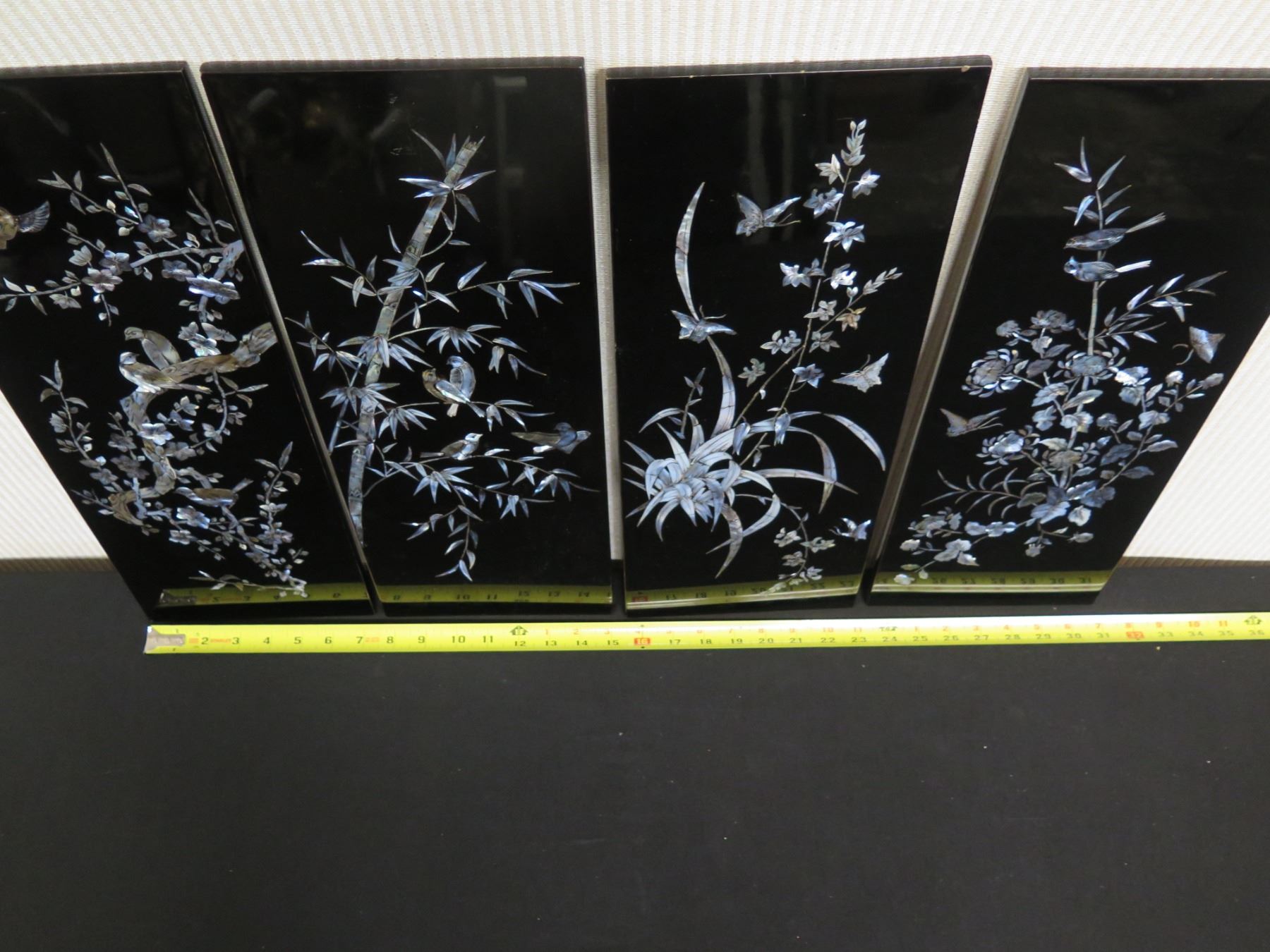Qty 4 Black Lacquered Panels with Inlays, 8" x 19" (each)