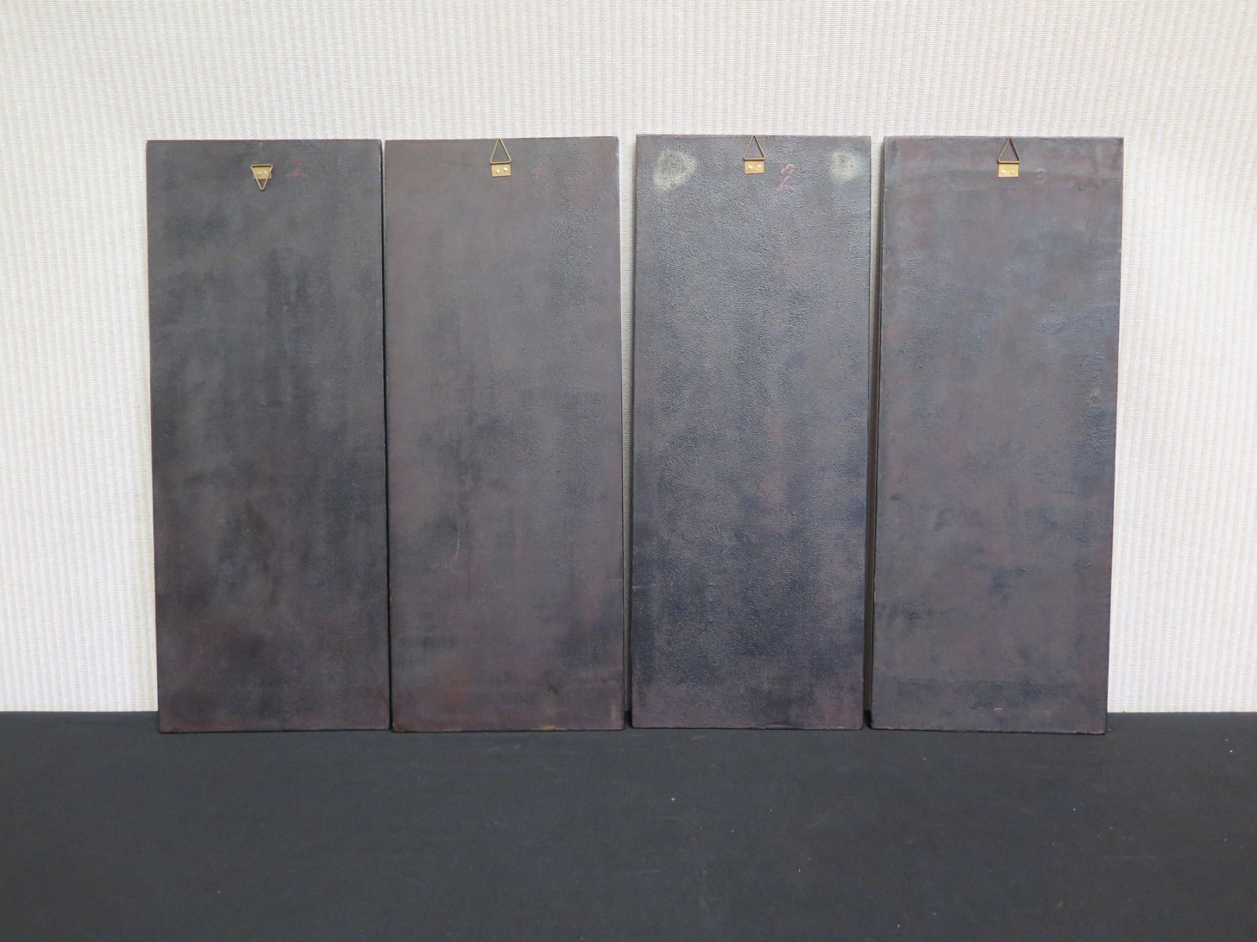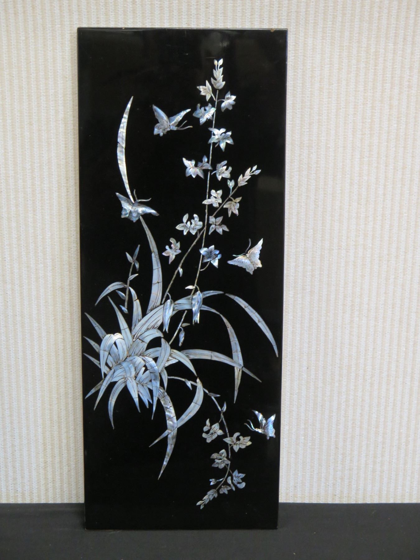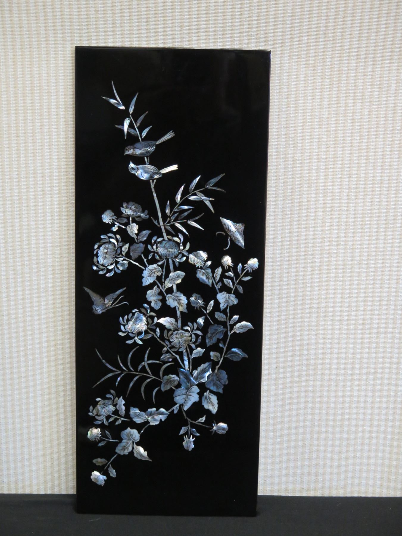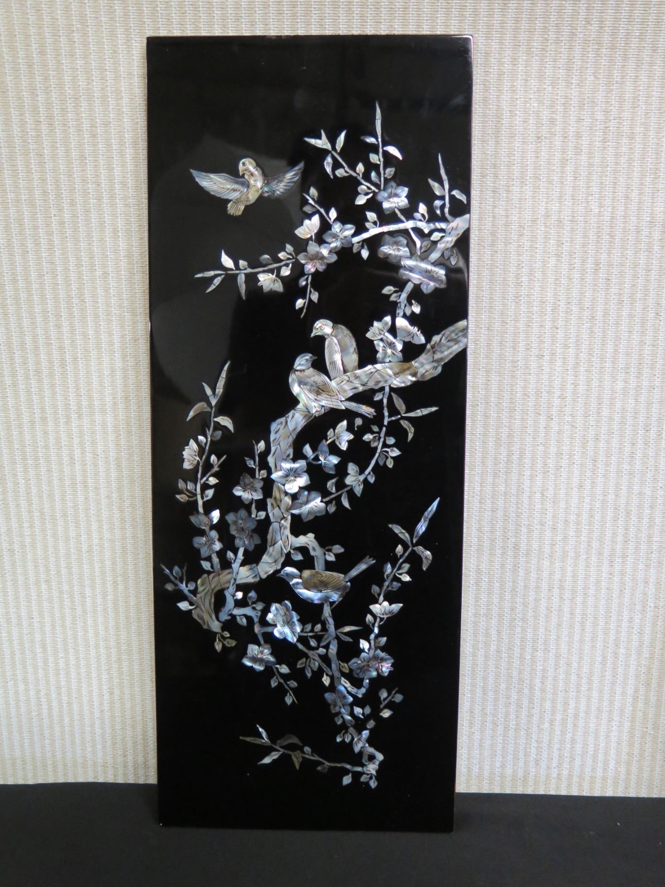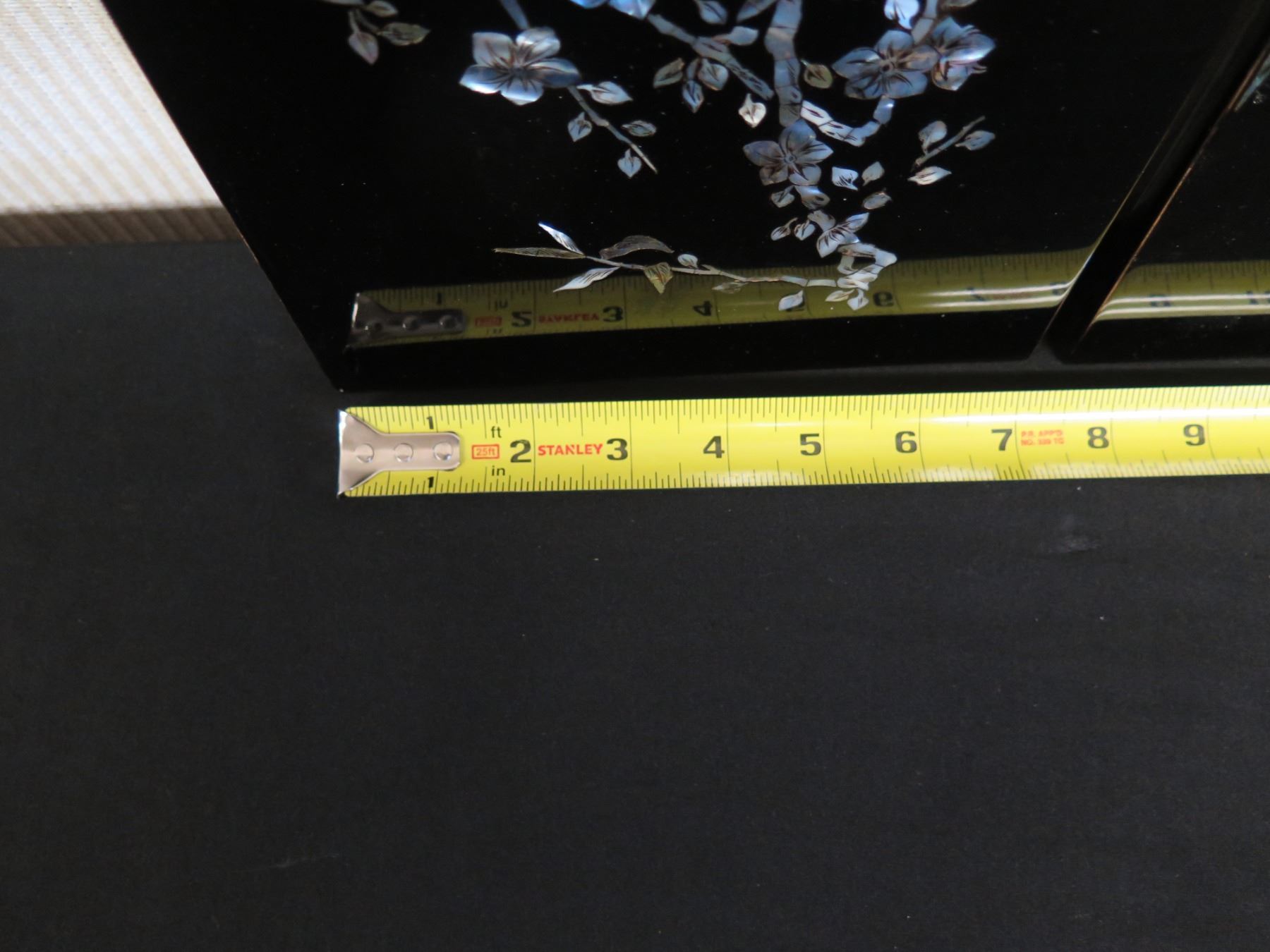 Qty 4 Black Lacquered Panels with Inlays, 8" x 19" (each)