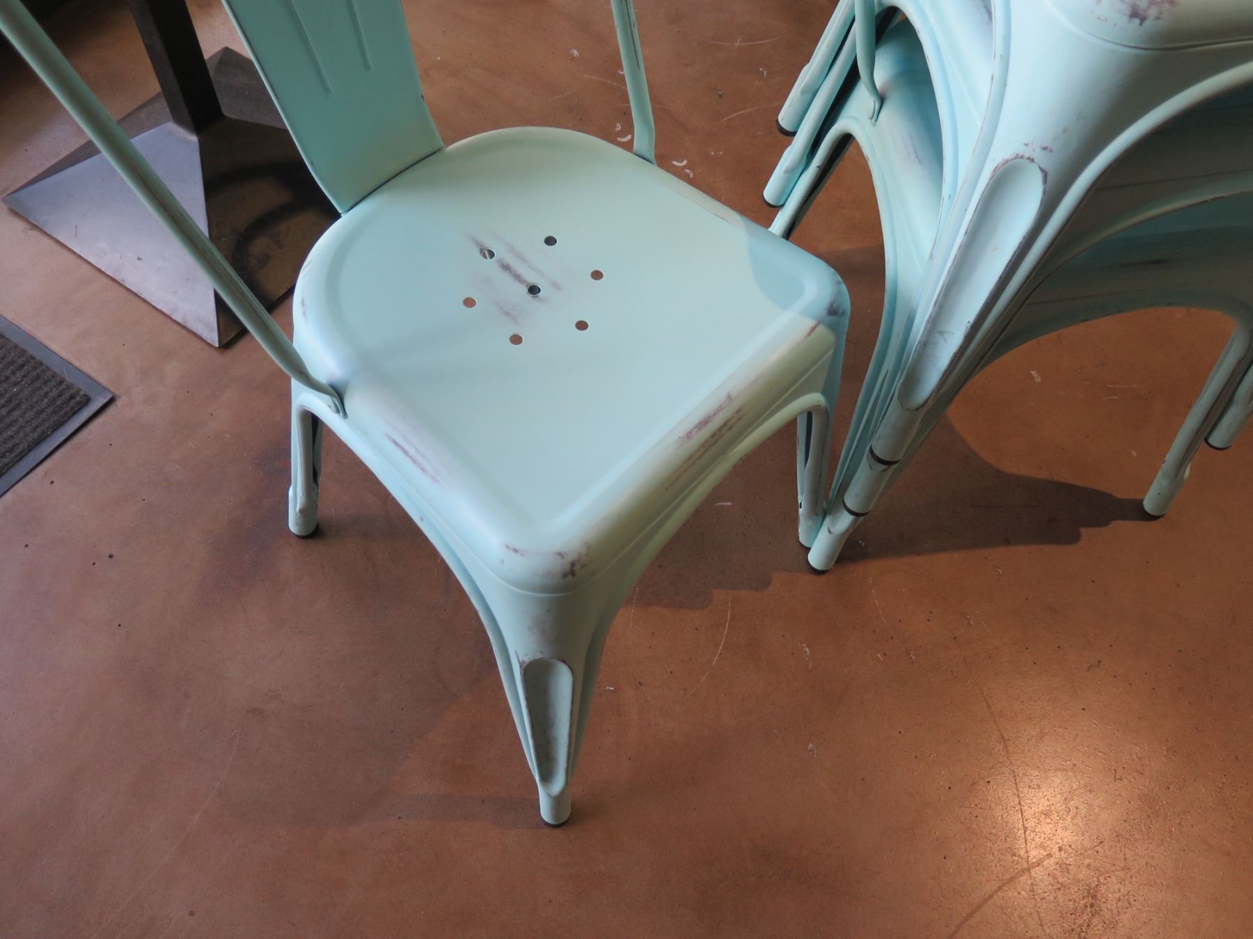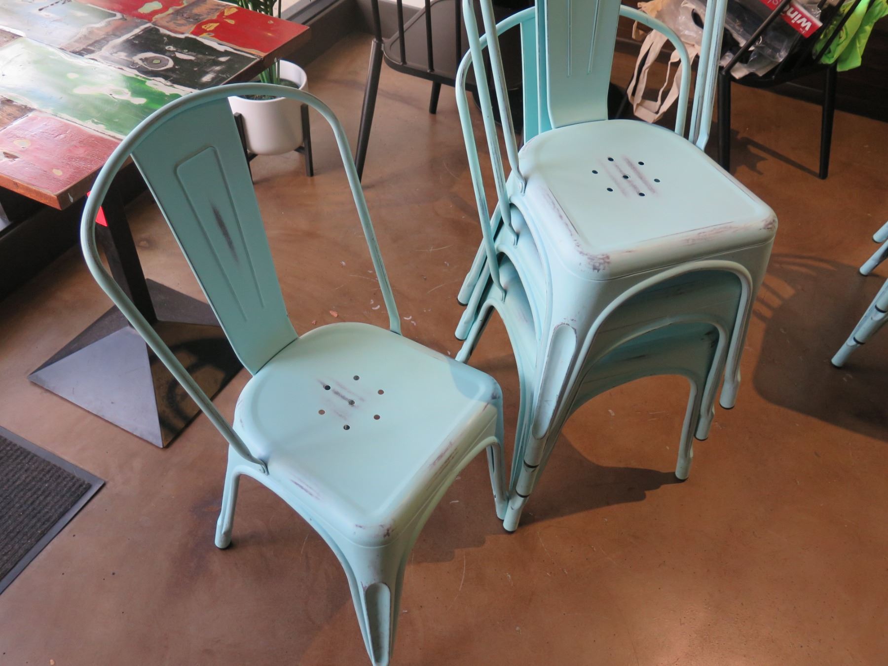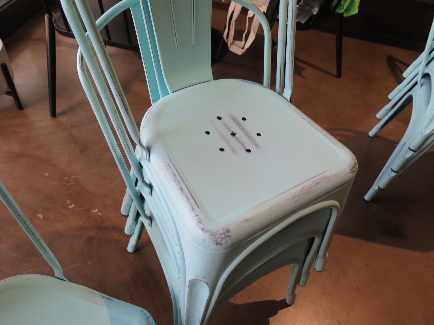 Qty 4 Blue Patina Stacking Chairs