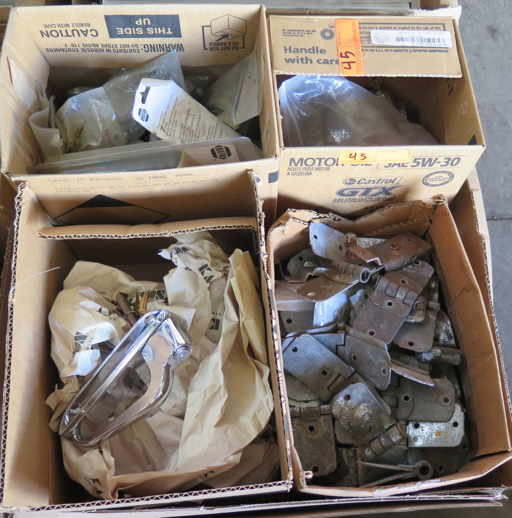Qty 4 Boxes Door Handles, Hinges, Door Parts, etc