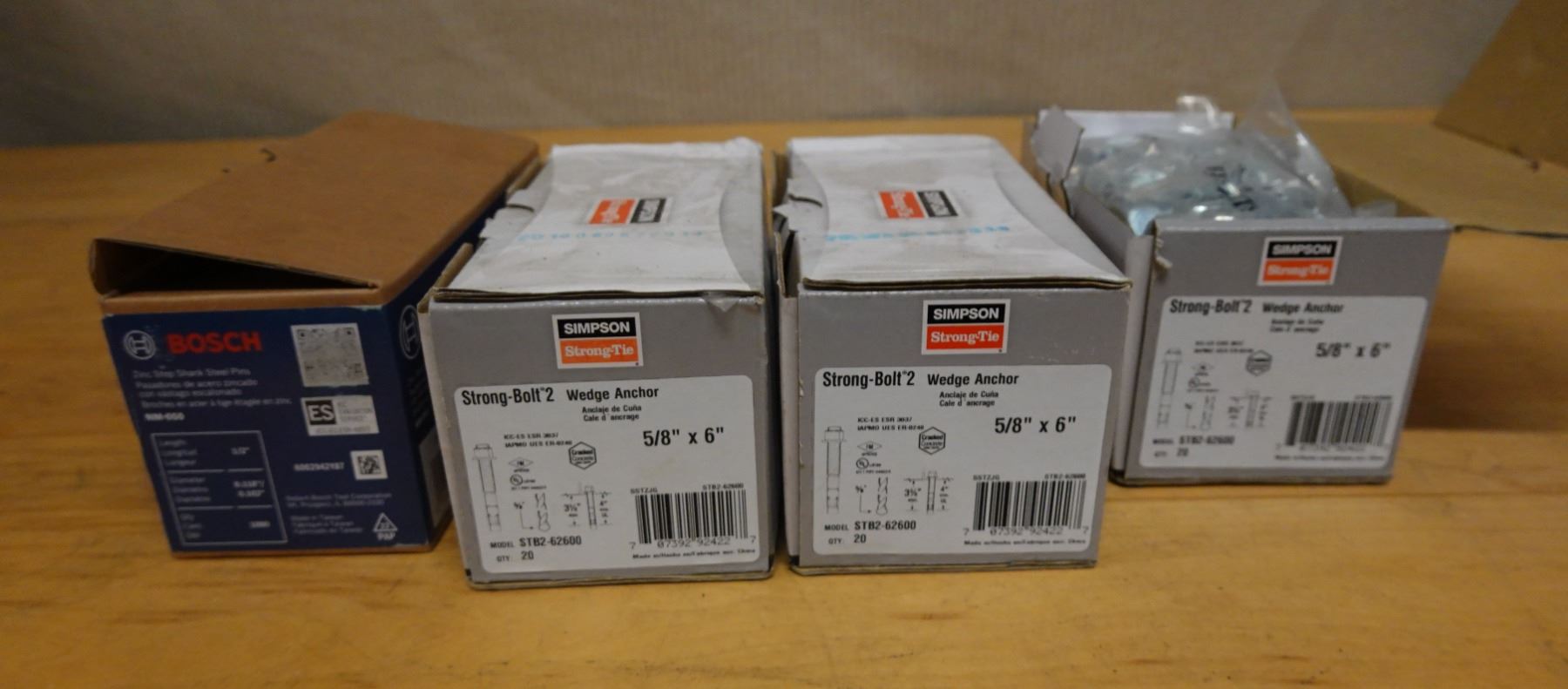 Qty 4 Boxes Simpson Strong-Bolt2 Wedge Anchors & Bosch Shank Steel Pins