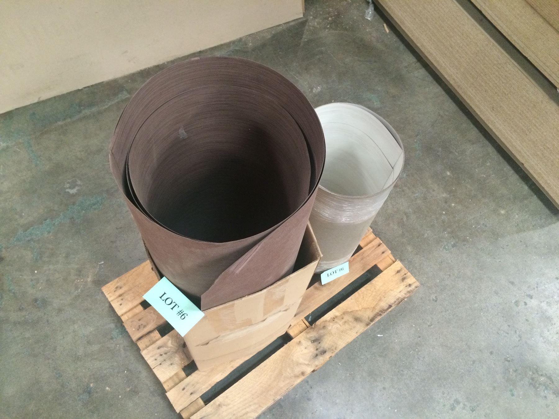 Brown Laminate Sheets. 2 sheets (1- 45”x97”, 1- 48” x 97” - 1 ft water damage from width); white - 2 sheets (1- 25” x 145”, 1- 29” x 145”). Total of 4 sheets.