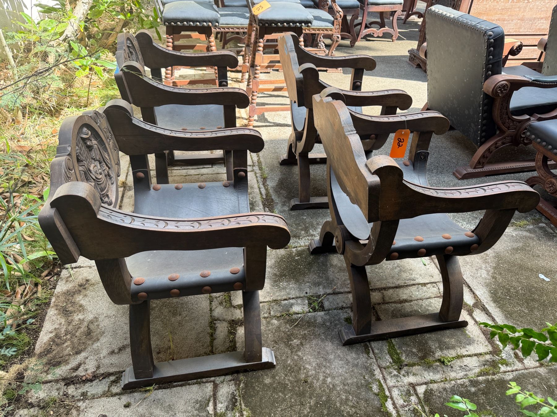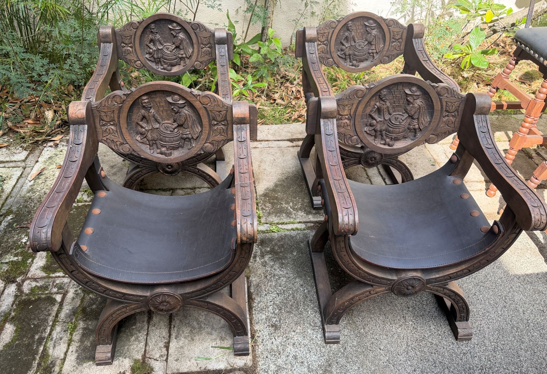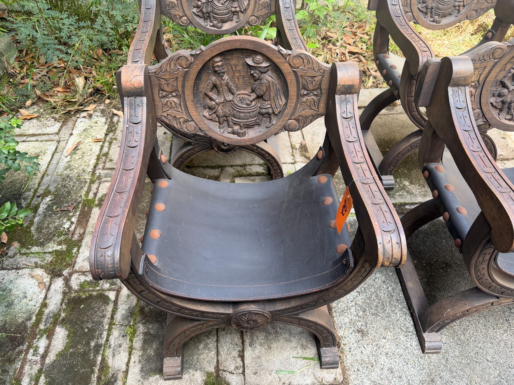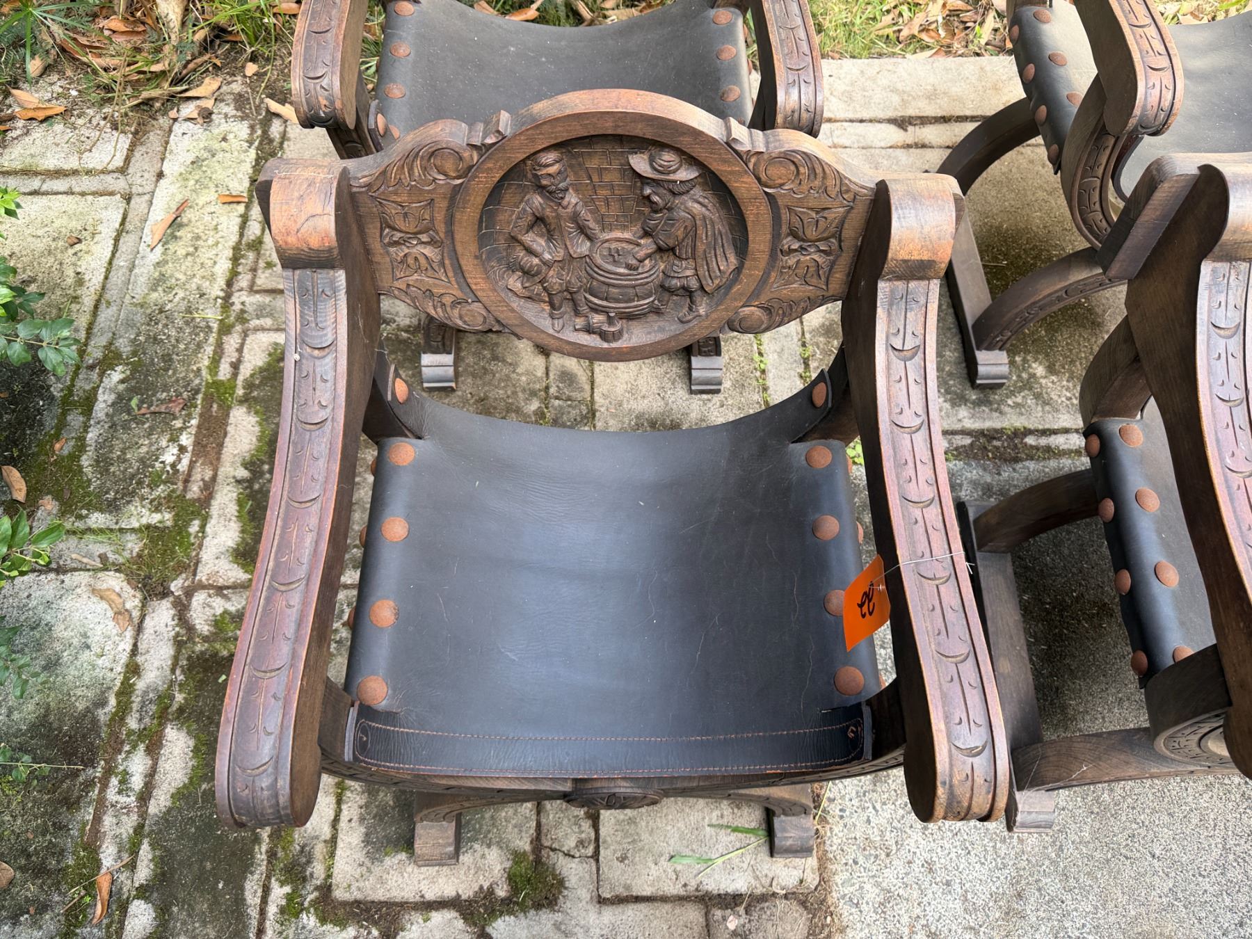 Qty 4 Carved Wood-Framed Chairs 22" x 35"H